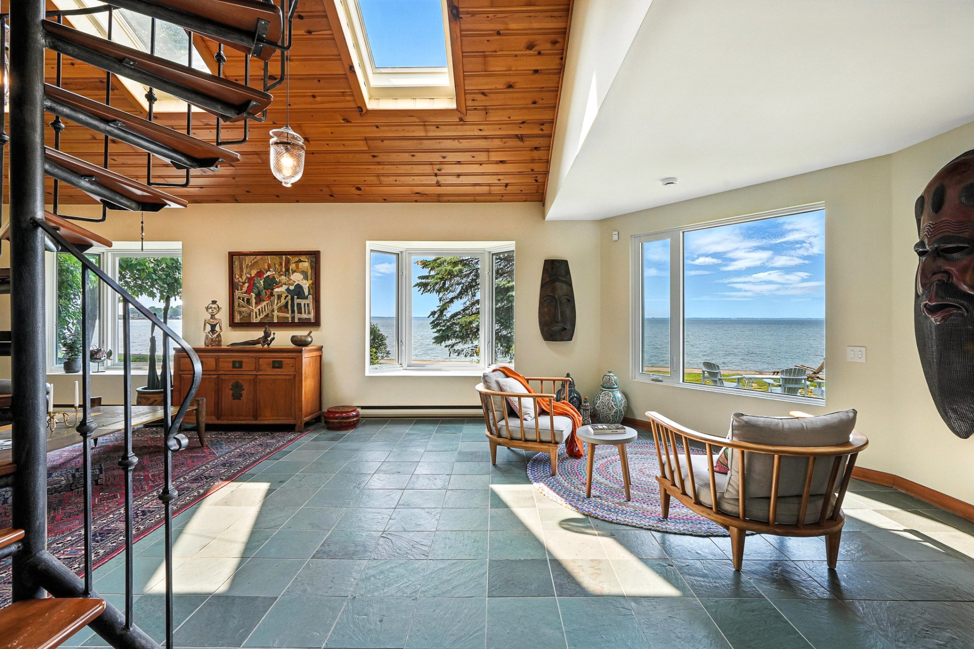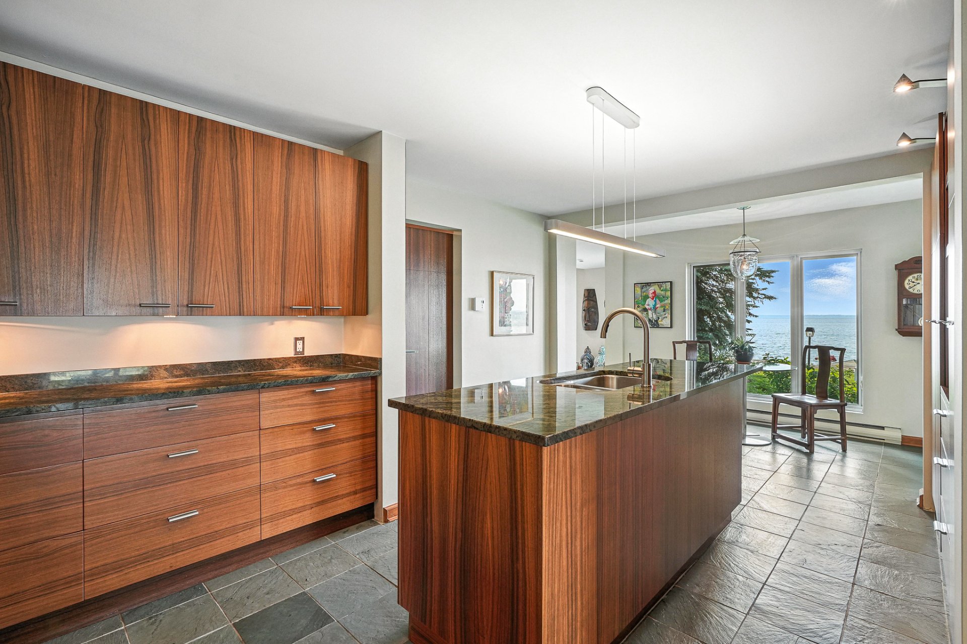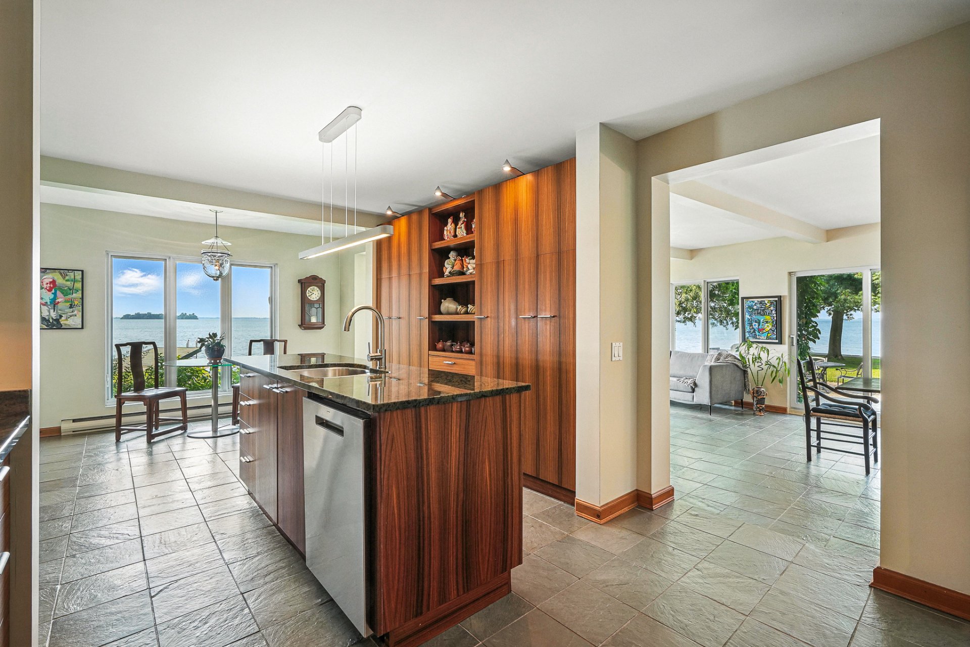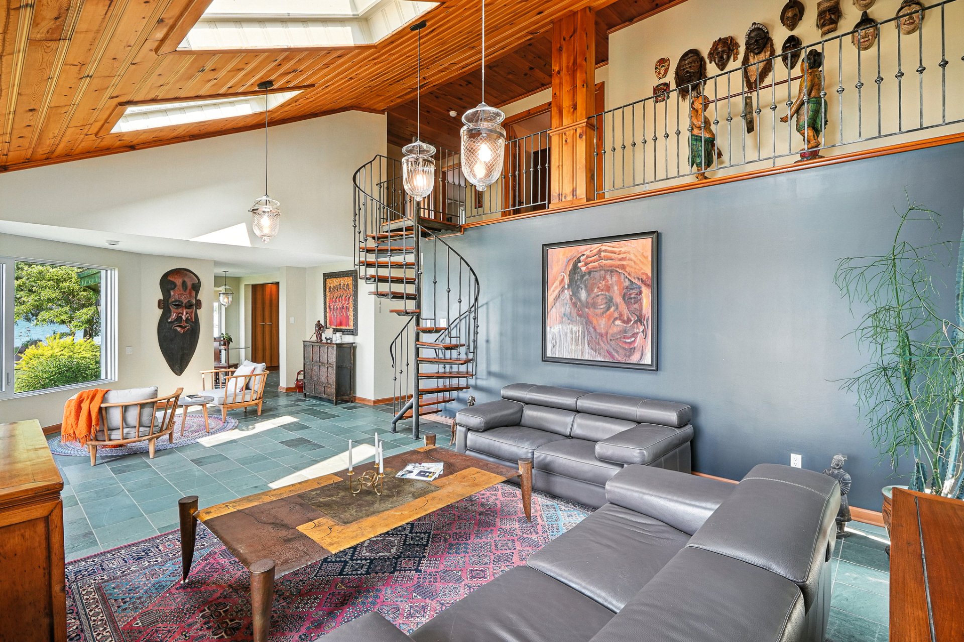 - La résidence principale, baignée de lumière naturelle, séduit par ses espaces ouverts, son foyer au bois et sa vue panoramique à couper le souffle sur le lac.