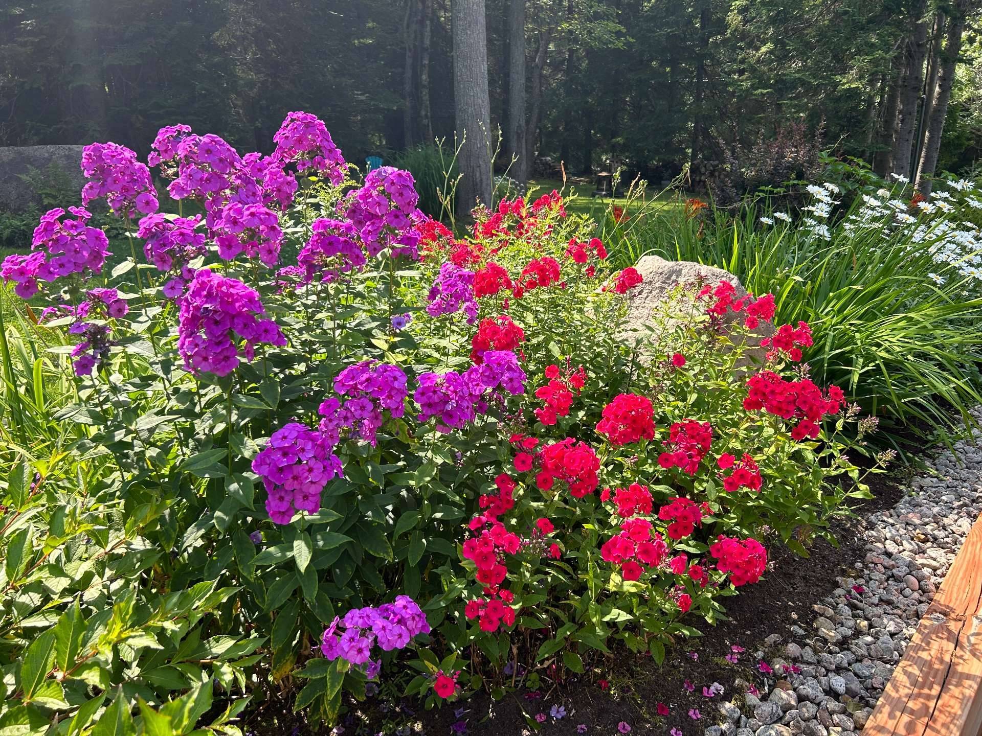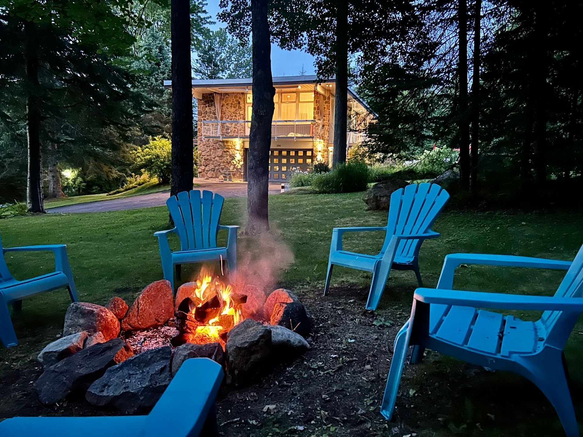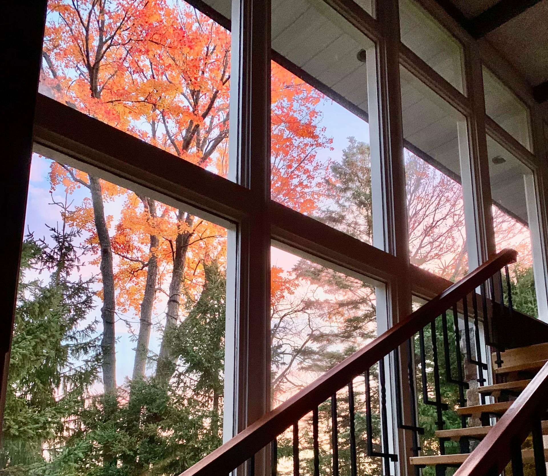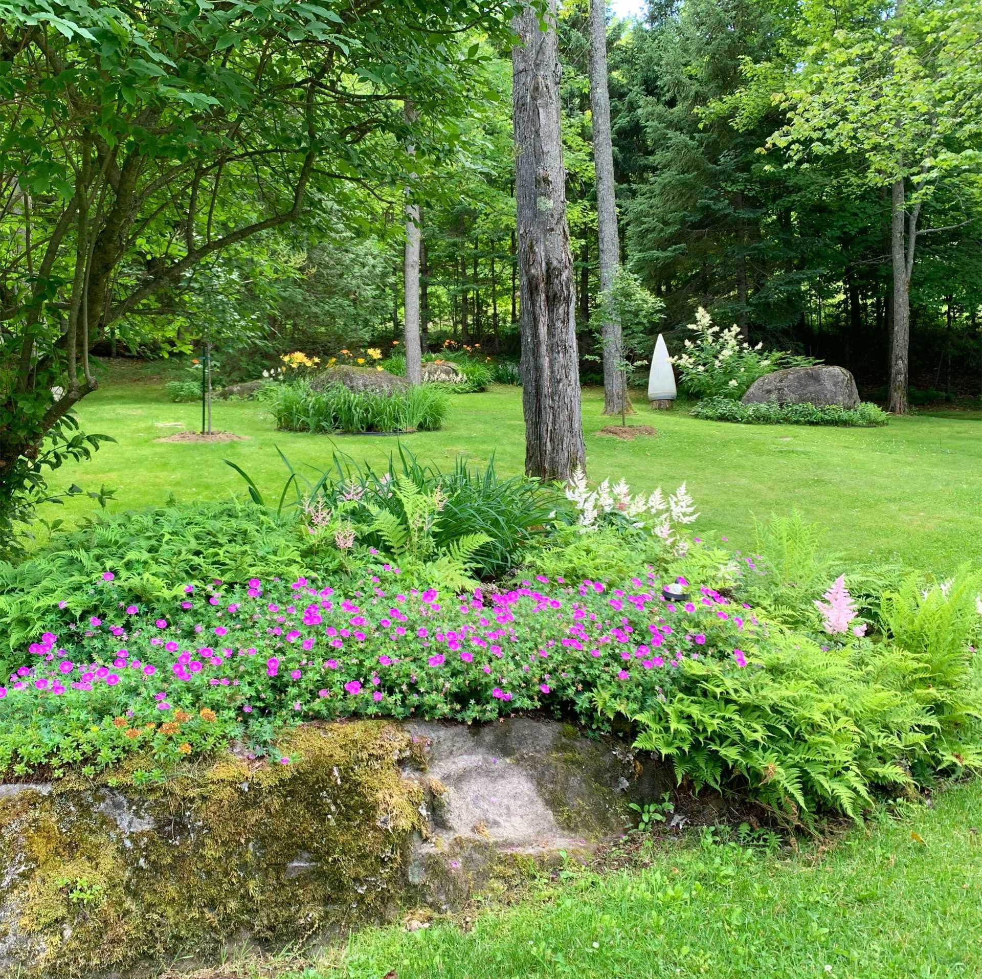 - Vue sur 3 côtés, sur le jardin, le boisé et sur de grands sapins et épinettes de l'autre