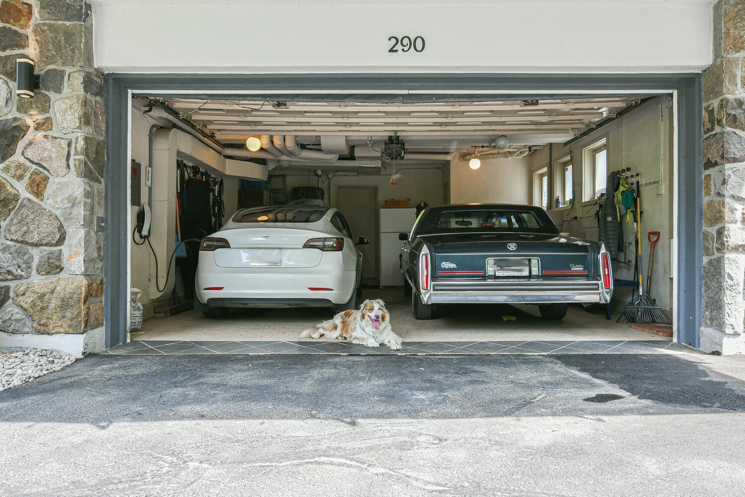 - La dalle de béton du plafond du garage se prolonge à l'extérieur en porte-à-faux pour former une terrasse de 30 pi x 8 pi attenante à la suite des maîtres