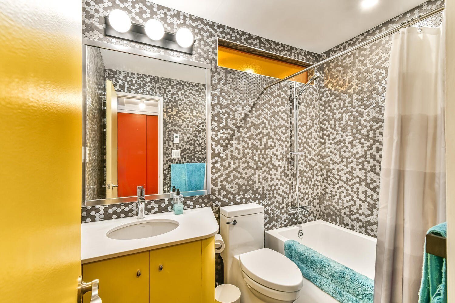 - Appareils électroménagers: réfrigérateur Frigidaire Professionnel, lave-vaisselle Bosh Silence Plus, plaque à cuisson à induction LG; four encastré Kenmore Elite; 3 lustres en verre opalin d'origine au-dessus de la table de la salle à manger; rideaux et stores