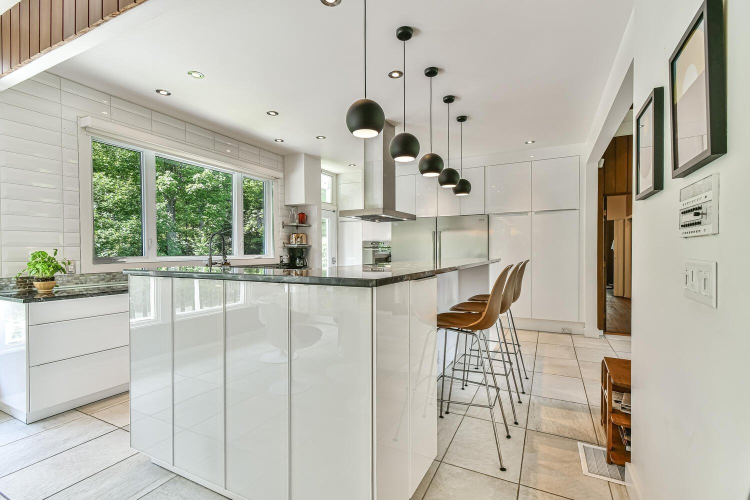 - Cuisine avec grand ïlot et comptoir en granit de 30 pi qui offre un espace de travail et de service exceptionnel