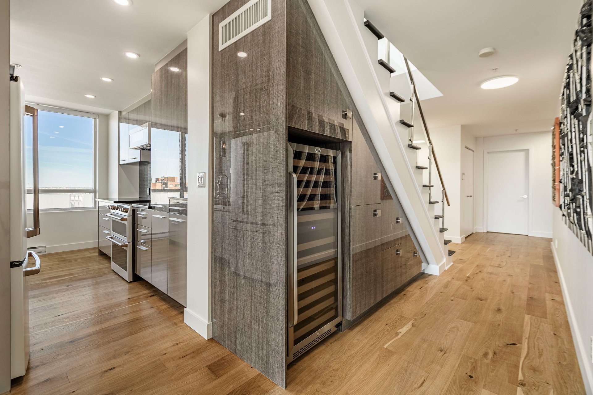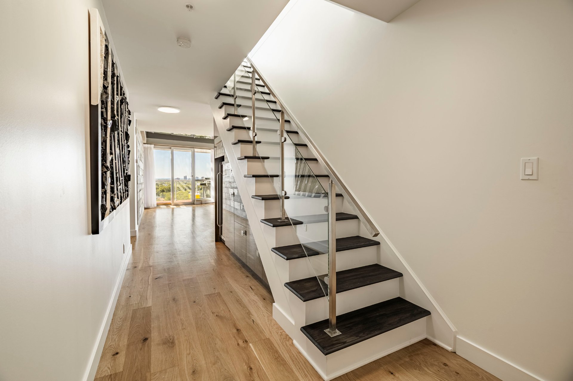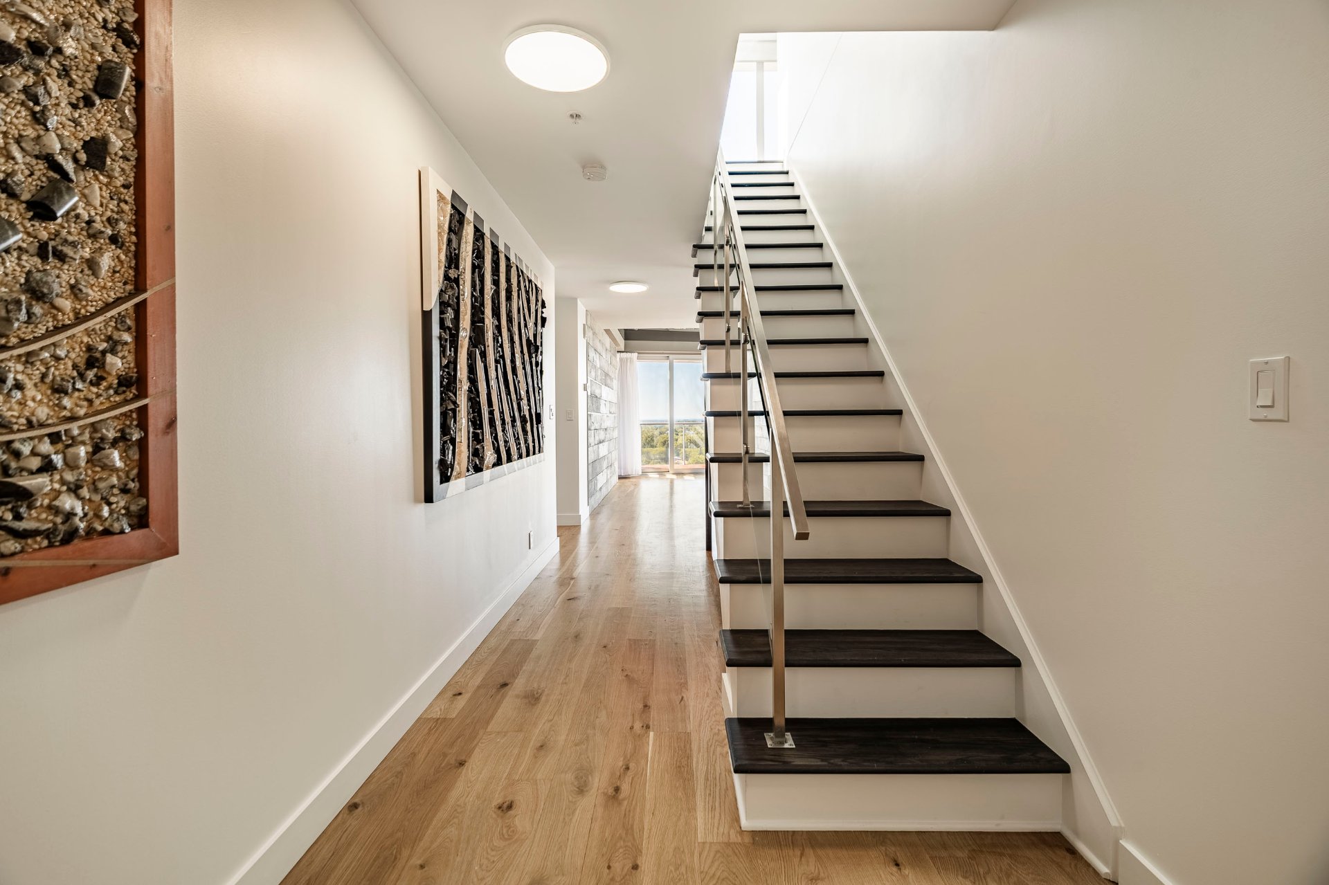 *Escalier intérieur menant à une vaste terrasse privée sur le toit avec vues spectaculaires