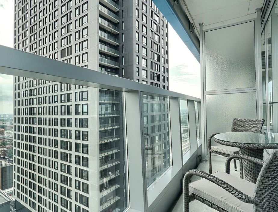 Une tour de 50 étages qui offre façade complètement vitré et balcons avec garde-corps en verre, des vues sur Montréal à couper le souffle.