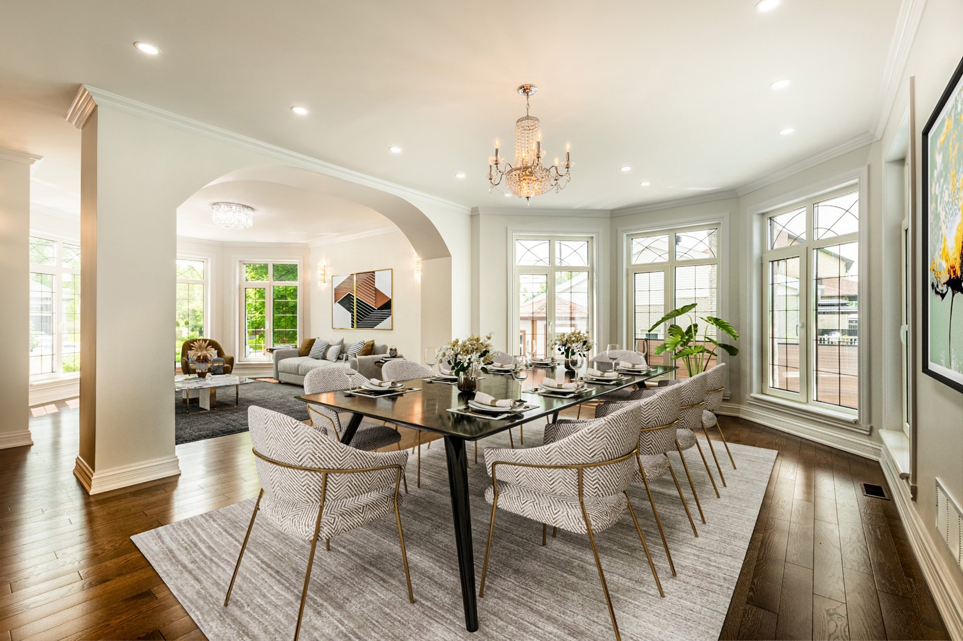 + Salle à manger, bibliothèque/réception et bureau fermé