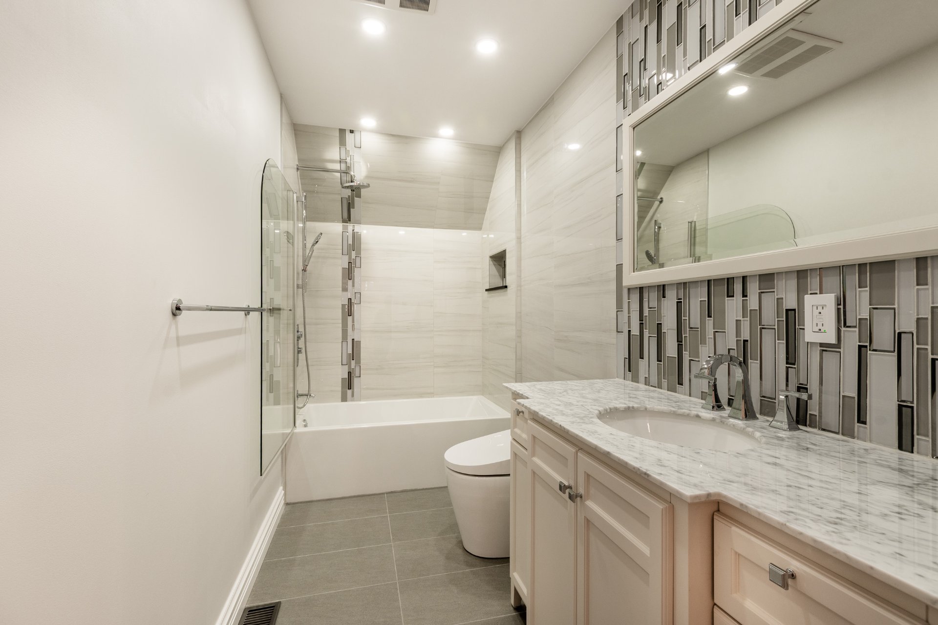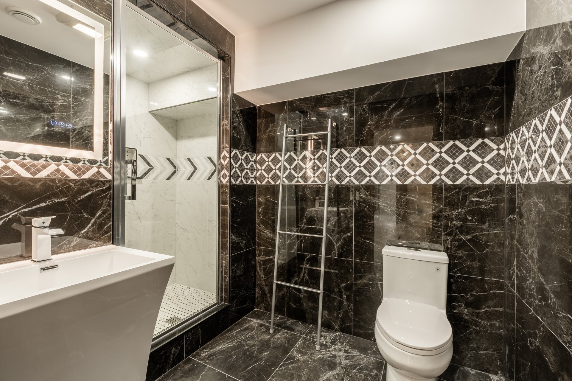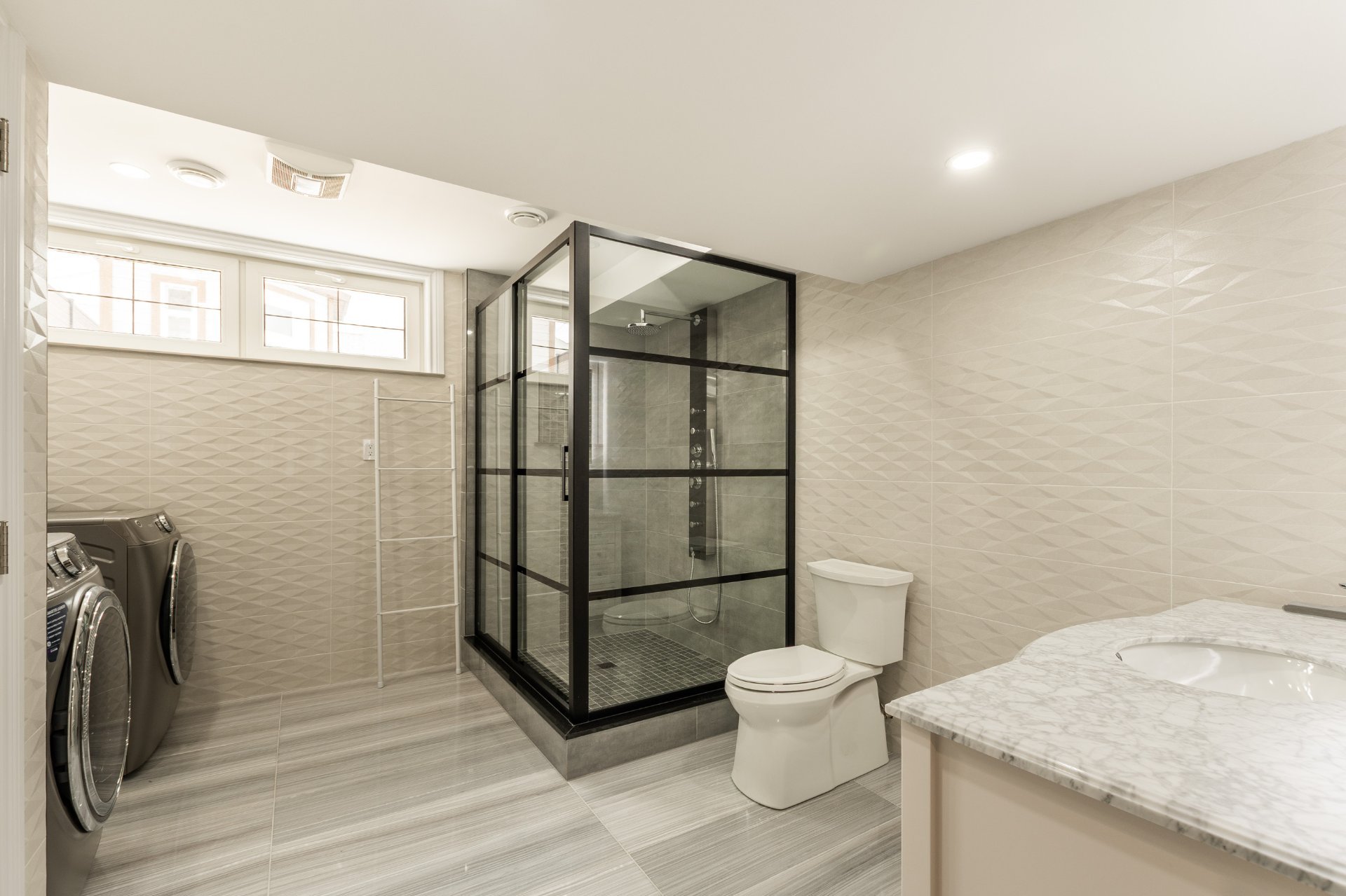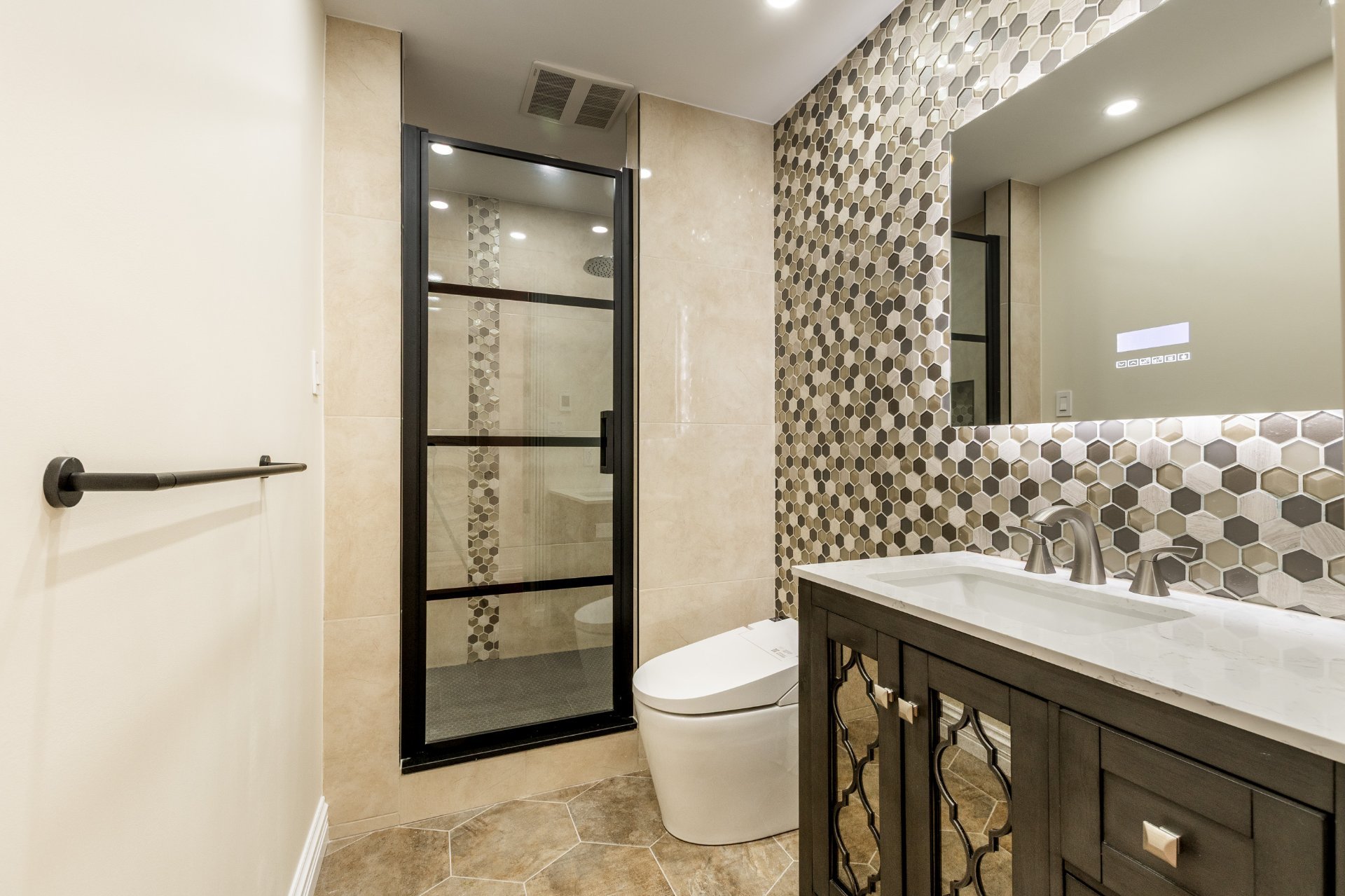 + 2 salles de bain complètes avec planchers chauffants, vanités en granite et toilettes intelligentes