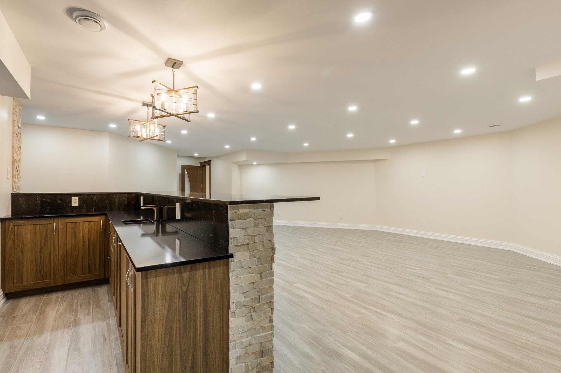 + Bar sur mesure (granite et quartz, rangement, éclairage intégré)