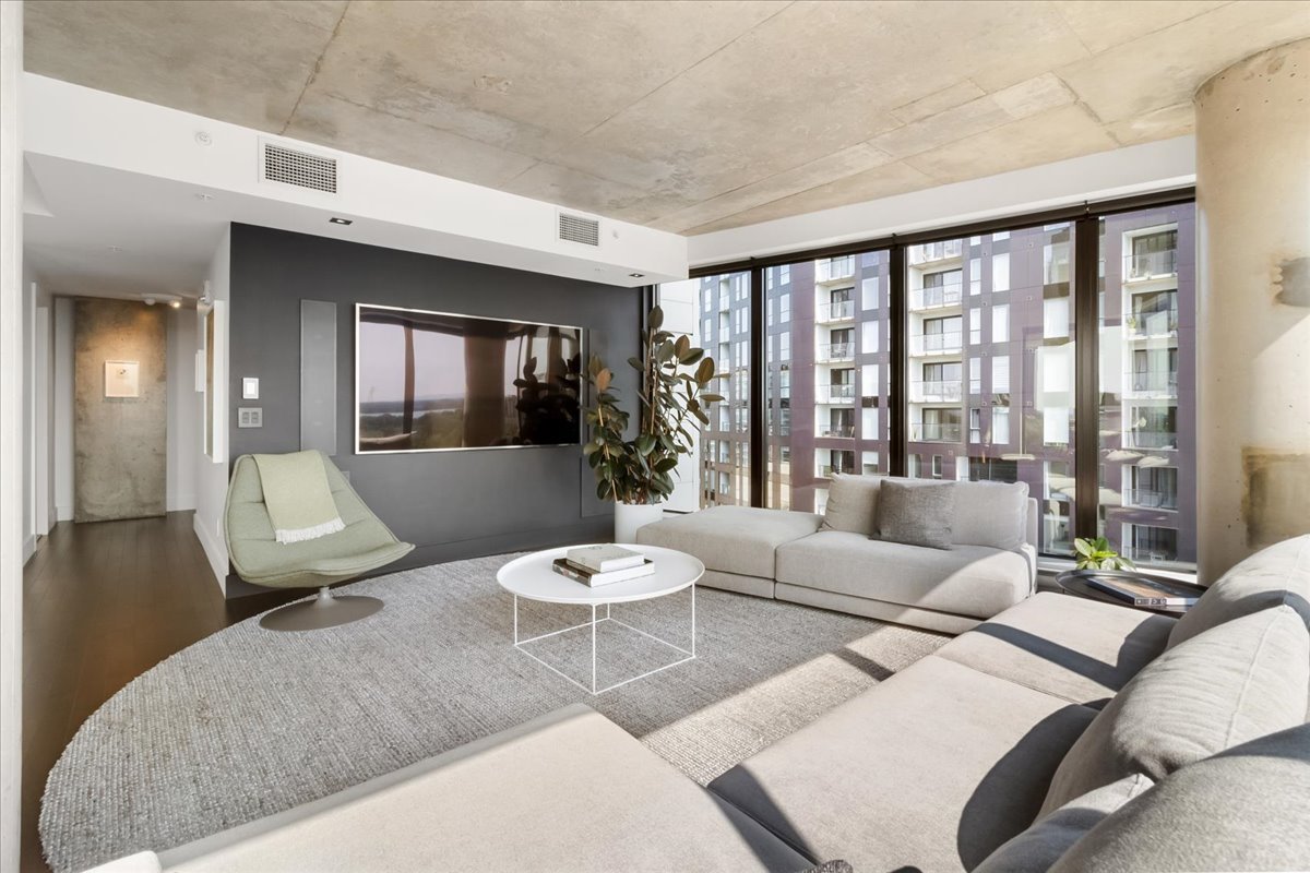 DISTRICT GRIFFIN | Élégante unité de coin aux finitions haut de gamme, offrant une vue exceptionnelle sur le Vieux-Port, le bassin Peel et l'emblématique Farine Five Roses. Aire de vie ouverte salon/salle à manger/cuisine, baignée de lumière naturelle. Cuisine avec îlot central et électroménagers inclus. Deux chambres, deux salles de bains dont une attenante à la chambre principale. Thermopompe centrale, système domotique complet. Balcon avec vue sur l'eau, espace de rangement et garage avec borne de recharge pour véhicule électrique.
