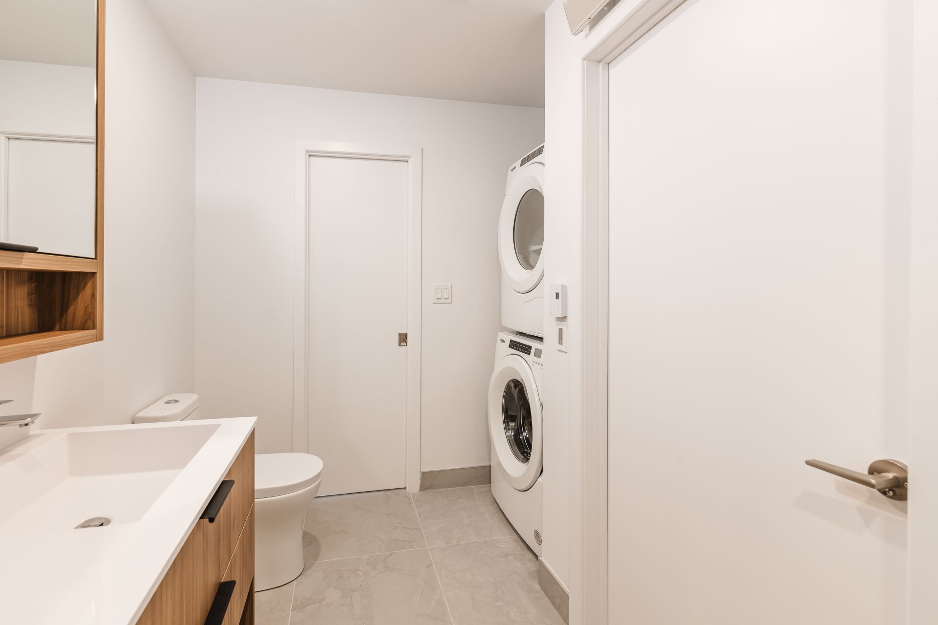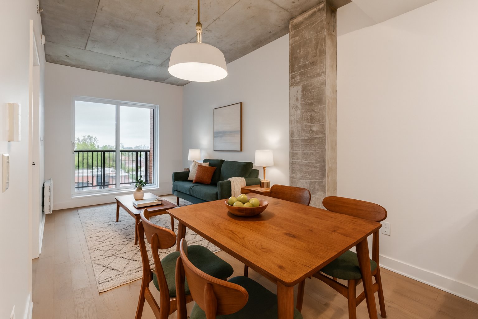 Immeuble en béton avec accès sécurisé, bien entretenu et situé dans un environnement urbain dynamique. Le Centre communautaire Jean-Claude-Malépart, situé juste en face, offre notamment un gym, une piscine, des installations de boxe et des terrains de tennis. Commerces, restaurants, parcs et services sont accessibles à pied, offrant un mode de vie pratique et recherché.