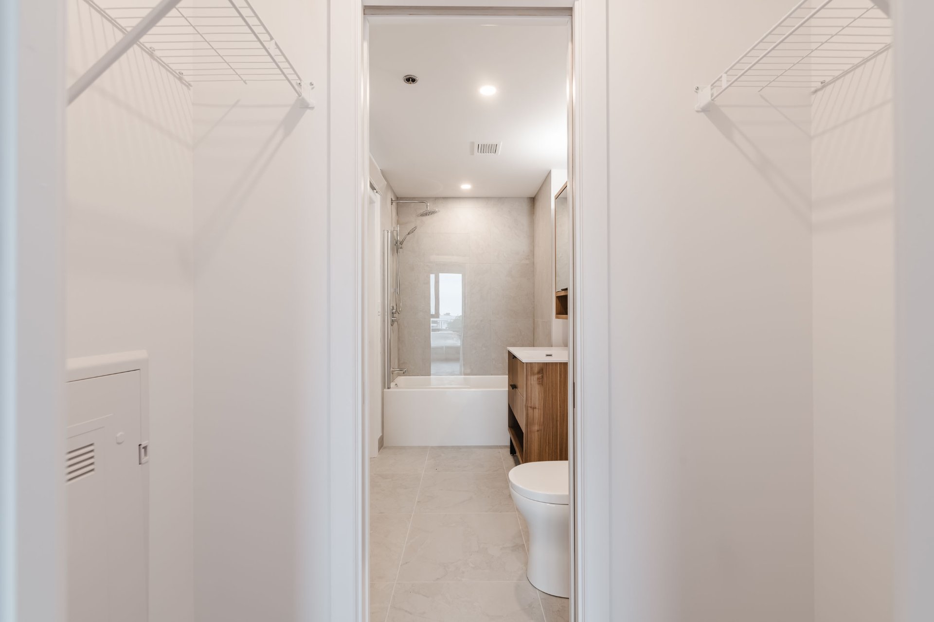 Condo lumineux d'une chambre à coucher et d'une salle de bain attenante, offrant une disposition moderne et fonctionnelle. La cuisine est munie de comptoirs en quartz. L'unité comprend un garde-robe walk-in, un espace de rangement intérieur ainsi qu'un balcon privé avec vue dégagée sur la ville.