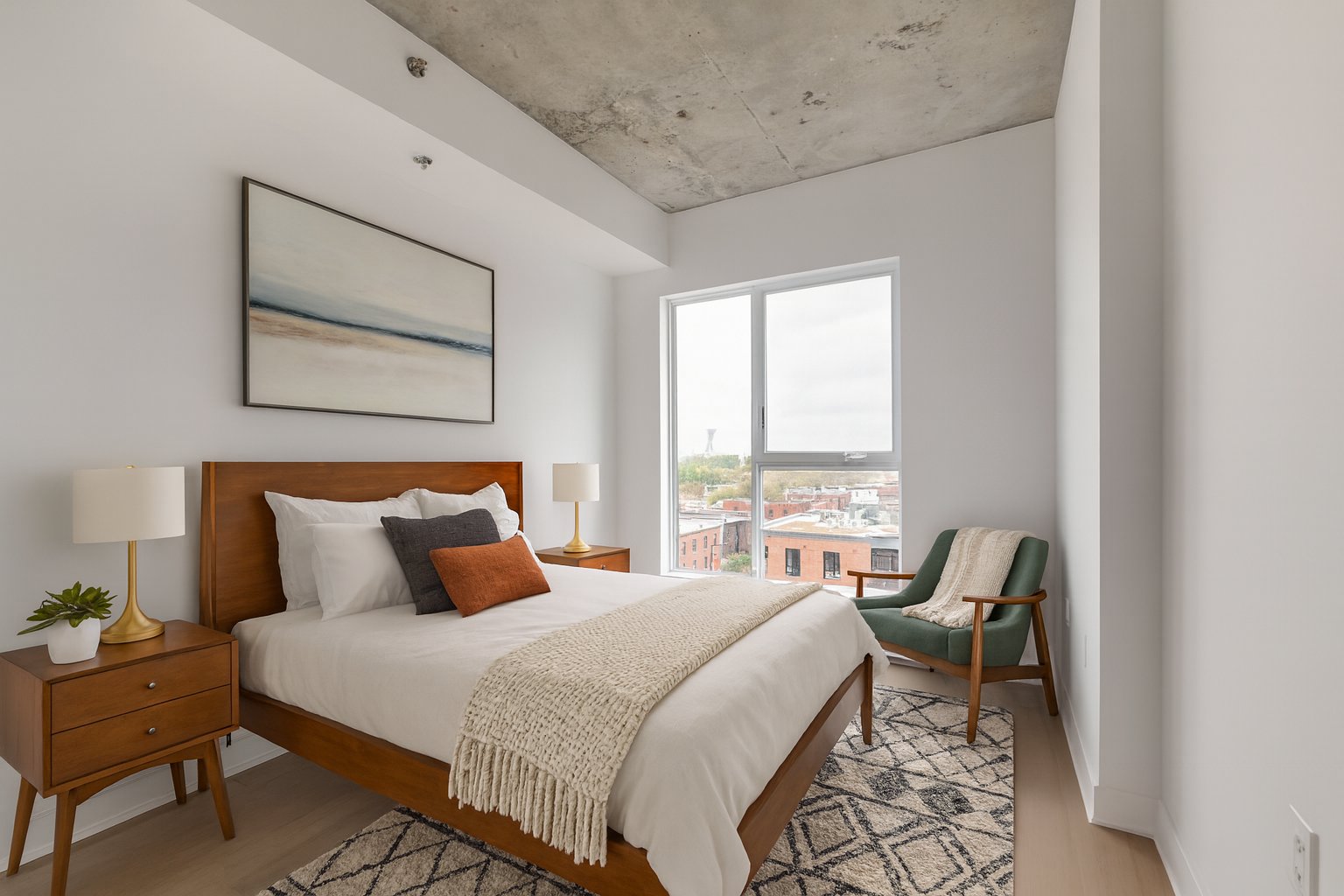 Condo lumineux de 1 chambre et 1 salle de bain attenante, offrant une aire de vie moderne. Cuisine avec comptoirs en quartz, garde-robe walk-in, espace de rangement intérieur et balcon avec vue dégagée sur la ville. Immeuble en béton avec accès sécurisé, dans un quartier urbain dynamique. Emplacement exceptionnel face au métro Frontenac (ligne verte), à proximité des stations BIXI, autobus et piste cyclable. Accès rapide au centre-ville, au Quartier des spectacles et au Vieux-Port. Tous les services à distance de marche : IGA, Dollarama, McDonald's, Tim Hortons, Poulet Rouge, Centre sportif Jean-Claude-Malépart et bibliothèque Janine-Sutto.