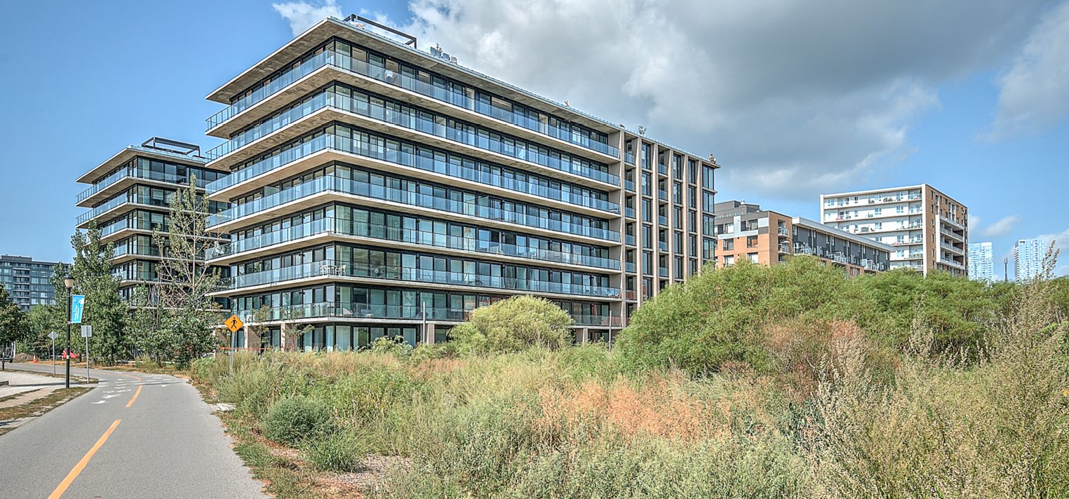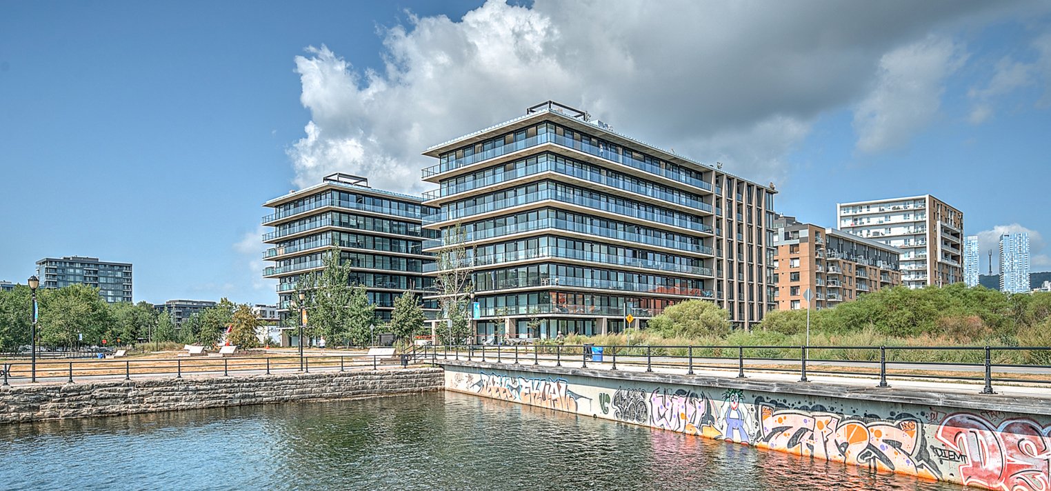 Charlotte Condos Société | Le seul projet sur le canal Lachine entouré de parcs, de verdure et d'eau. Architecture contemporaine organisée et inspirée d'éléments translucides.