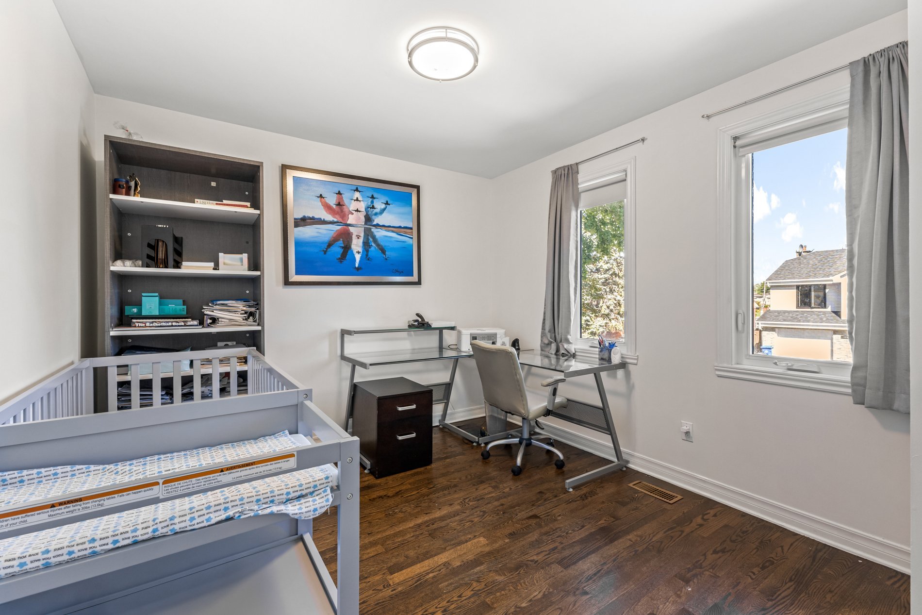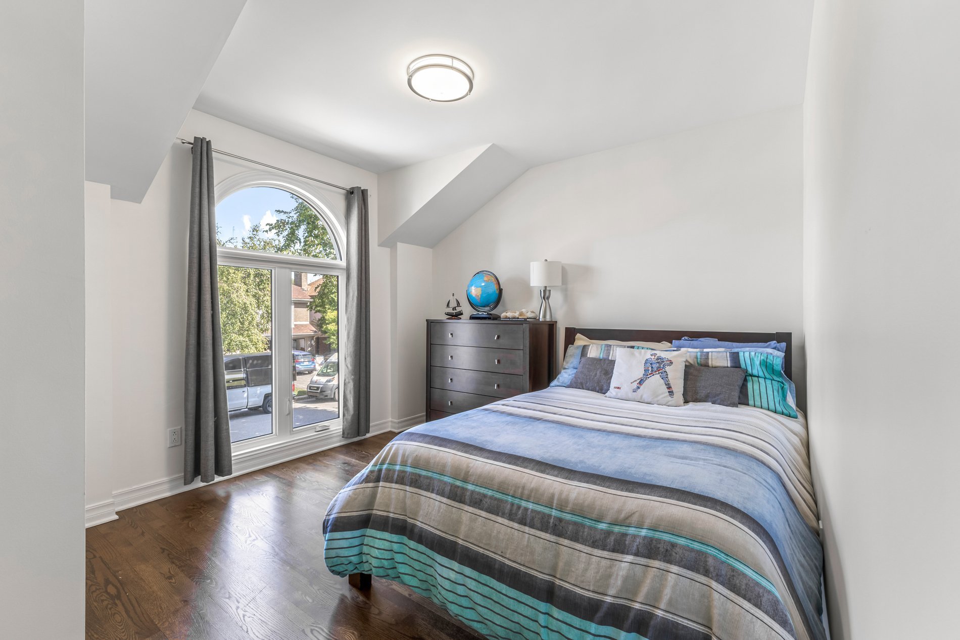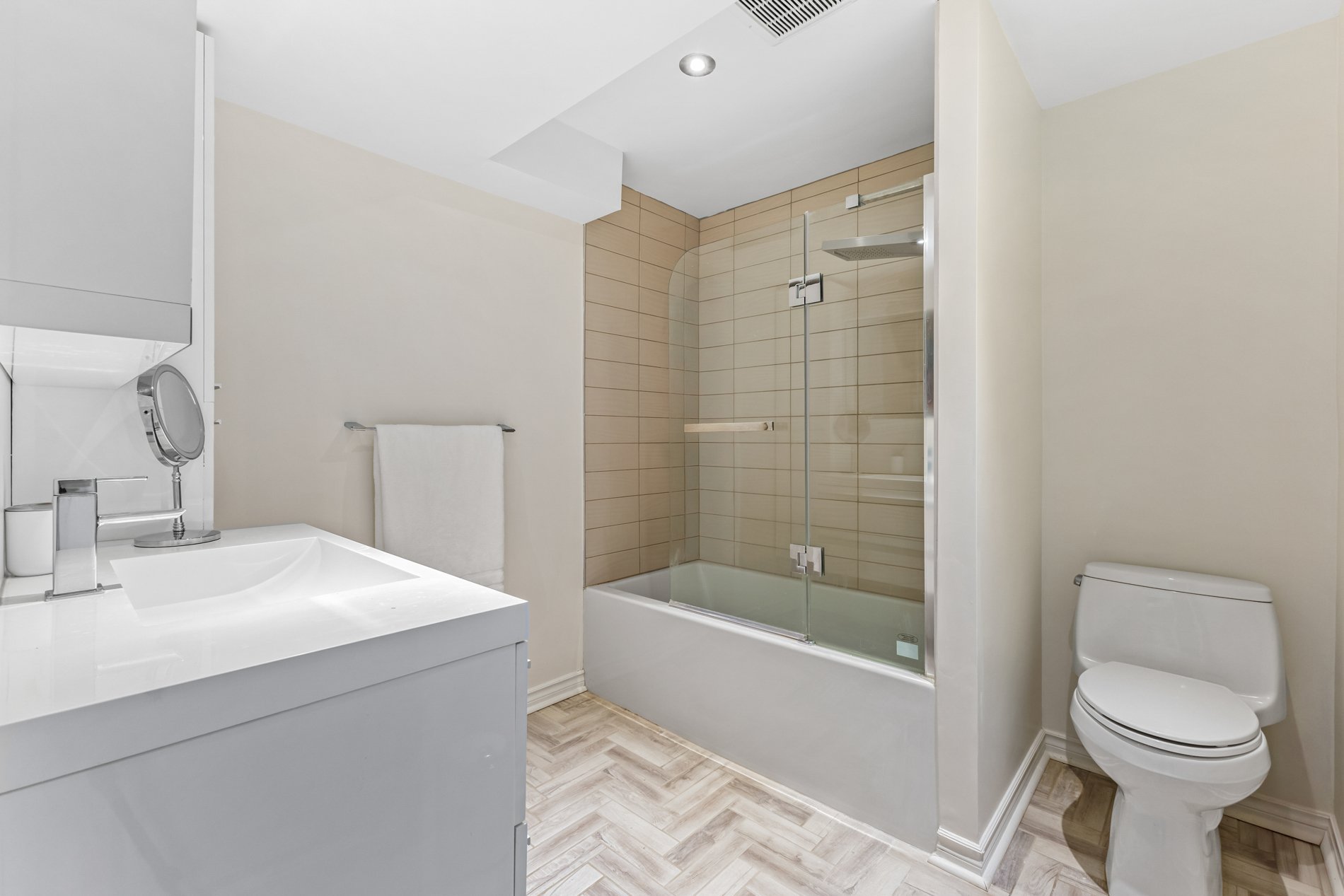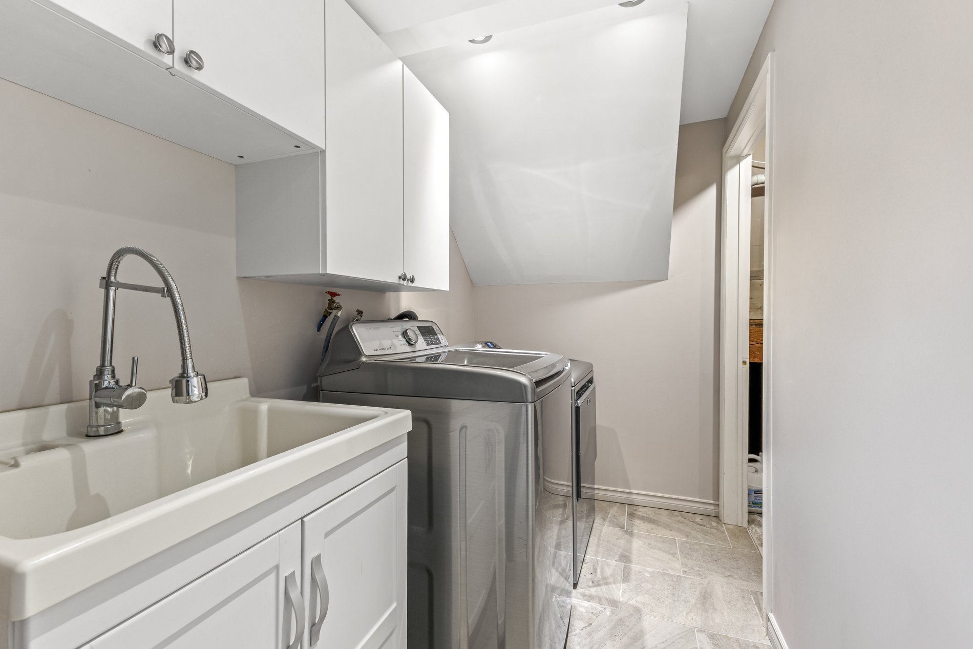 La suite principale serene comprend un walk-in, des rangements intégrés et une salle de bains luxueuse avec douche spacieuse, planchers chauffants et finitions raffinées. Deux autres chambres sont parfaites pour la famille ou un bureau. Une salle de bains familiale entièrement rénovée avec bain complète l'étage.
