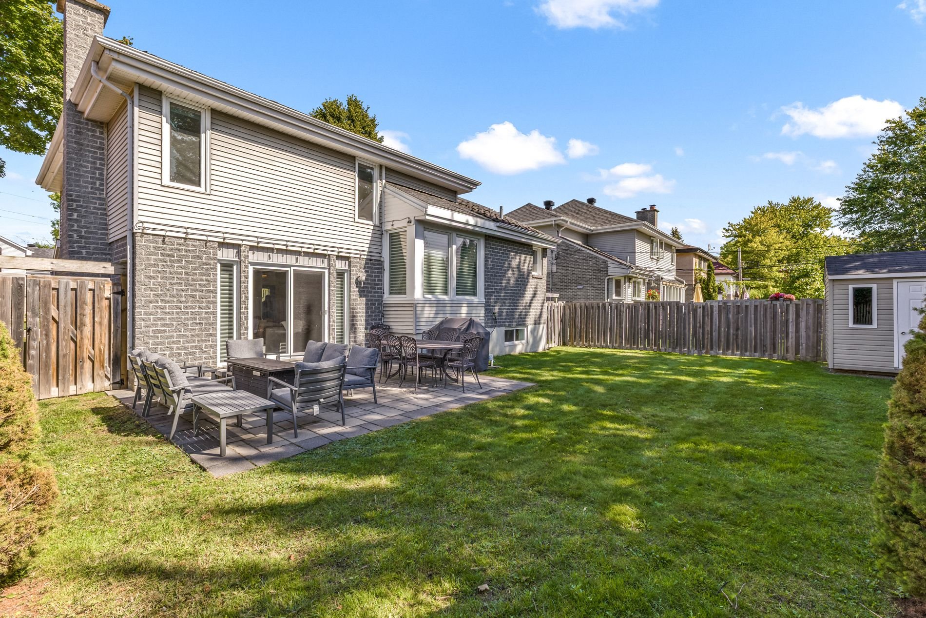 Profitez d'une nouvelle allée en pierre, passage d'entrée et d'un grand patio arrière, parfaits pour la vie en plein air. La cour entièrement clôturée offre intimité, ensoleillement et une remise pour plus de rangement. Toutes les fenêtres ont été remplacées.