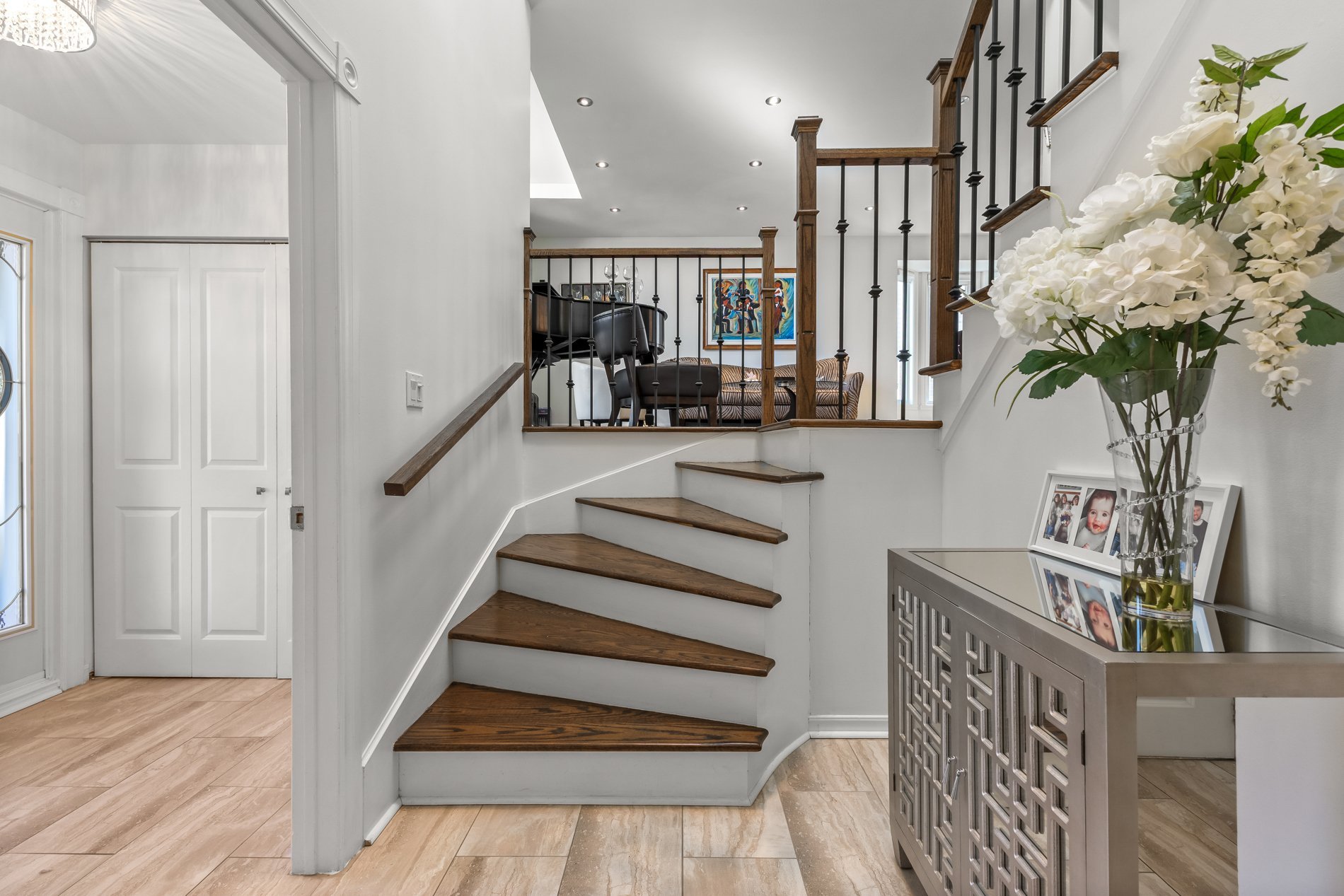 Entrez dans cette maison magnifiquement rénovée avec beaucoup de rangement. De hauts plafonds à double hauteur, un lustre en cristal étincelant et un puits de lumière créent une première impression élégante. Accès direct au garage extra large avec plancher en époxy, idéal pour de rangement d'équipement ou atelier. La salle familiale s'ouvre sur une grande cour arrière privée grâce à de nouvelles portes-patio. Partout dans la maison: planchers de bois franc remis à neuf, nouveaux escaliers et rampes élégantes pour une allure intemporelle.
