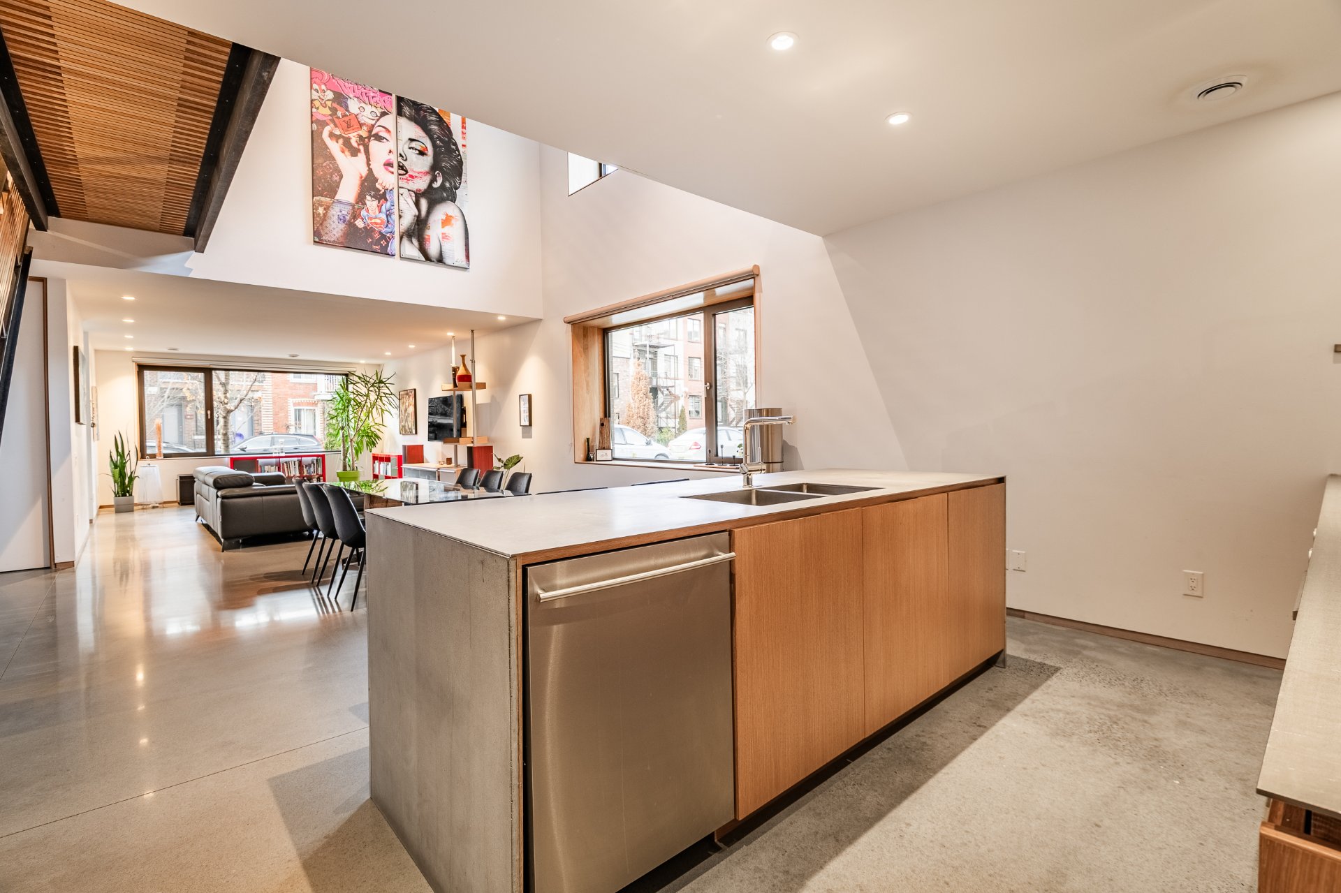 Superbe maison de ville (unité de coin lumineuse) située dans le secteur prisé du Mile-Ex, signée par l'architecte Henri Cleinge. Répartie sur trois niveaux, elle offre deux chambres ainsi qu'un bureau en mezzanine surplombant l'aire de vie, deux salles de bain et une salle d'eau. L'architecture est spectaculaire, avec des plafonds de plus de 33 pieds, un puits de lumière, du béton apparent et des finitions raffinées. Une grande terrasse privée sur le toit, intime et ensoleillée, complète l'ensemble. À proximité du Marché Jean-Talon, du métro Castelnau et de la Petite-Italie. Une propriété tout à fait unique.