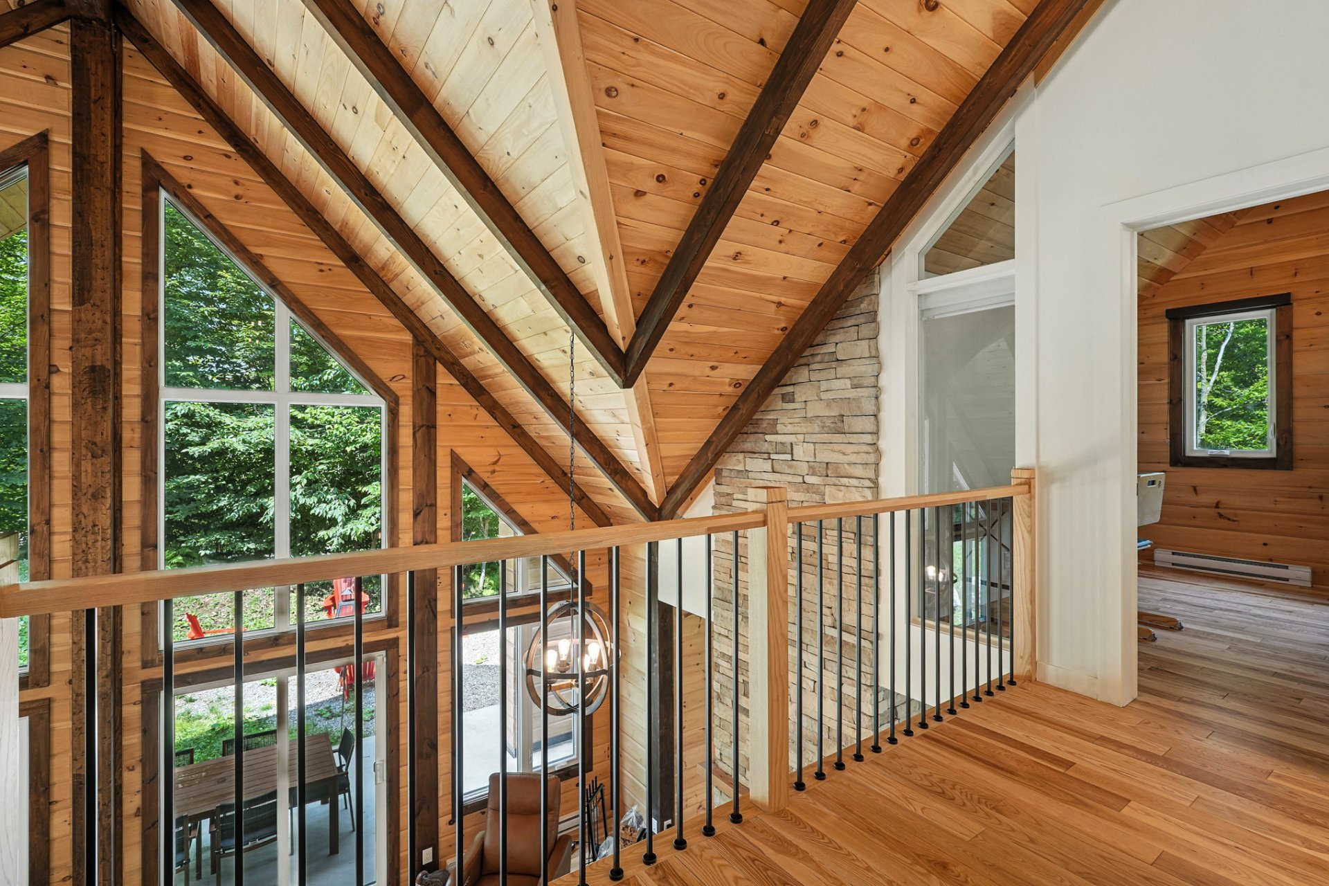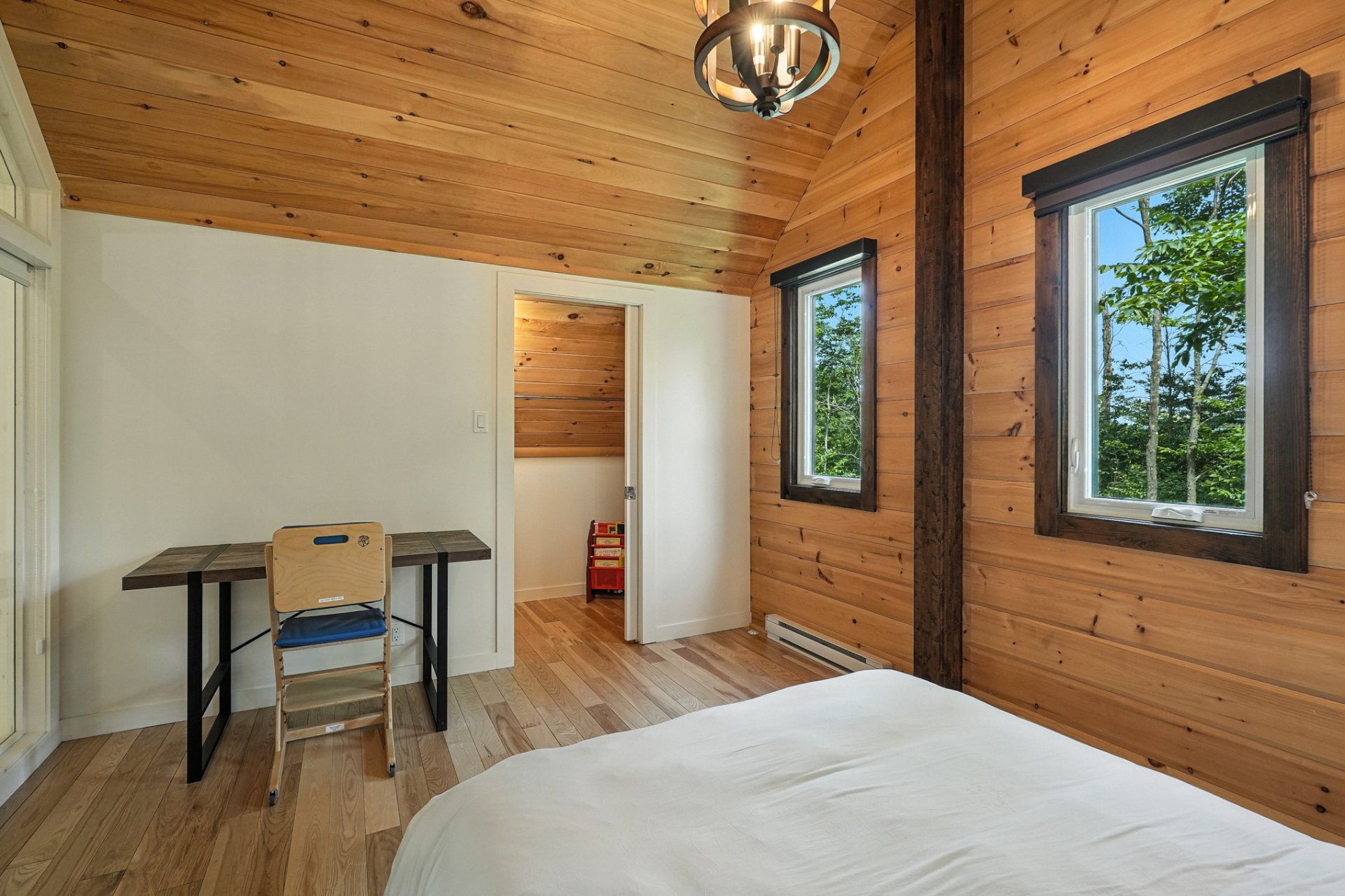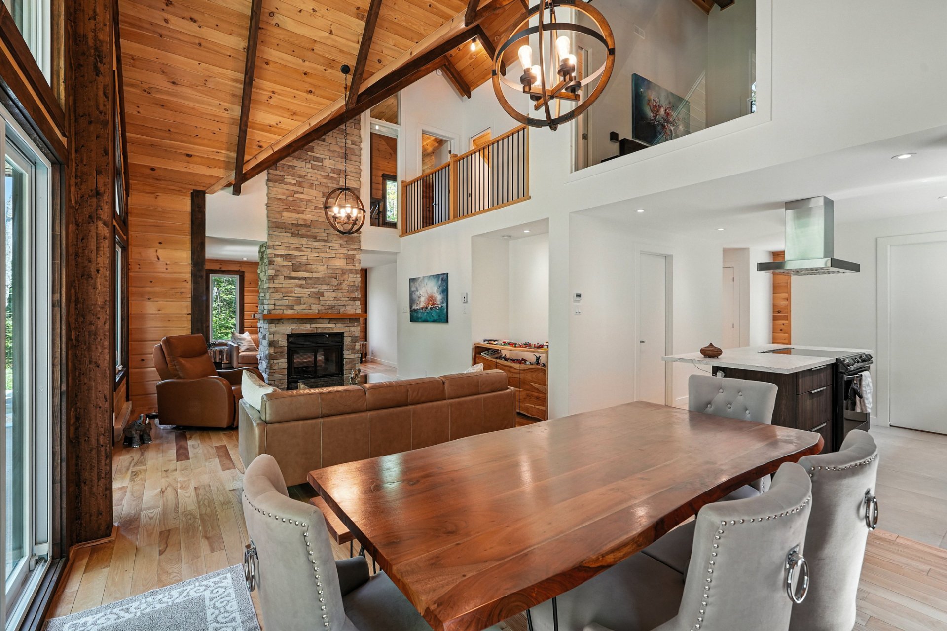 Magnifique maison scandinave à ossature bois de deux étages, confortable et intime. Détendez-vous dans le spa et profitez de la nature qui vous entoure, sur plus d'un demi-hectare, adossé aux sentiers. Profitez des équipements privilégiés du Club de la Pointe sur le magnifique lac Supérieur, notamment des courts de tennis, une piscine, une salle de sport, un quai réservé aux propriétaires avec des kayaks, des planches à pagaie et des hamacs, et bien d'autres choses encore. Vous trouverez également un bistrot et une épicerie fine avec un magasin SAQ. Une seule visite suffira pour vous séduire !