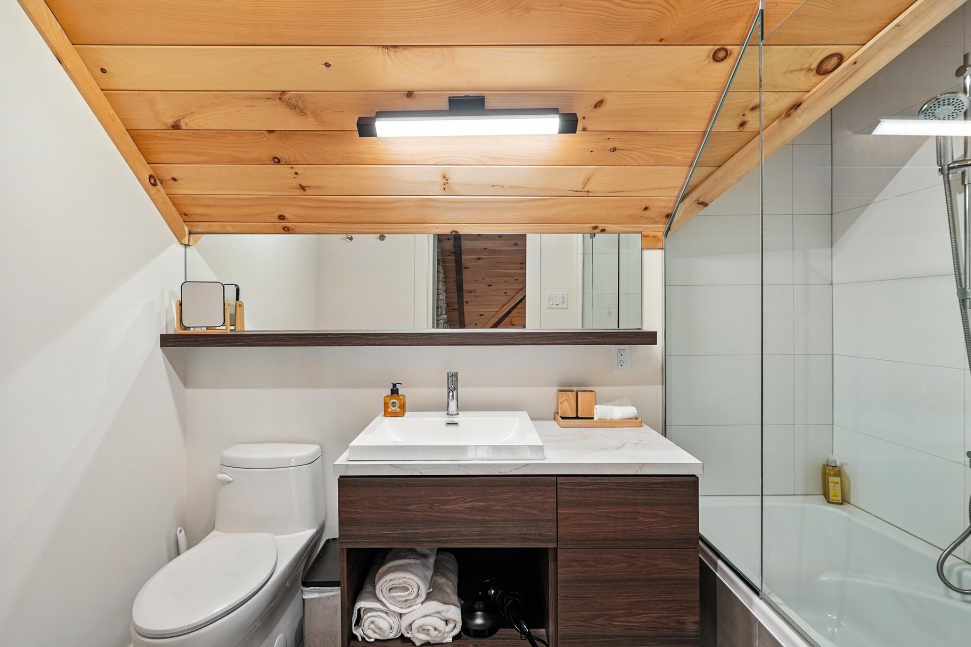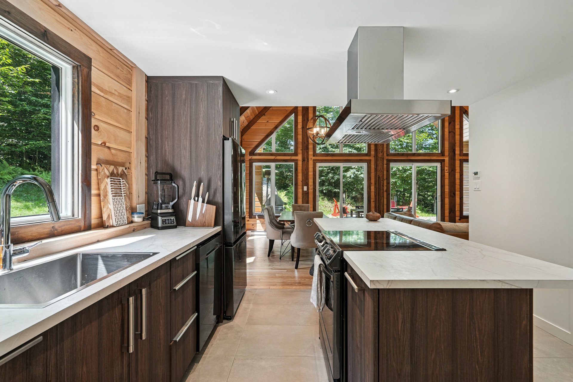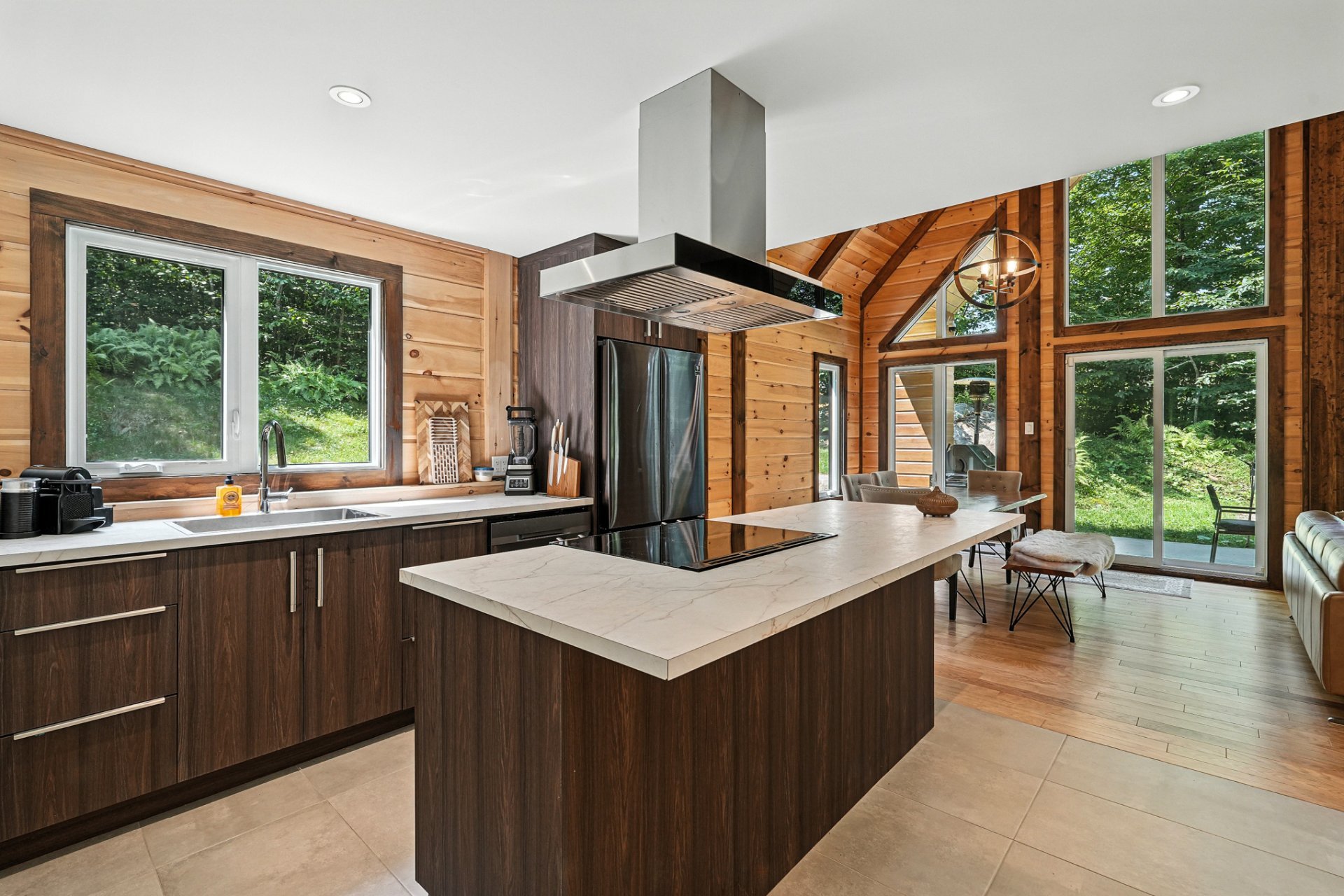 Magnifique maison scandinave à ossature bois de deux étages, confortable et intime. Détendez-vous dans le spa et profitez de la nature qui vous entoure, sur plus d'un demi-hectare, adossé aux sentiers. Profitez des équipements privilégiés du Club de la Pointe sur le magnifique lac Supérieur, notamment des courts de tennis, une piscine, une salle de sport, un quai réservé aux propriétaires avec des kayaks, des planches à pagaie et des hamacs, et bien d'autres choses encore. Vous trouverez également un bistrot et une épicerie fine avec un magasin SAQ. Une seule visite suffira pour vous séduire !