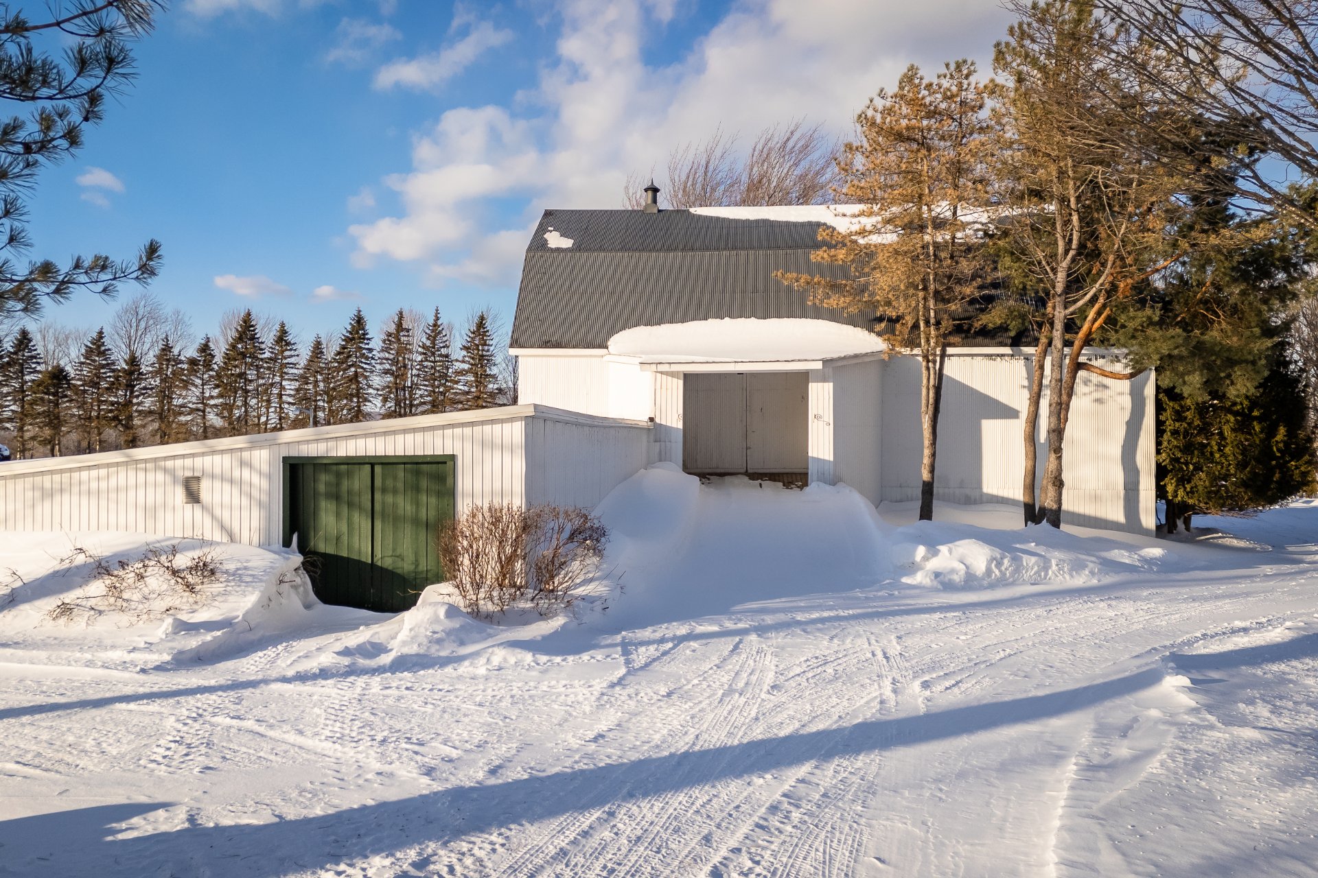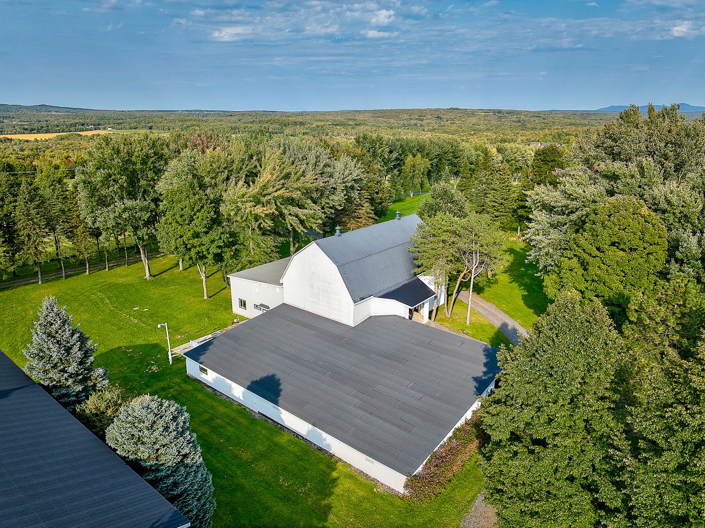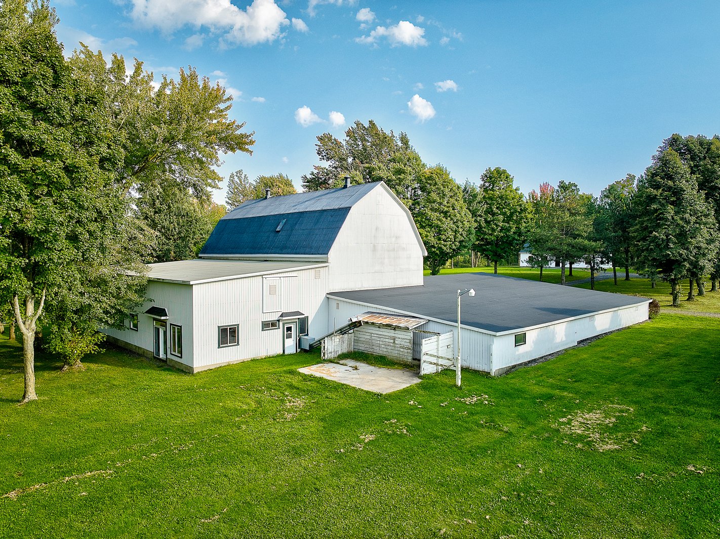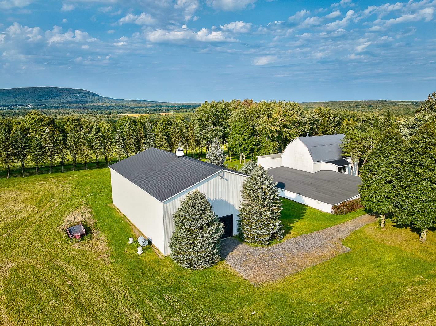 À l'extérieur, la propriété s'étend en un vaste terrain agrémenté d'une piscine creusée, idéale pour les chaudes journées d'été. Une écurie spacieuse de 4 stalles, avec une large allée menant vers une cuisinette ou bureau, un salon et une salle de bain, ravira les amateurs de chevaux. Un autre grand bâtiment polyvalent, pouvant servir de garage, de rangement et pouvant accueillir tracteurs et équipements divers, offre même des sections à plusieurs niveaux.