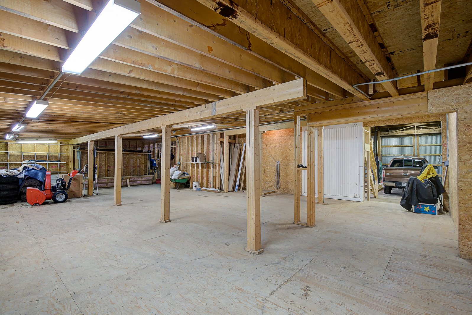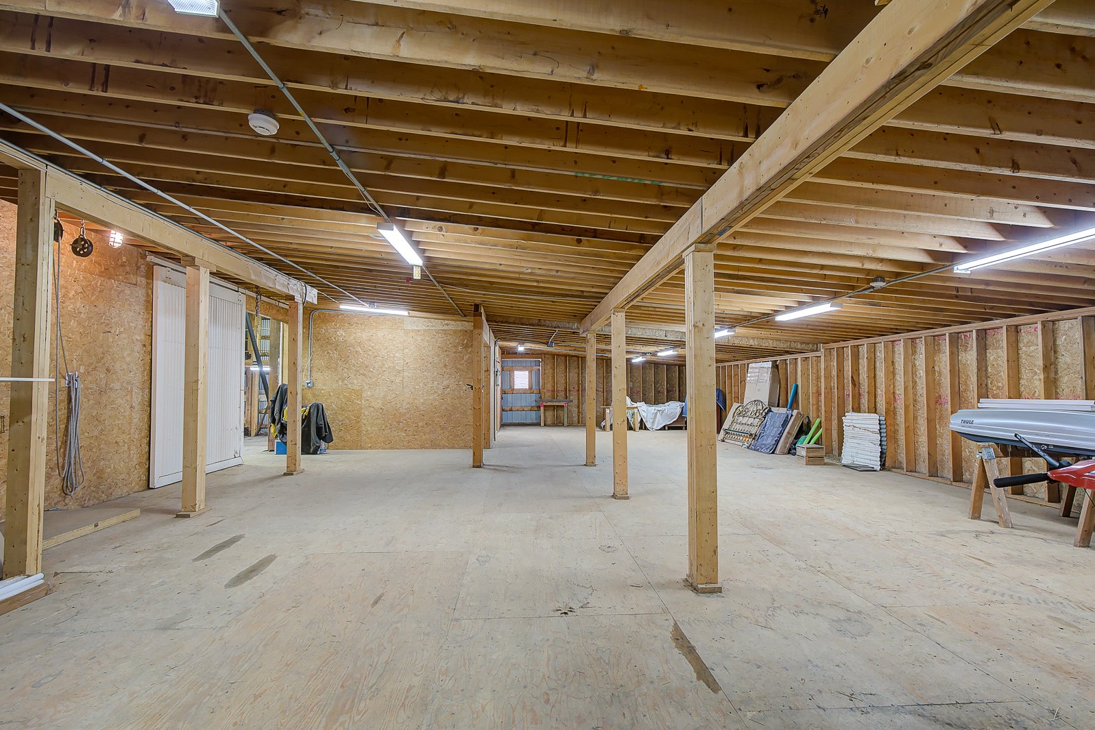Au sous-sol, chaque espace a été pensé pour la convivialité et la détente. Une grande salle familiale idéale pour les moments de loisirs, une chambre supplémentaire, un espace boudoir, et même un atelier ou salle mécanique se côtoient.