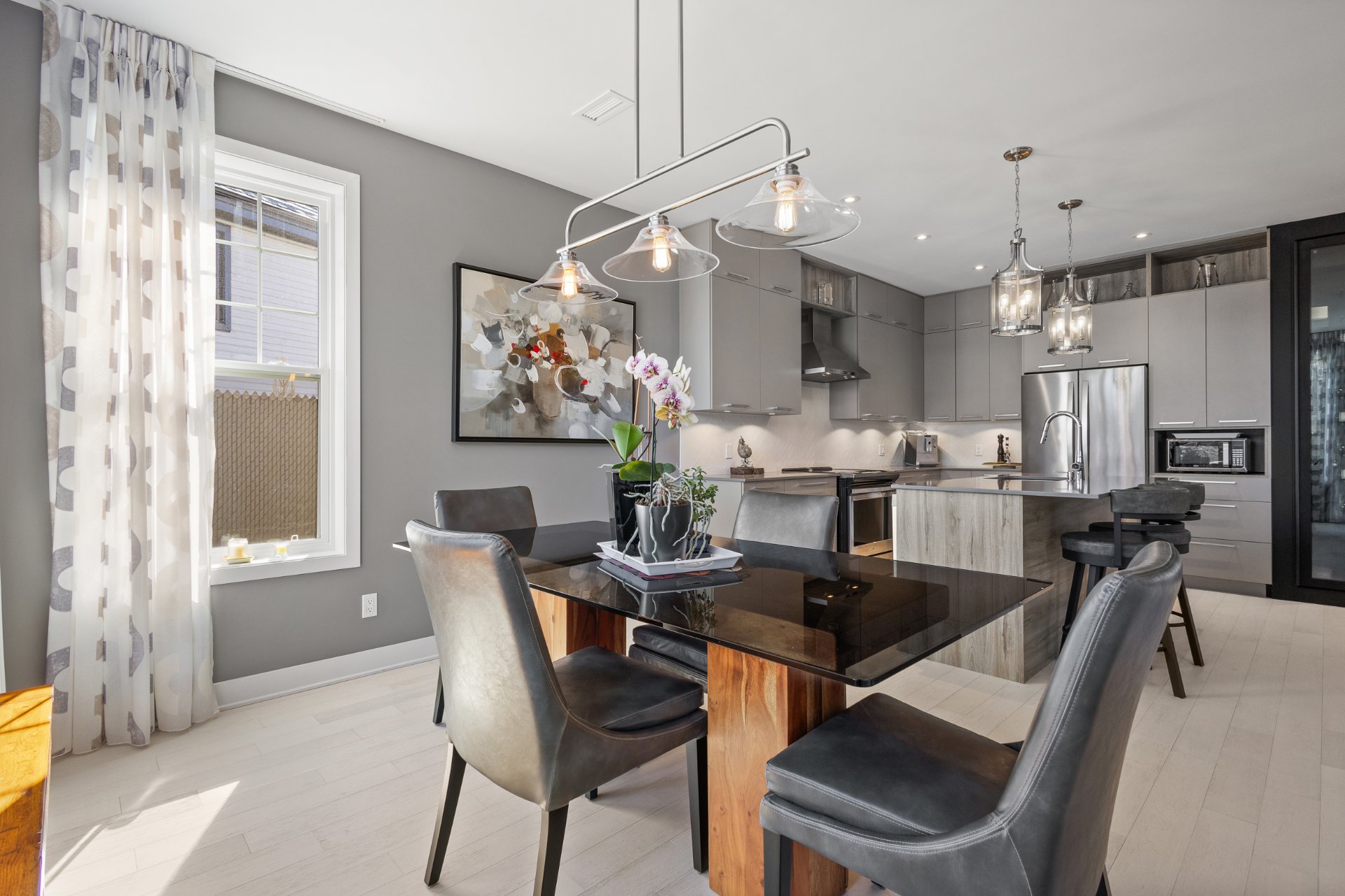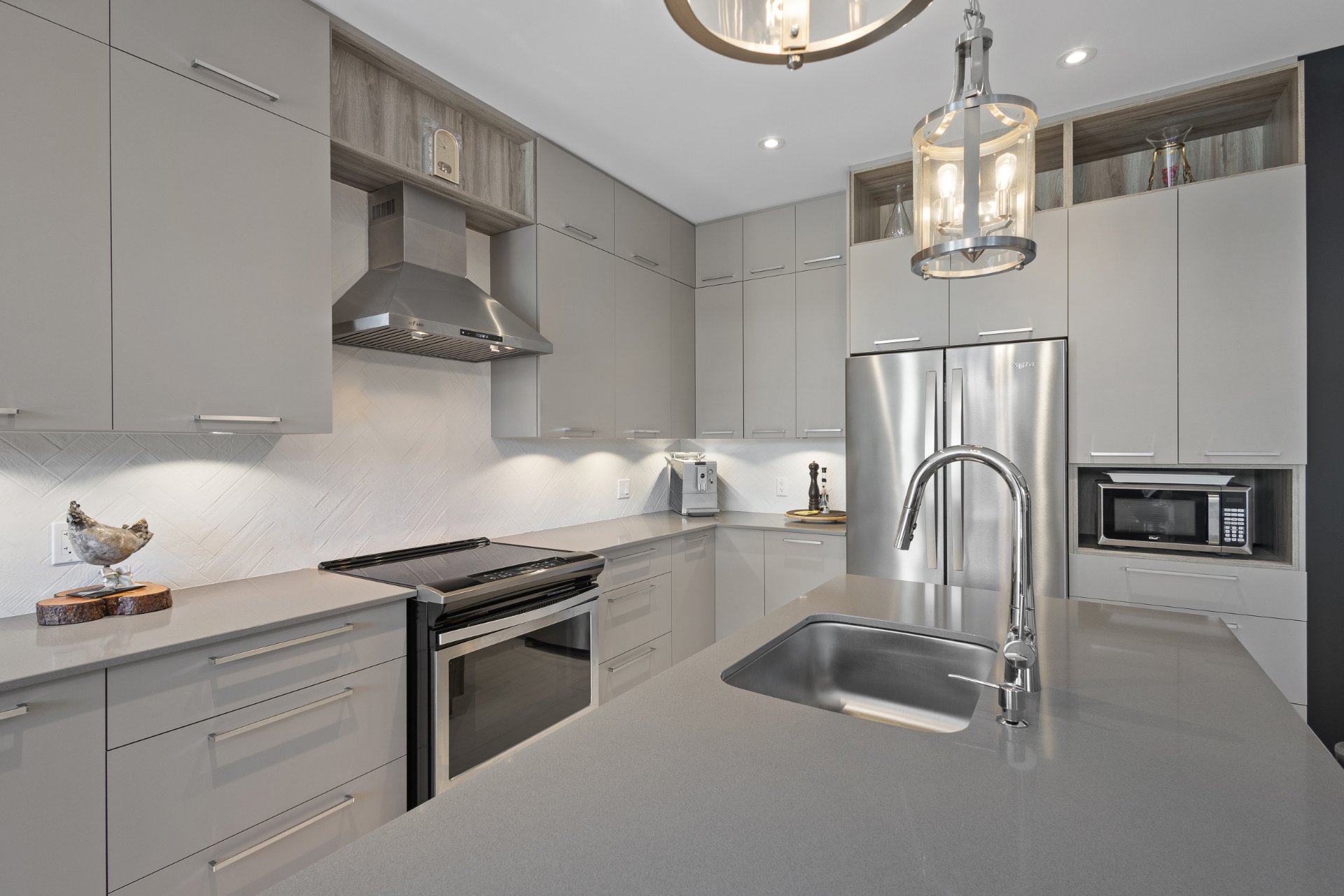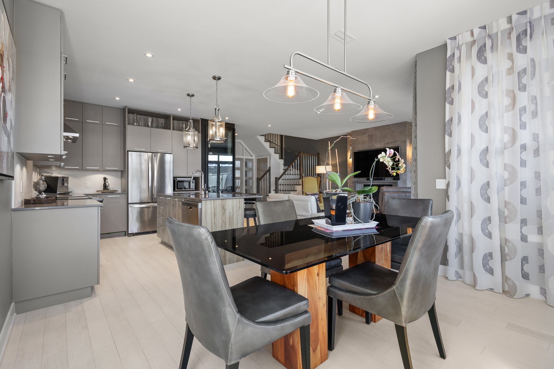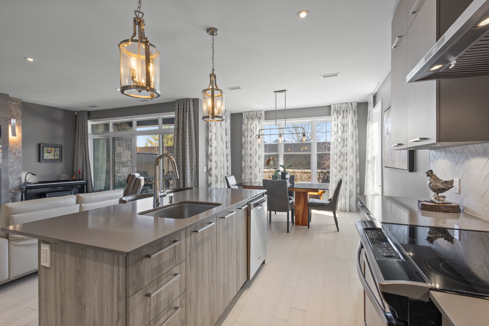 La cuisine moderne, aux tons doux et neutres, allie fonctionnalité et élégance. Son îlot central offre un espace convivial, parfait pour cuisiner ou partager un café. De nombreuses armoires assurent un rangement optimal, tandis que les matériaux de qualité et les finitions haut de gamme témoignent d'une conception soignée. Adjacent, la salle à manger permet de profiter d'un espace fluide et accueillant.
