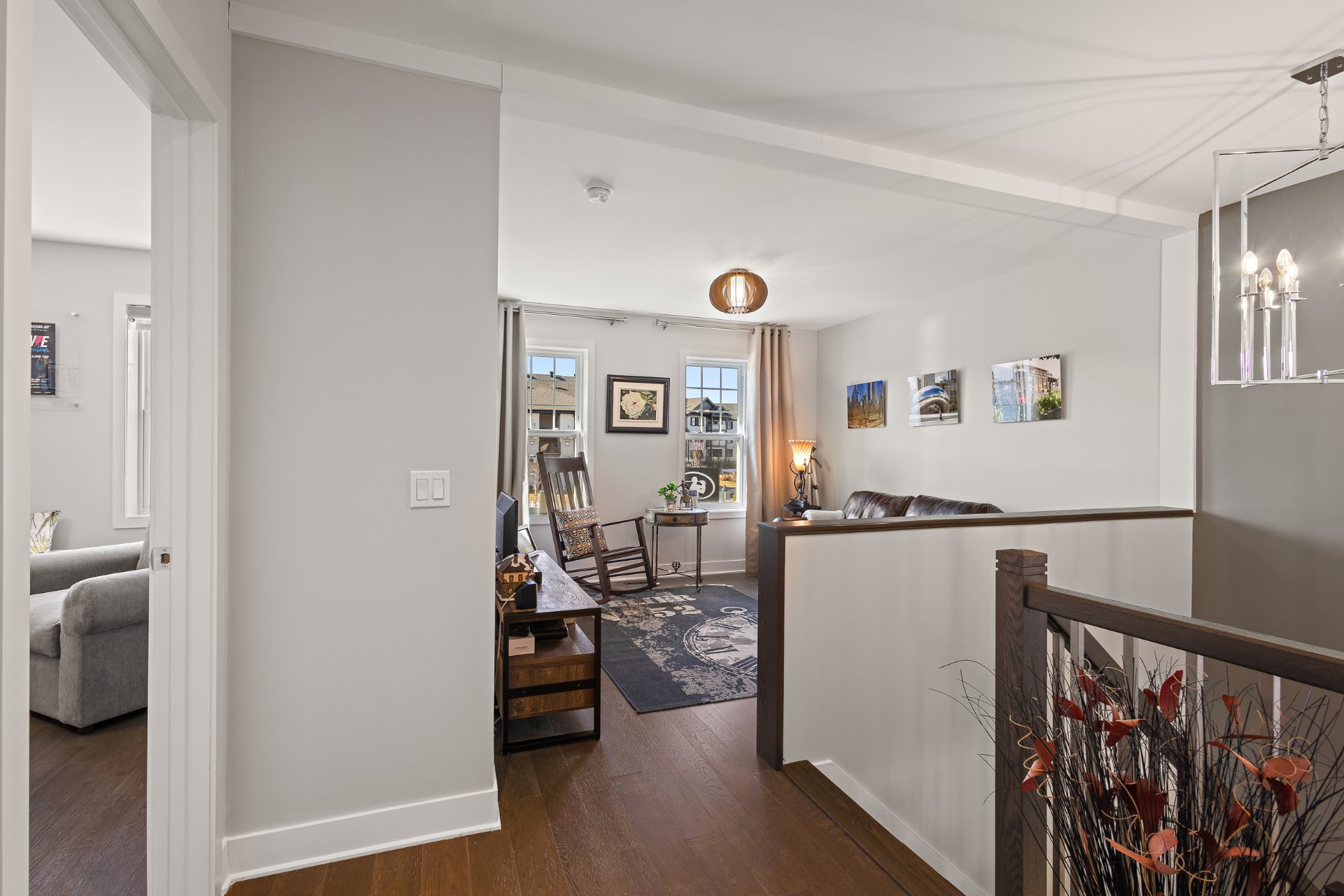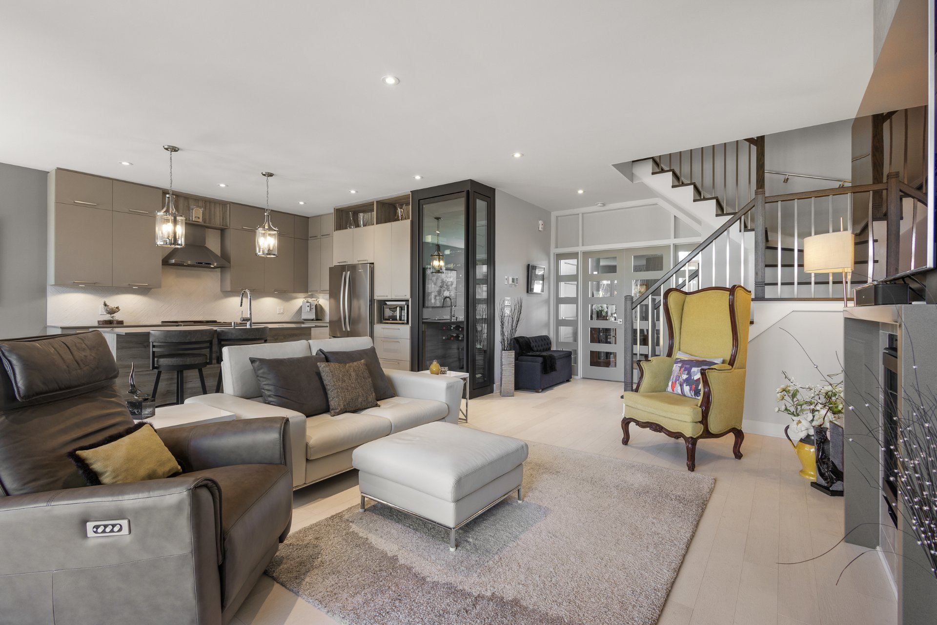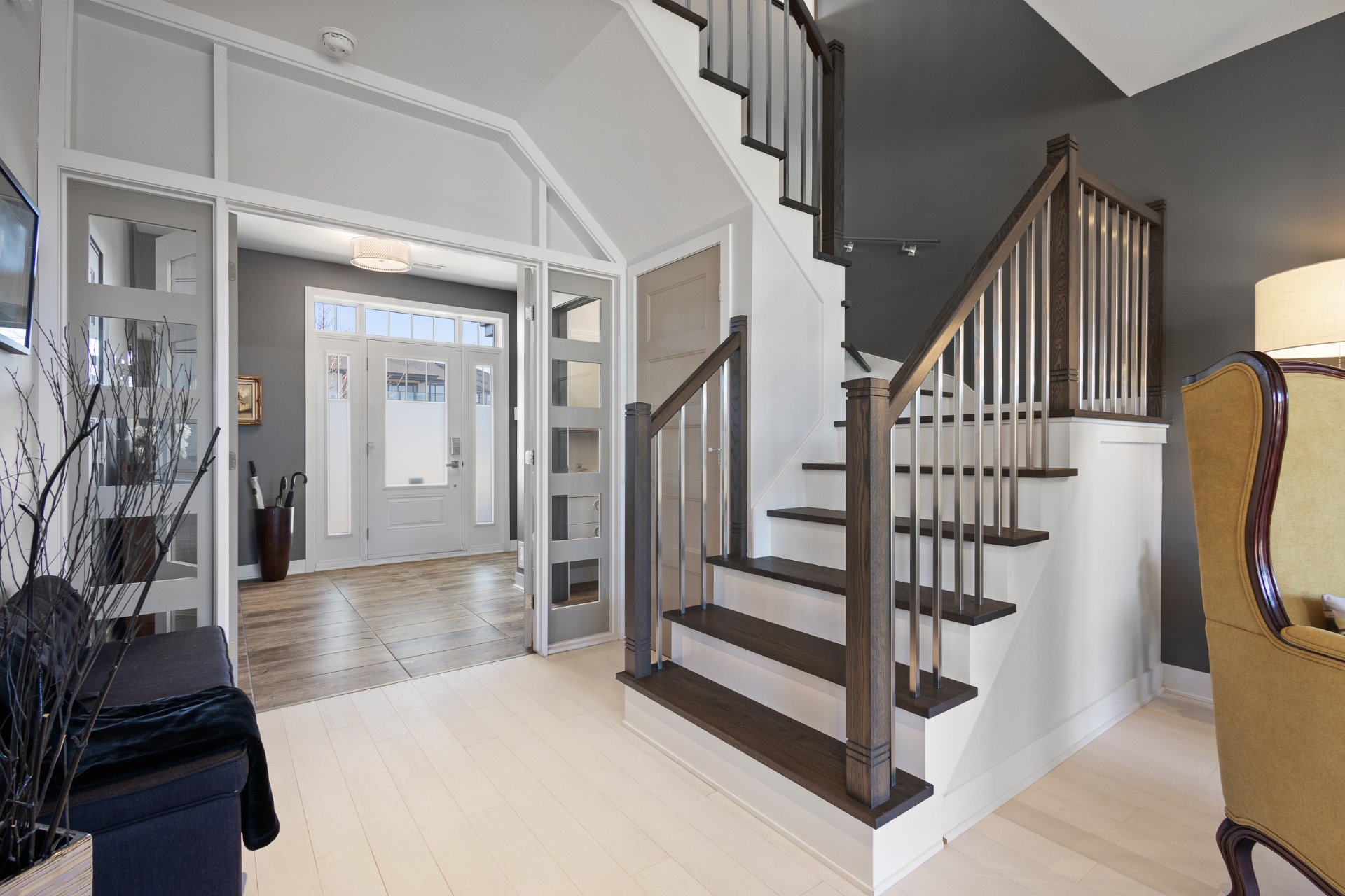 Dès l'entrée, le hall vous accueille avec son plancher en grandes dalles de céramique, son garde-robe double et un accès direct au garage. Il s'ouvre ensuite sur un espace de vie à aire ouverte, où chaque élément a été conçu pour maximiser confort et esthétisme.