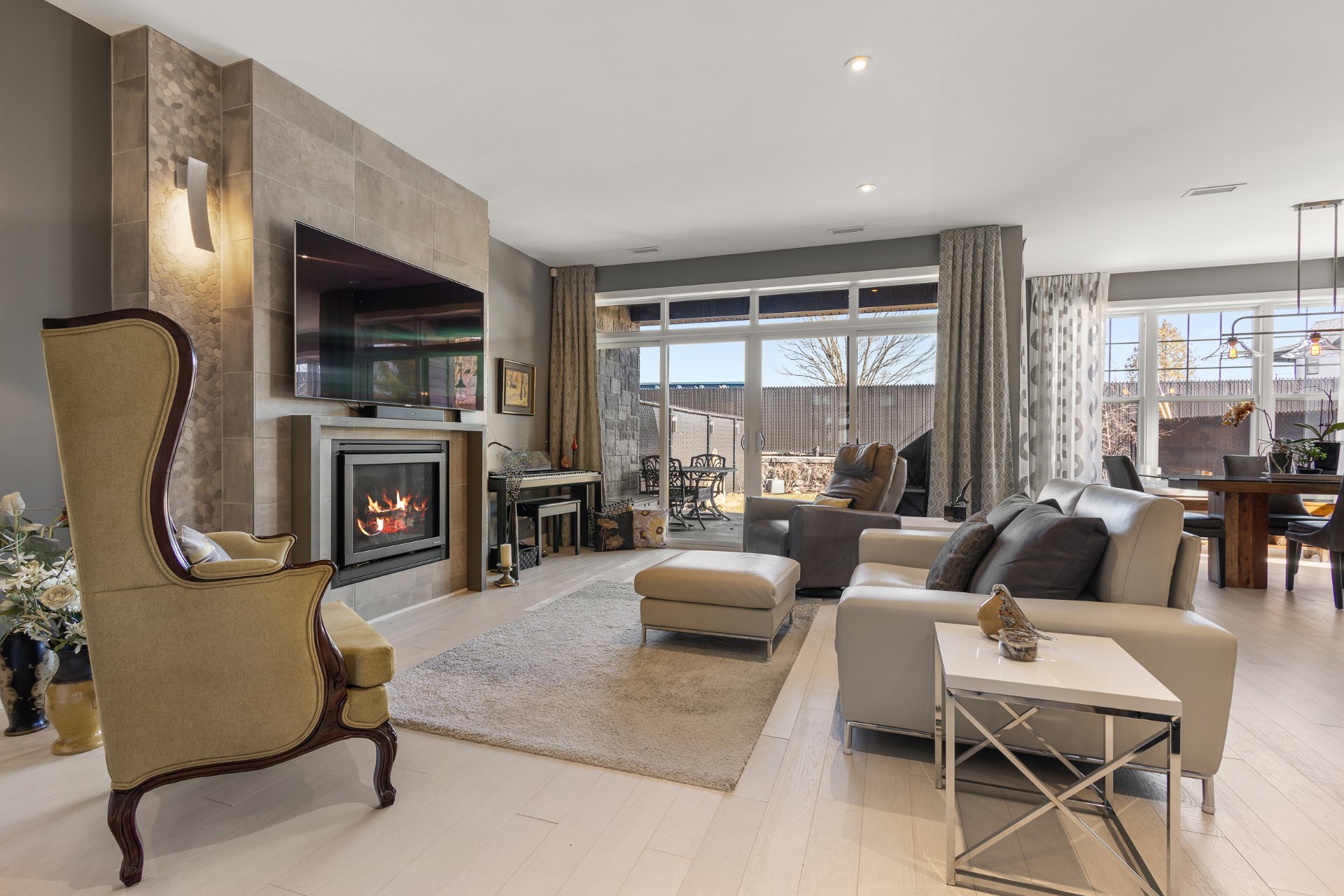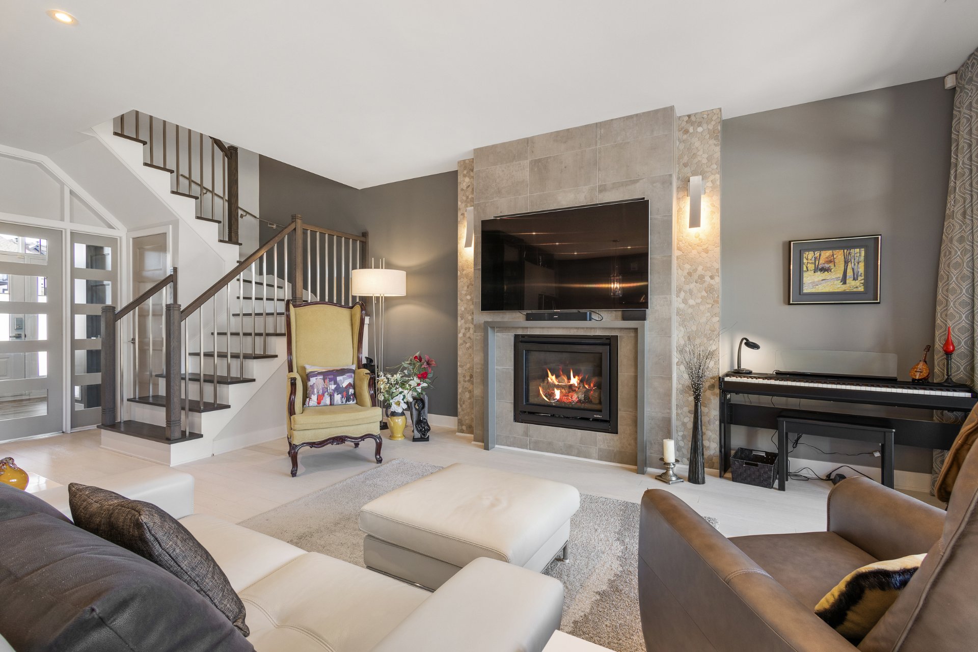 Le salon, véritable coeur de la maison, se distingue par son superbe foyer au gaz, ajoutant une touche d'élégance et de confort. L'ensemble du rez-de-chaussée est doté d'un plancher chauffant, garantissant une chaleur enveloppante en toute saison.