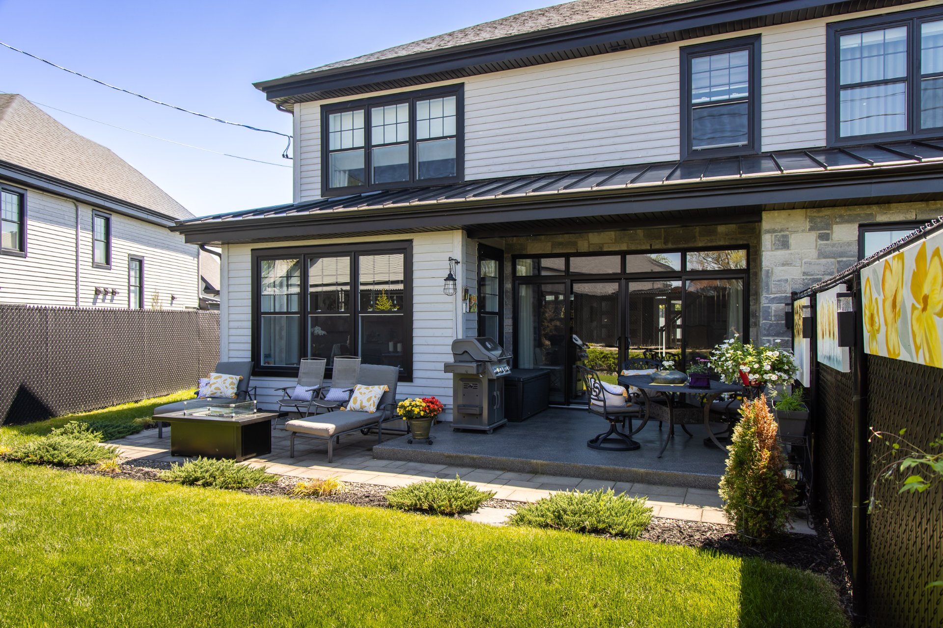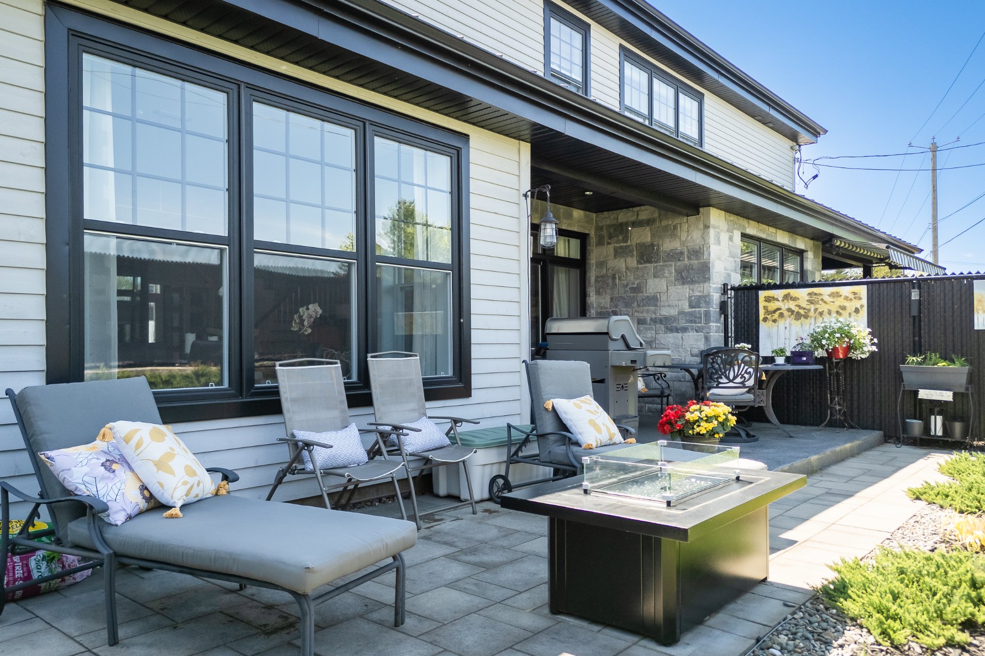 - Tous les électro-ménagers: cuisinière, réfrigérateur, lave-vaisselle, cellier, laveuse et sécheuse, stores, habillage des fenêtres, toutes les fixtures, support mural TV du salon, aspirateur central et accessoires, système d'ouverture et fermeture du garage, table de feu au gaz à l'extérieur, thermopompe, système d'alarme, boite à fleur extérieur.