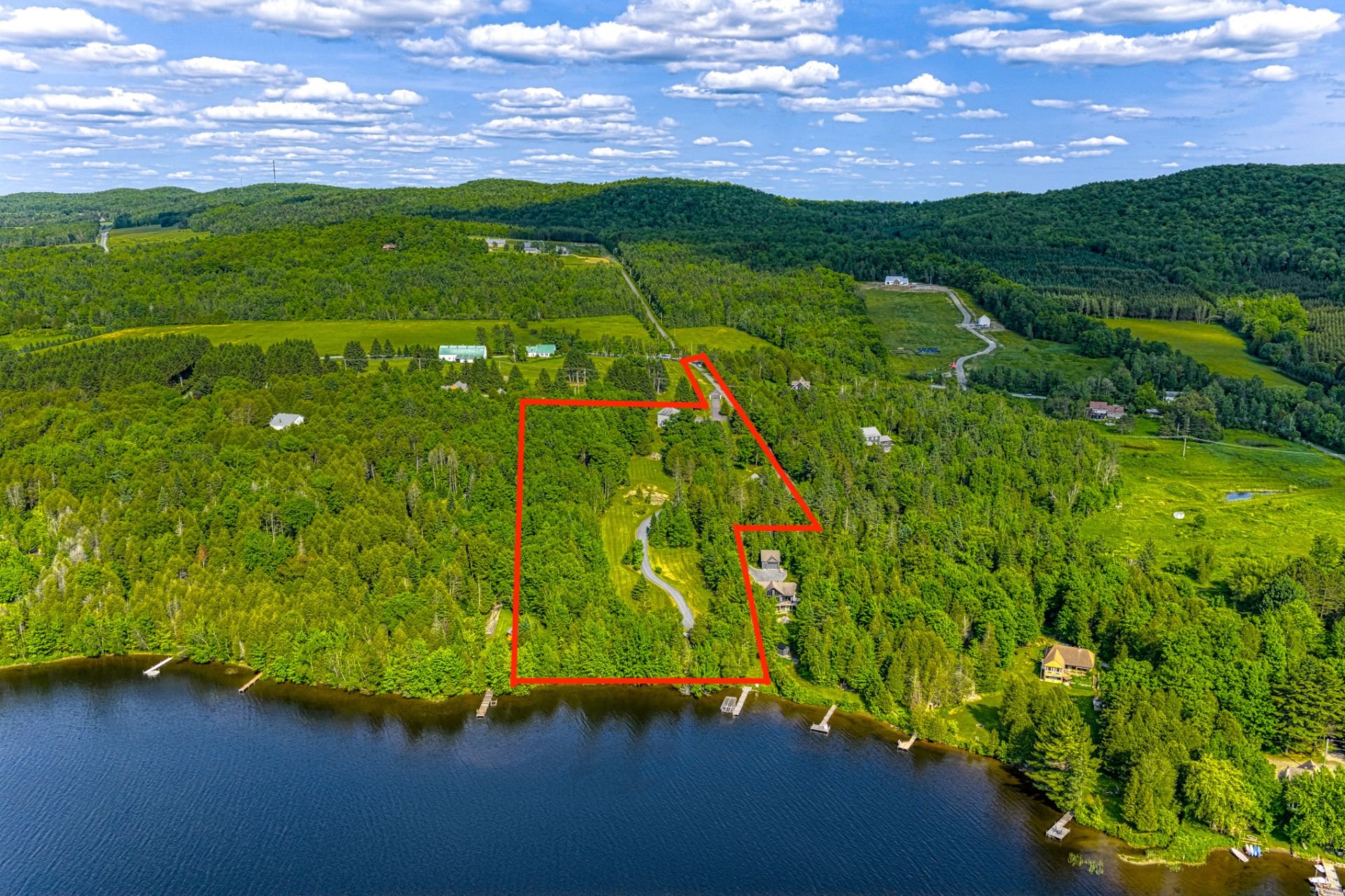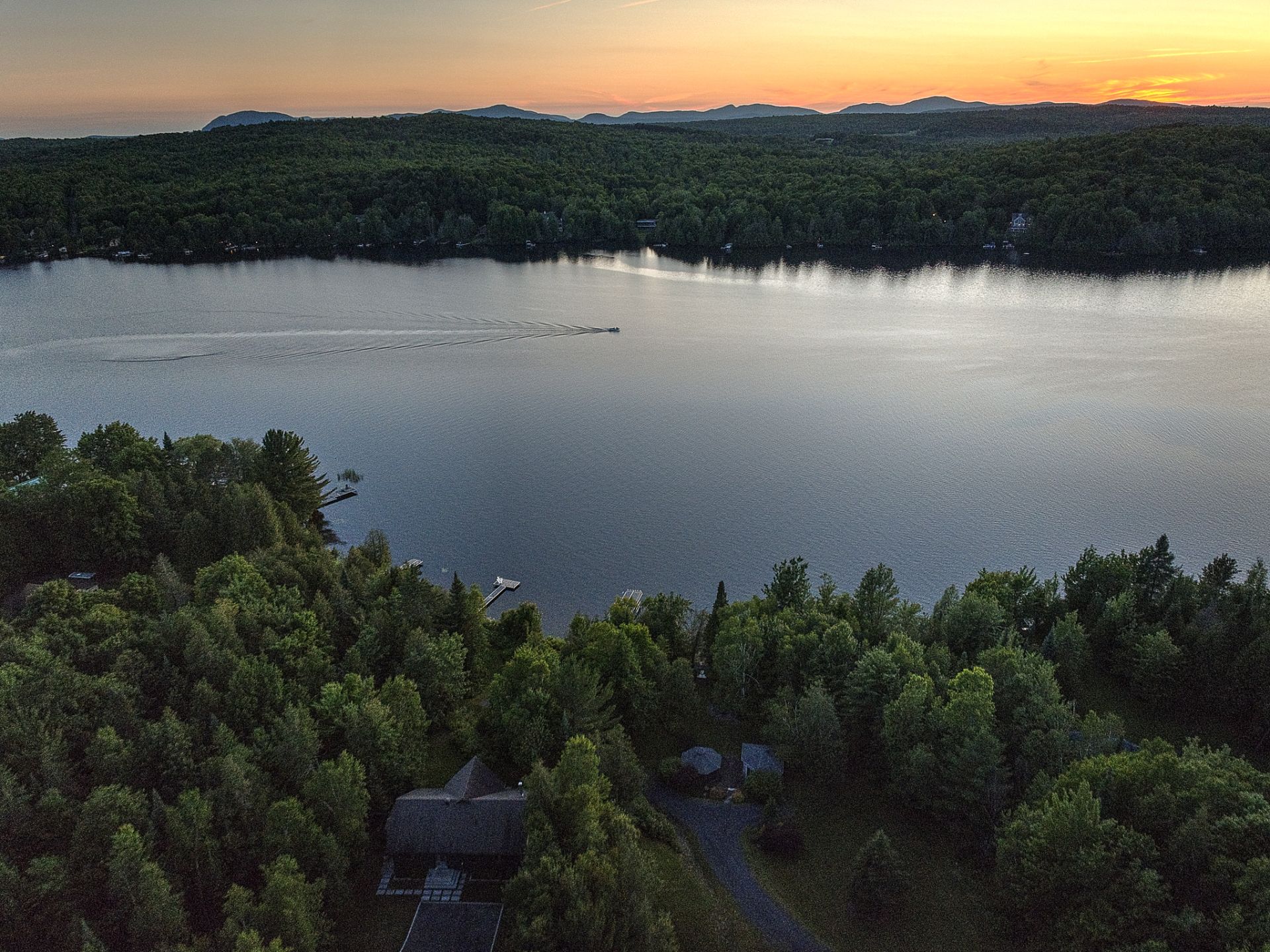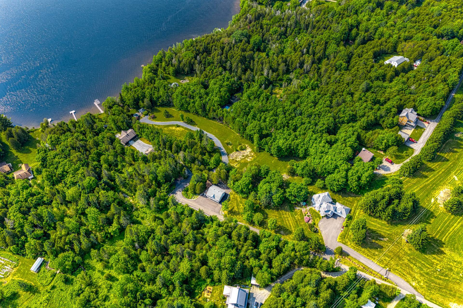 À l'extérieur, l'accès direct au lac Lovering avec quai privé vous permet de profiter pleinement des plaisirs nautiques. Une élégante pergola au bord de l'eau crée un espace convivial et invitant pour savourer les journées d'été et recevoir dans un décor naturel à couper le souffle.
