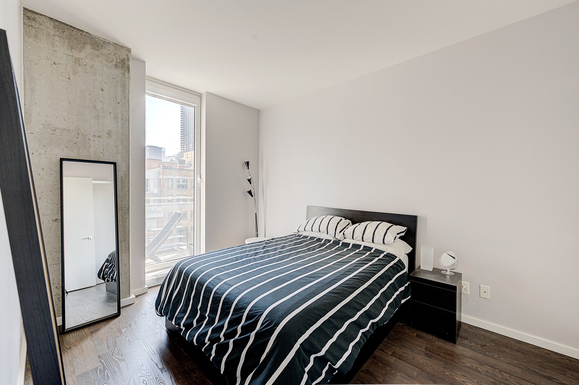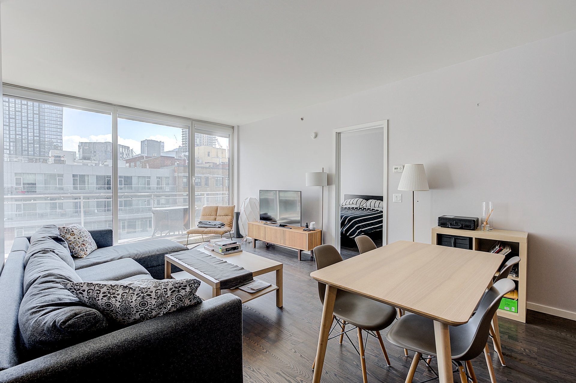 Condo de 2 chambres situé au 14e étage du projet Louis Bohème, au coeur du Quartier des Spectacles, offrant un espace de vie à aire ouverte baigné de lumière naturelle et un grand balcon. Accès aux services de l'immeuble - sécurité 24h24, piscine, gym, chalet urbain et cour intérieure commune. À distance de marche de tous les attraits du centre-ville.