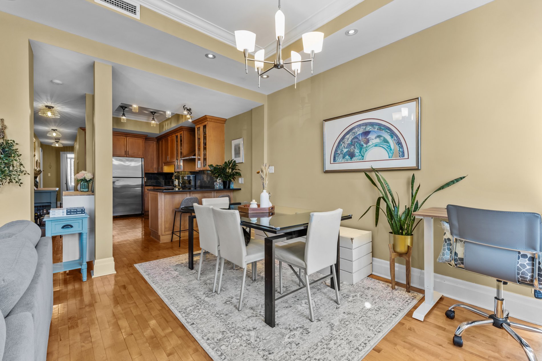 Rare opportunité au coeur du Village Monkland! Élégant condo de 1 146 pi² situé dans un charmant immeuble de six unités avec ascenseur. Niché au deuxième étage, l'unité offre 2 cac, 2 salles de bains complètes et un espace de vie à aire ouverte lumineux grâce aux hauts plafonds et aux grandes fenêtres. La cuisine spacieuse propose des armoires en bois franc et des comptoirs en granit. La chambre principale comprend un walk-in et une salle de bains attenante avec planchers chauffants. Une deuxième chambre de belle dimension complète l'unité. 1 stationnement extérieur et 1 espace de rangement inclus.