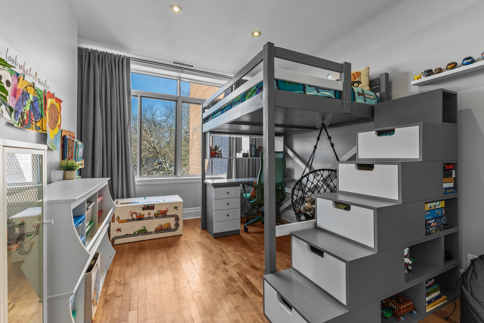 - Réfrigérateur, cuisinière/four, lave-vaisselle, laveuse/sécheuse, rideaux dans les deux chambres, luminaires, haut-parleurs intégrés au salon, 1 espace de stationnement extérieur, 1 espace de rangement