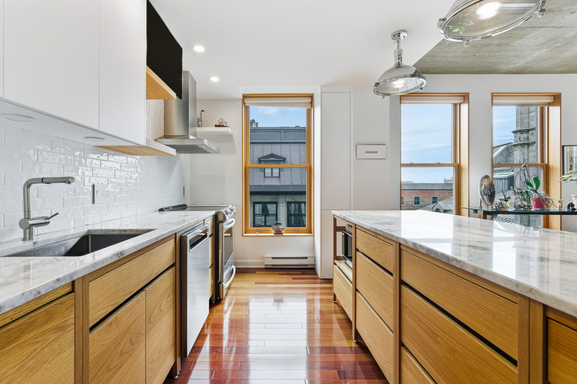Résultat d'une fusion méticuleuse de deux unités, ce condo de coin se distingue par son plan ingénieux, ses volumes généreux et sa luminosité exceptionnelle, baignée de soleil grâce à son orientation sud-ouest. L'ensemble allie avec justesse le cachet patrimonial du Vieux-Montréal et une élégance contemporaine sobre. Les finitions raffinées et la vue imprenable sur la Basilique Notre-Dame confèrent à cette résidence une prestance rare, à la fois intemporelle et parfaitement intégrée à son environnement historique. Deux espaces de stationnement inclus. Visites privées sur rendez-vous.