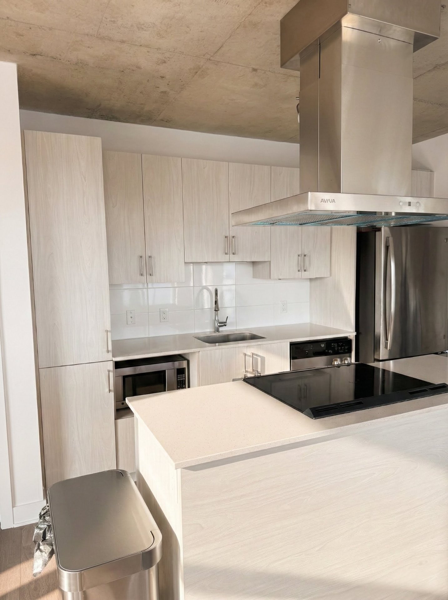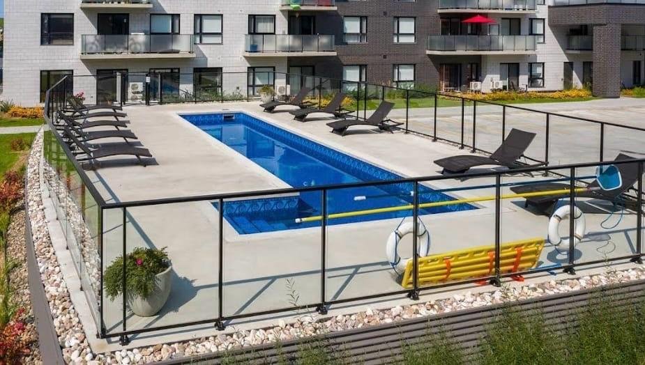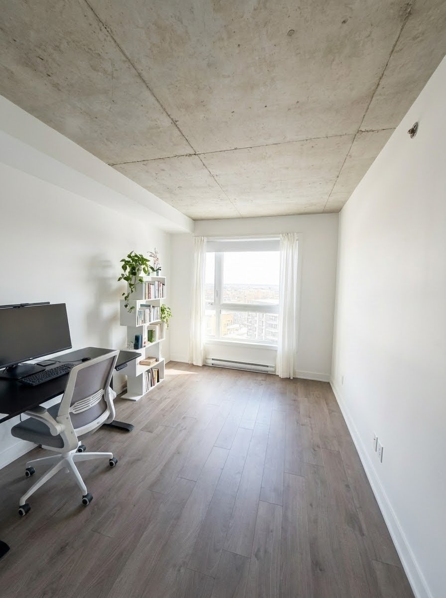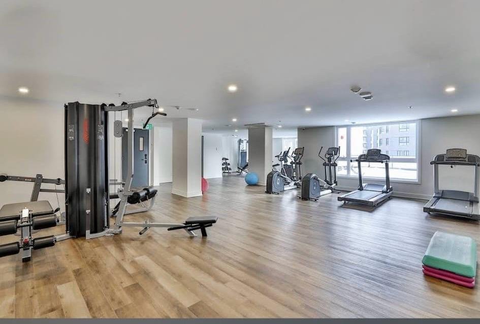 L'immeuble EQ8 est un complexe de copropriété moderne et bien géré, offrant une construction de qualité et une excellente insonorisation. Les résidents bénéficient de commodités haut de gamme, incluant un gym entièrement équipé, une piscine extérieure et une vaste terrasse commune avec espace barbecue. Un service de concierge 24/7, une salle sécurisée pour la réception des colis et un accès contrôlé assurent confort et tranquillité d'esprit. Stationnement intérieur et espaces de rangement supplémentaires disponibles à la location, selon disponibilité.