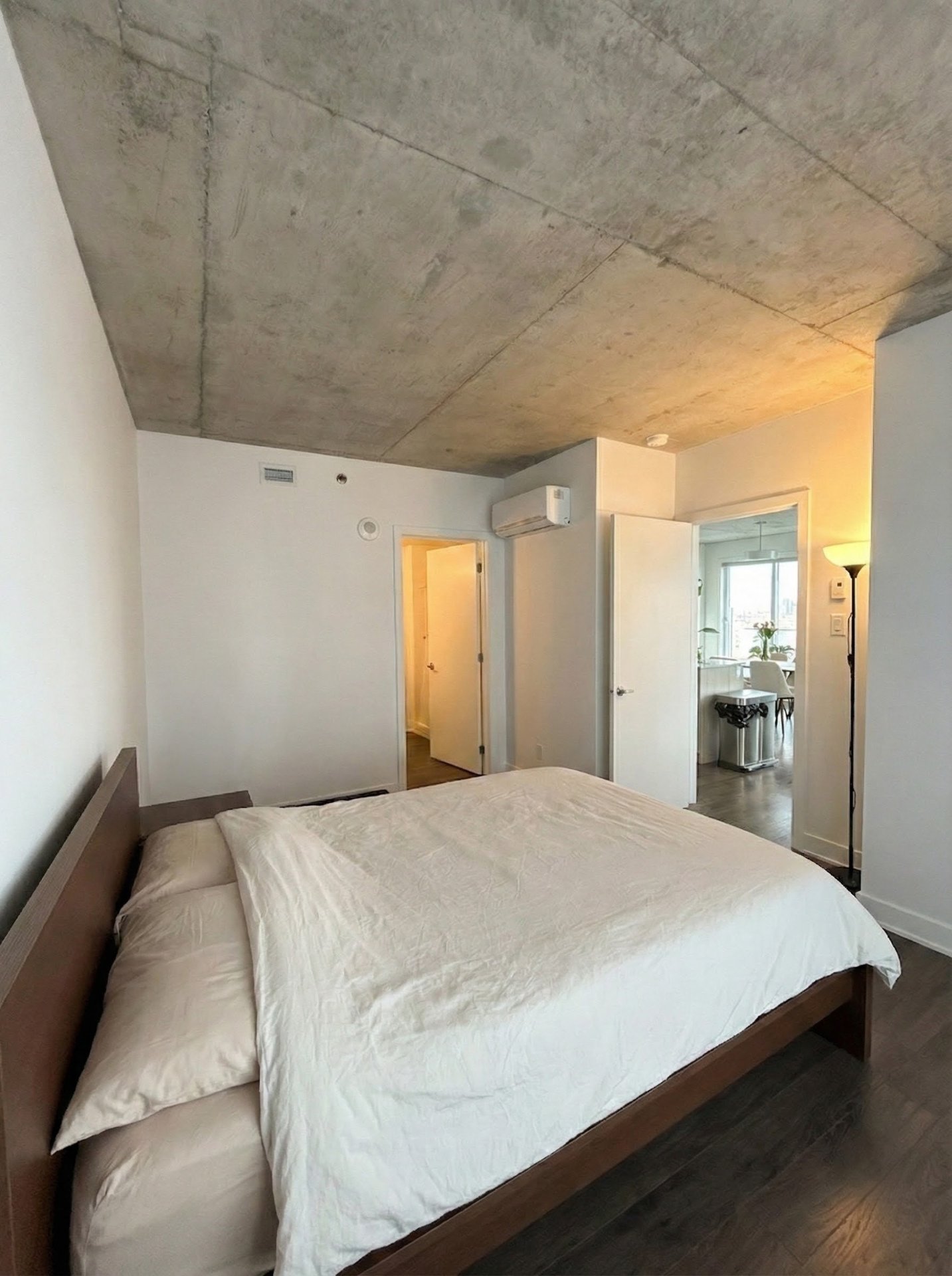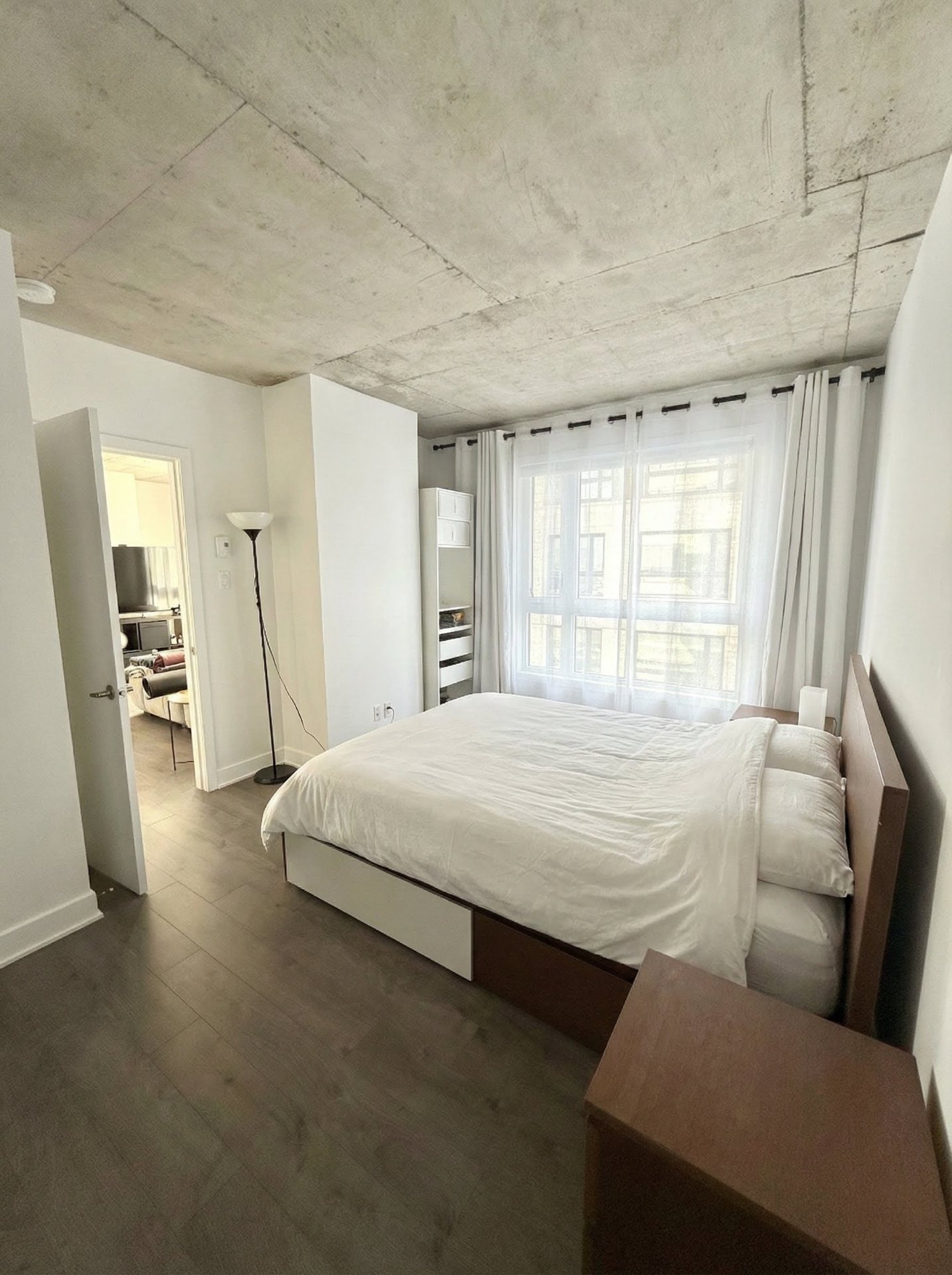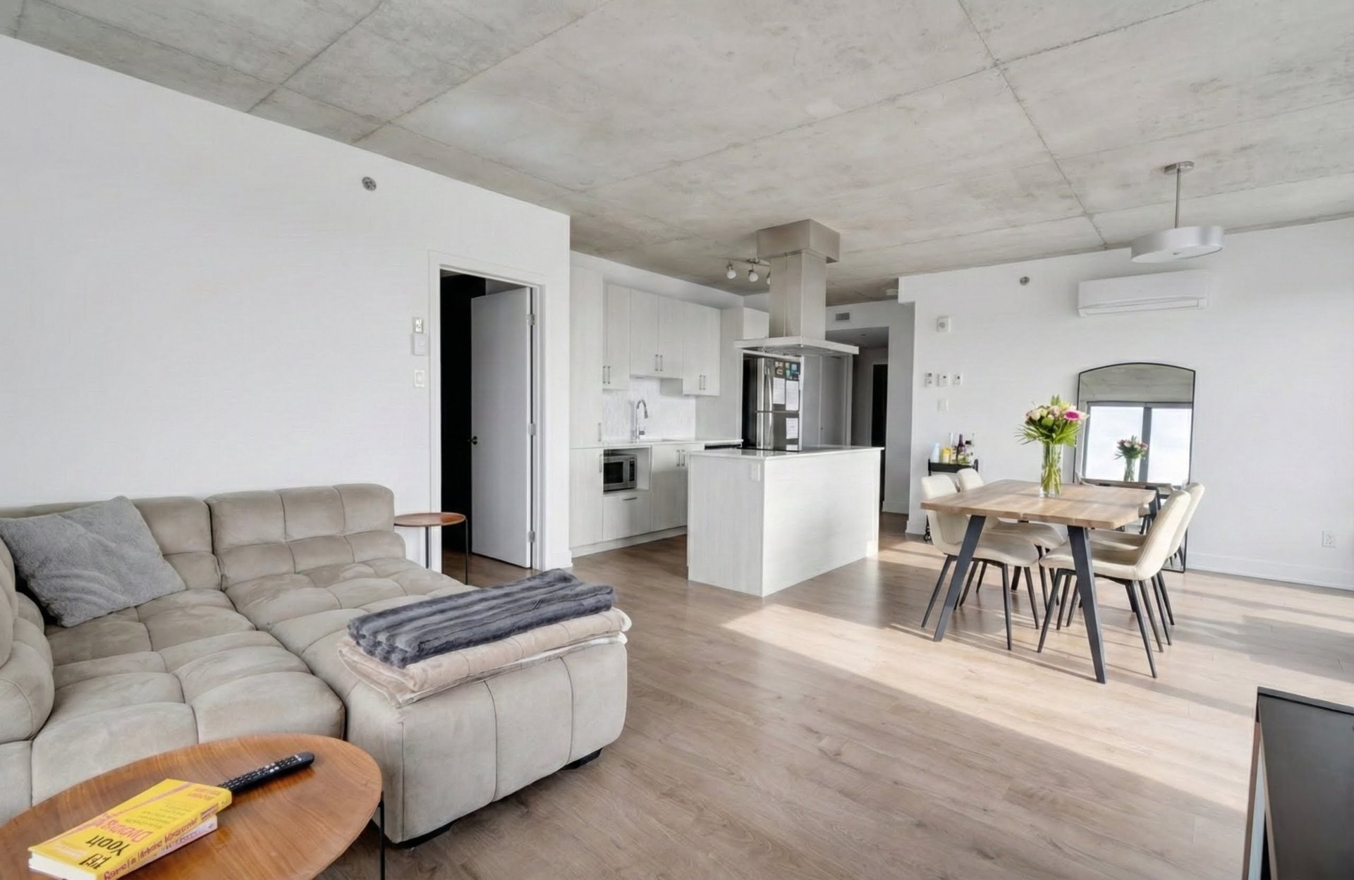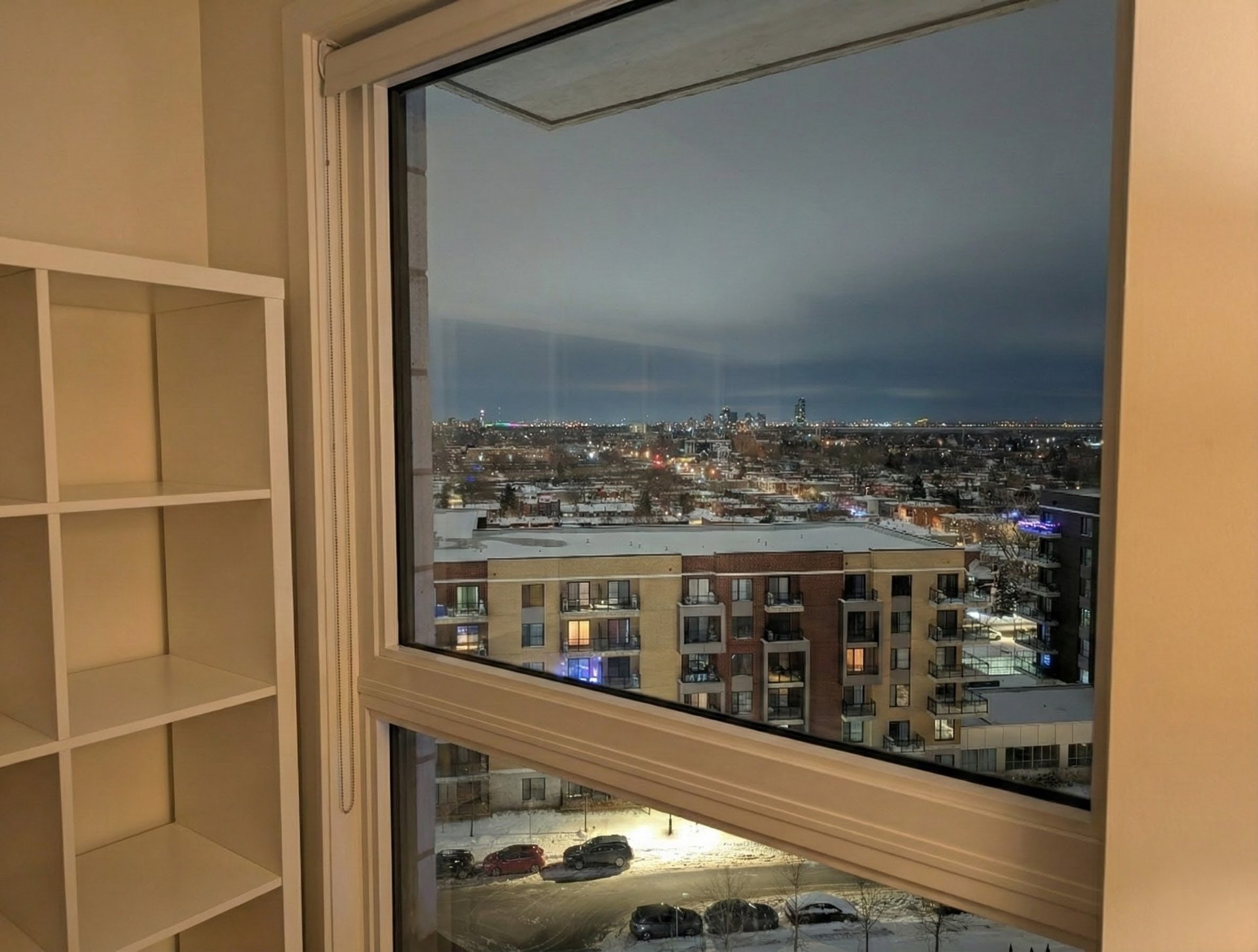 Superbe condo de 3 chambres et 2 salles de bain situé au 11e étage de l'immeuble EQ8, offrant une vue dégagée et spectaculaire sur l'Île-des-Soeurs et le fleuve Saint-Laurent. L'unité se distingue par sa luminosité abondante, son excellente insonorisation et ses nombreux espaces de rangement, incluant un walk-in dans l'une des chambres. Deux climatiseurs assurent un confort optimal. Emplacement stratégique à moins de 10 minutes à pied du métro Angrignon, à proximité immédiate de Maxi, Walmart et du Carrefour Angrignon. Possibilité de louer un stationnement intérieur et un rangement supplémentaire. Animaux permis, chiens de moins de 30 lb.