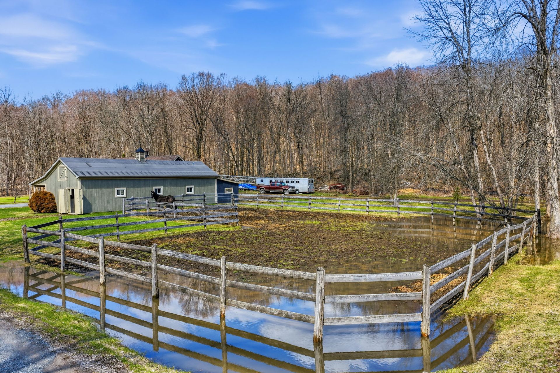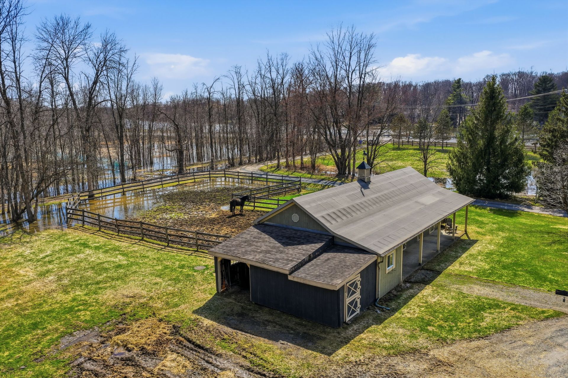 Pâturages pour chevaux avec accès à plusieurs kilomètres de sentiers en forêt mature (réseau d'environ 1200 acres)