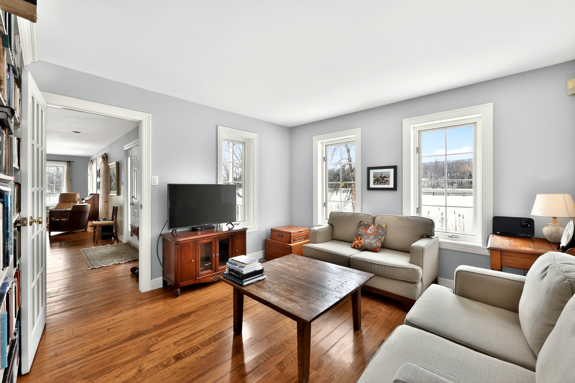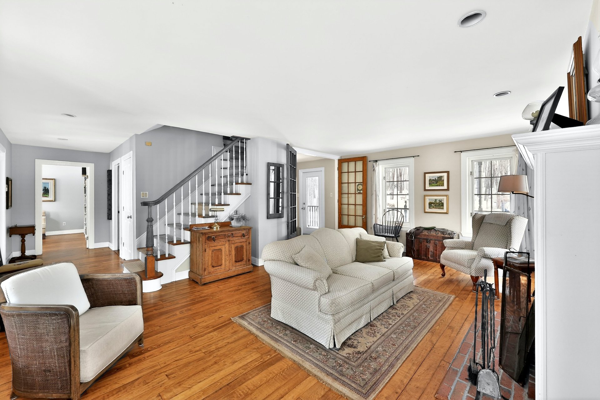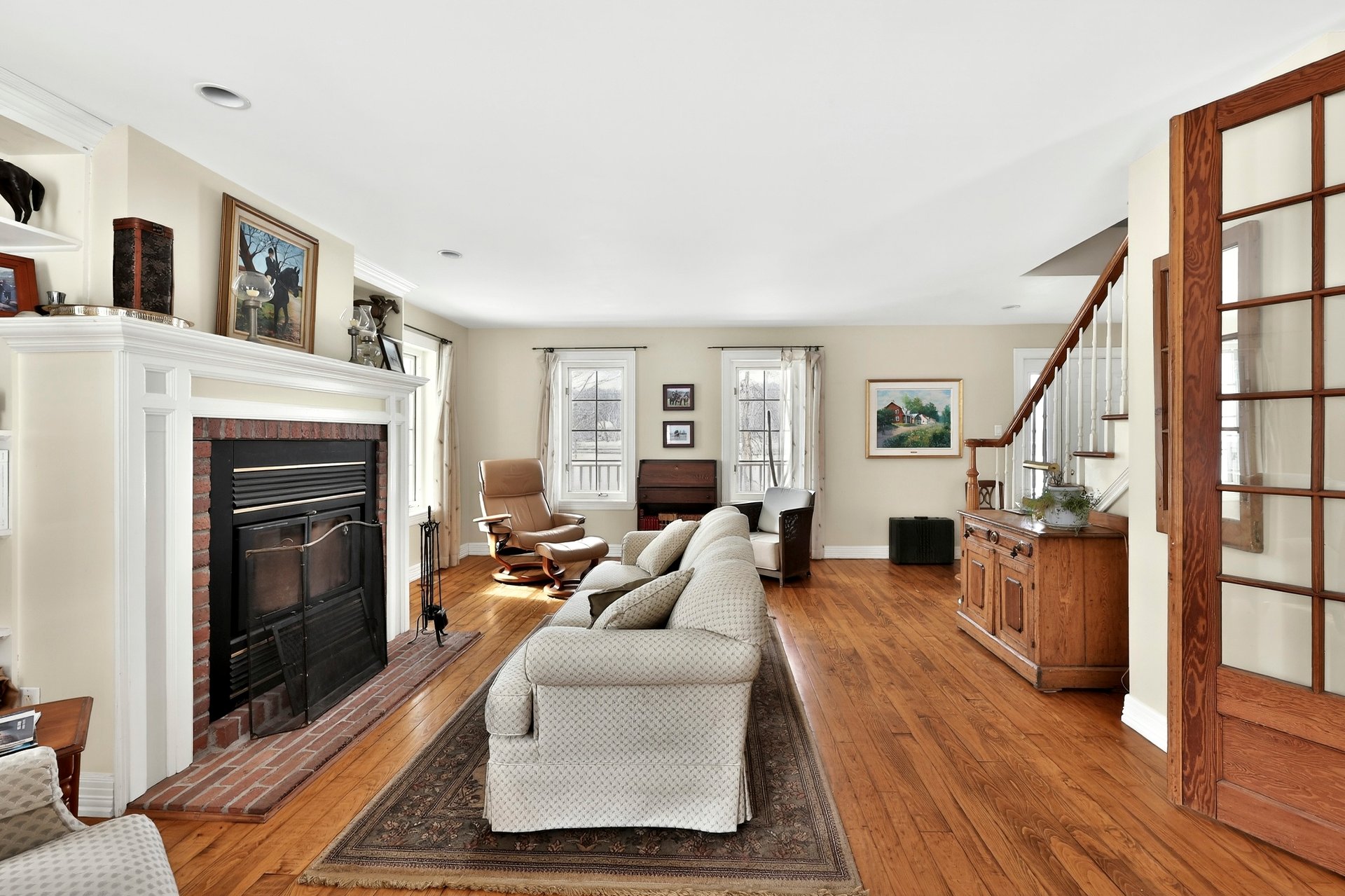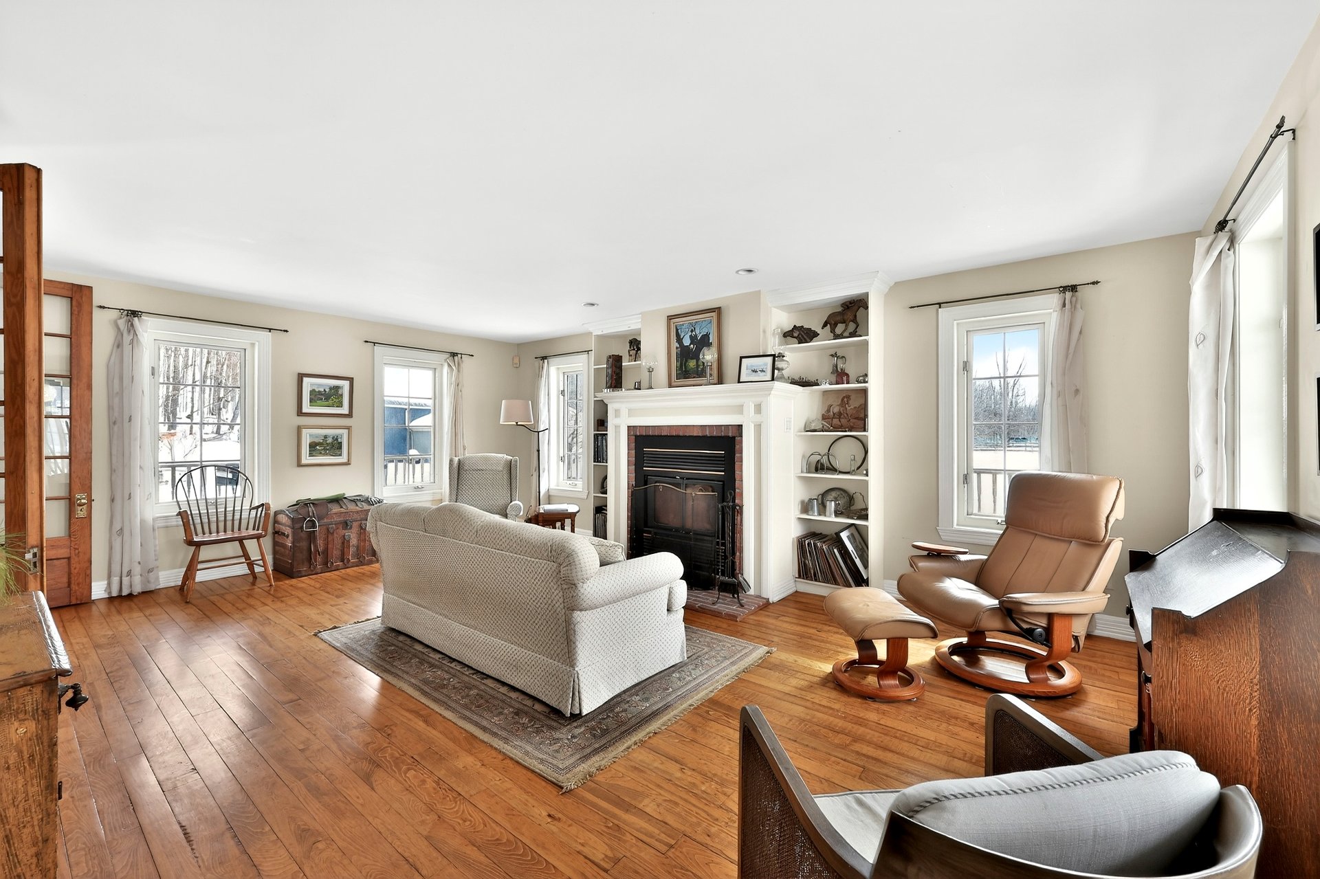 La résidence principale, chaleureuse et lumineuse, propose une configuration à étages comprenant 4 chambres à coucher et 2 salles de bain complètes ainsi qu'une salle d'eau. Vous y trouverez deux foyers, dont un magnifique foyer au bois à combustion lente dans le vaste salon, créant une ambiance conviviale en toute saison. La salle à manger et la cuisine profitent d'une fenestration abondante, laissant entrer une lumière naturelle généreuse.