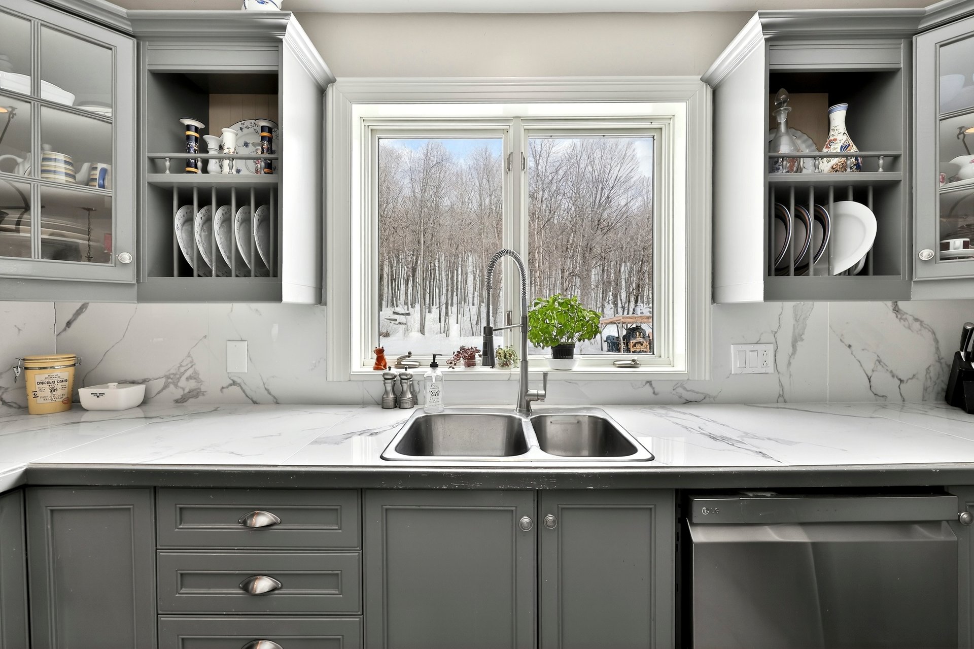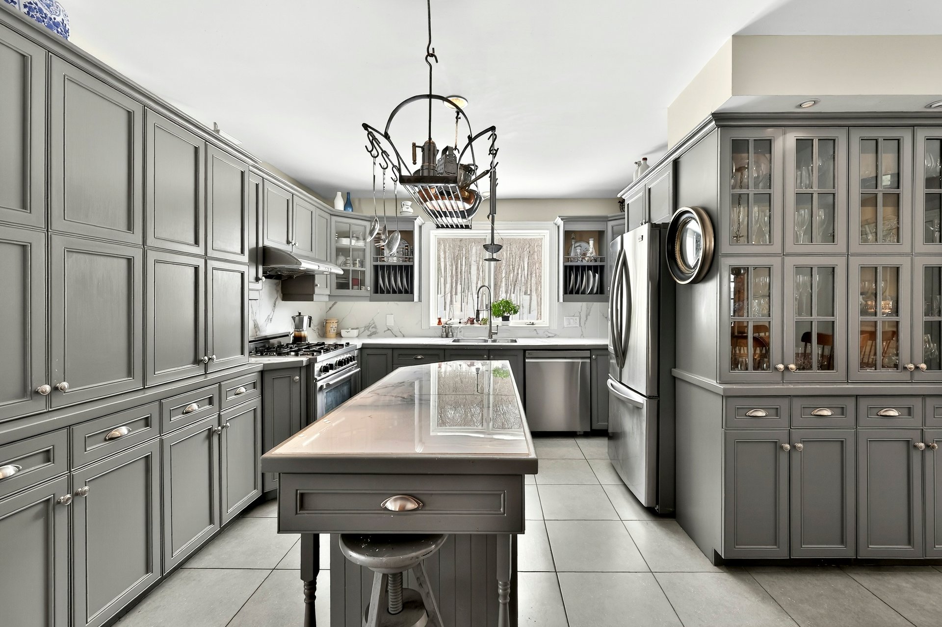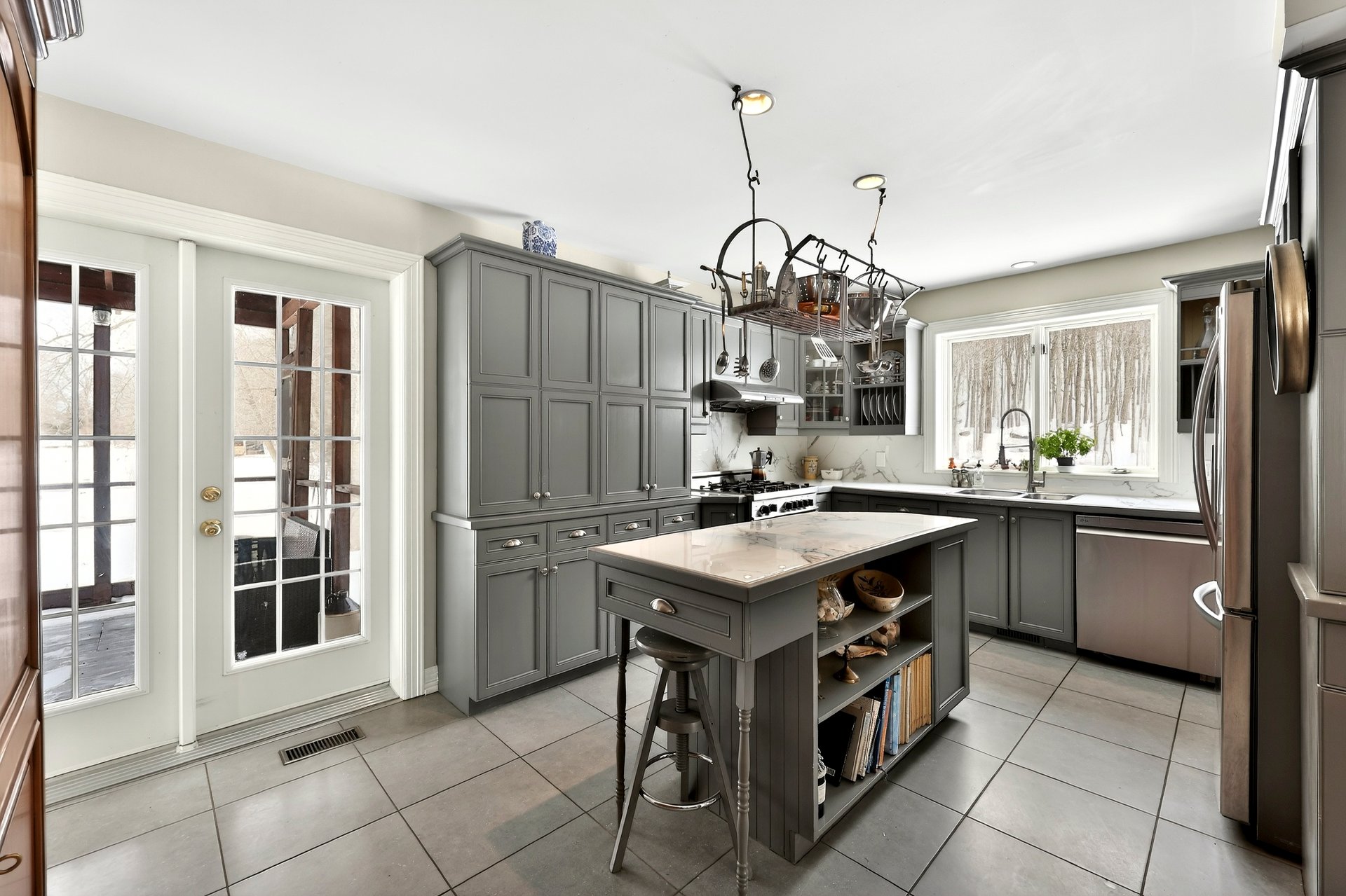 - Système d'alarme, aspirateur central et acc., lave-vaisselle, hotte, réfrigérateur, stores, pôles et rideaux