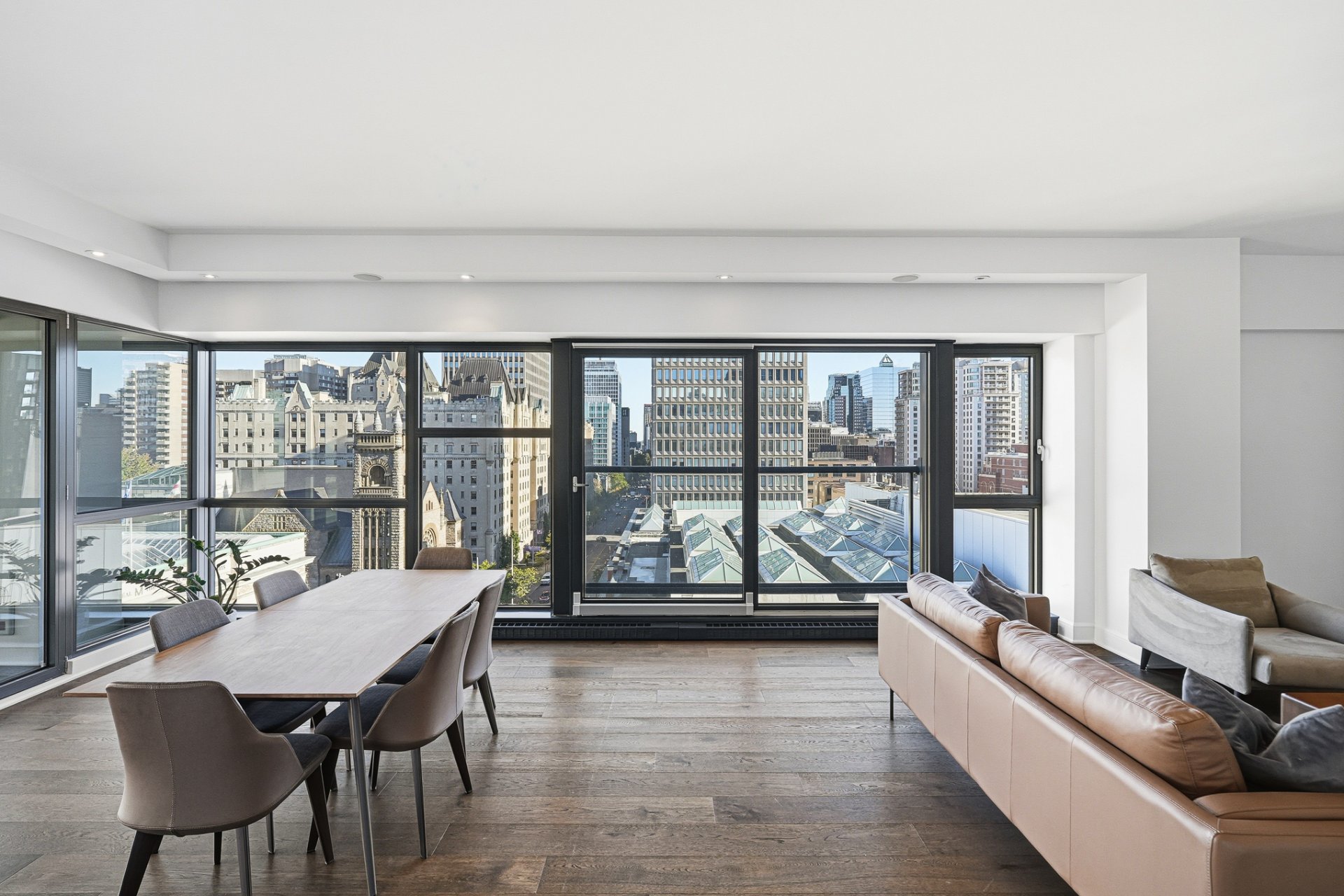 Plafonds de 10 pieds dans les résidences avec fenestrations plancher-plafond offrant une luminosité et vues exceptionnelles.