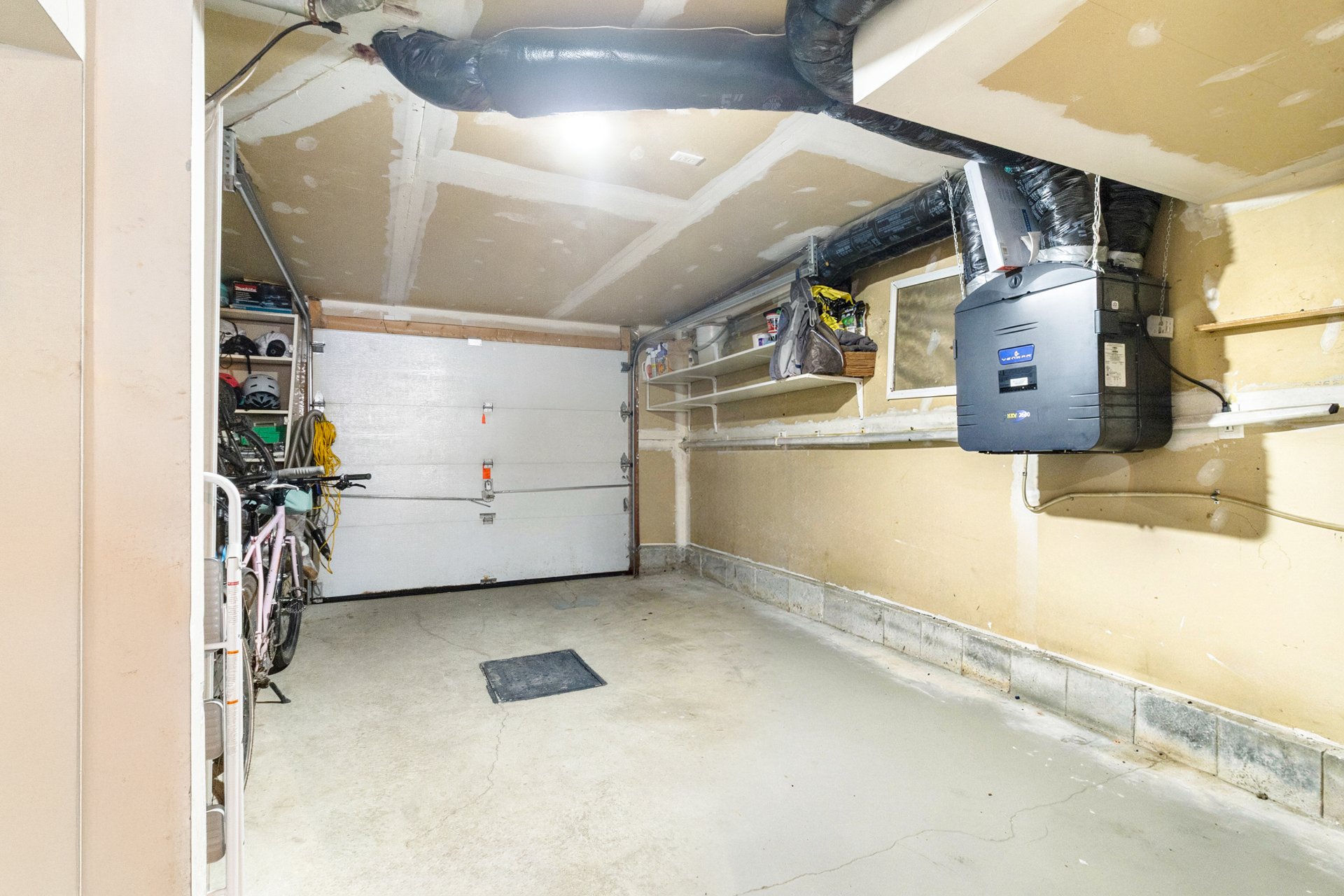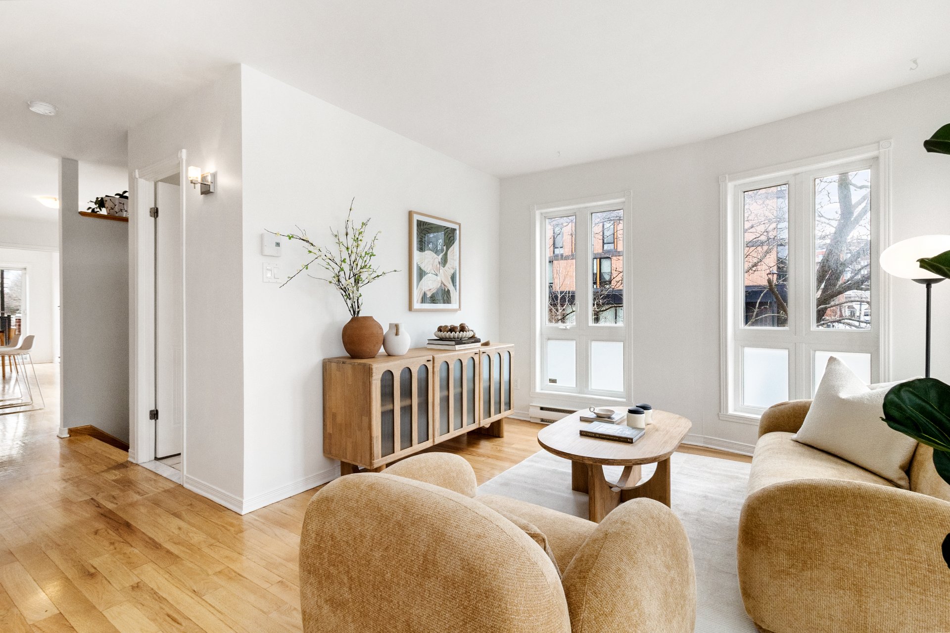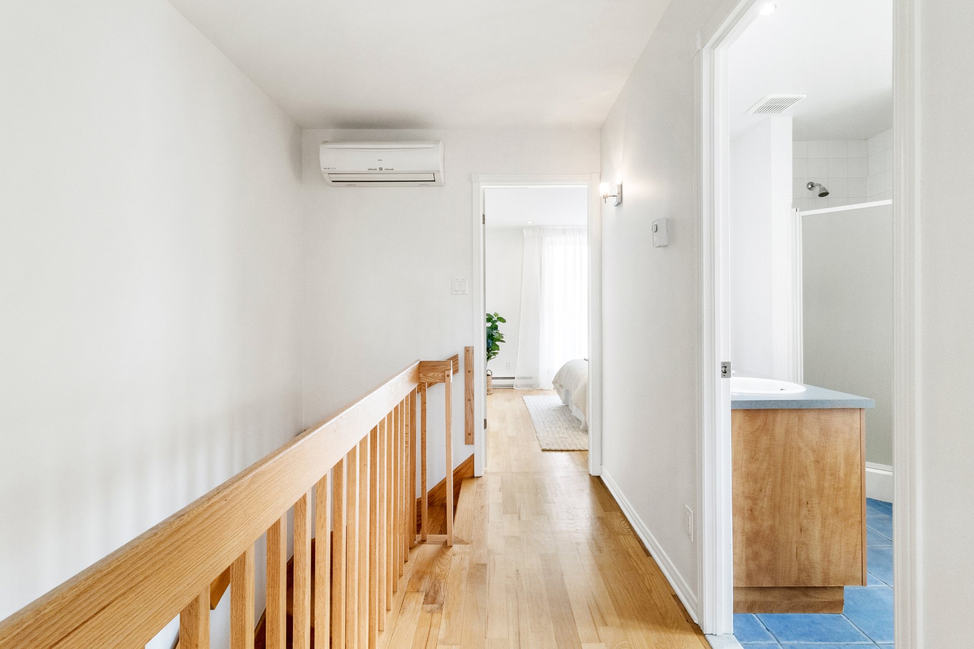On y retrouve un salon spacieux, une salle à manger ouverte sur la terrasse et la cour privée, deux chambres à coucher, dont la chambre principale avec terrasse adjacente, une salle de bains, une salle d'eau, un sous-sol aménagé polyvalent, un garage intégré ainsi qu'un climatiseur mural.