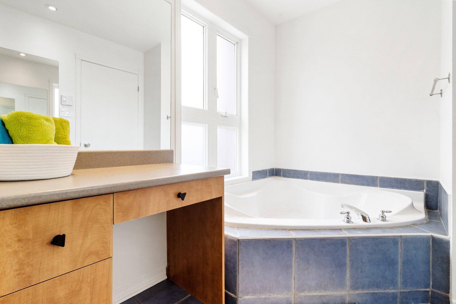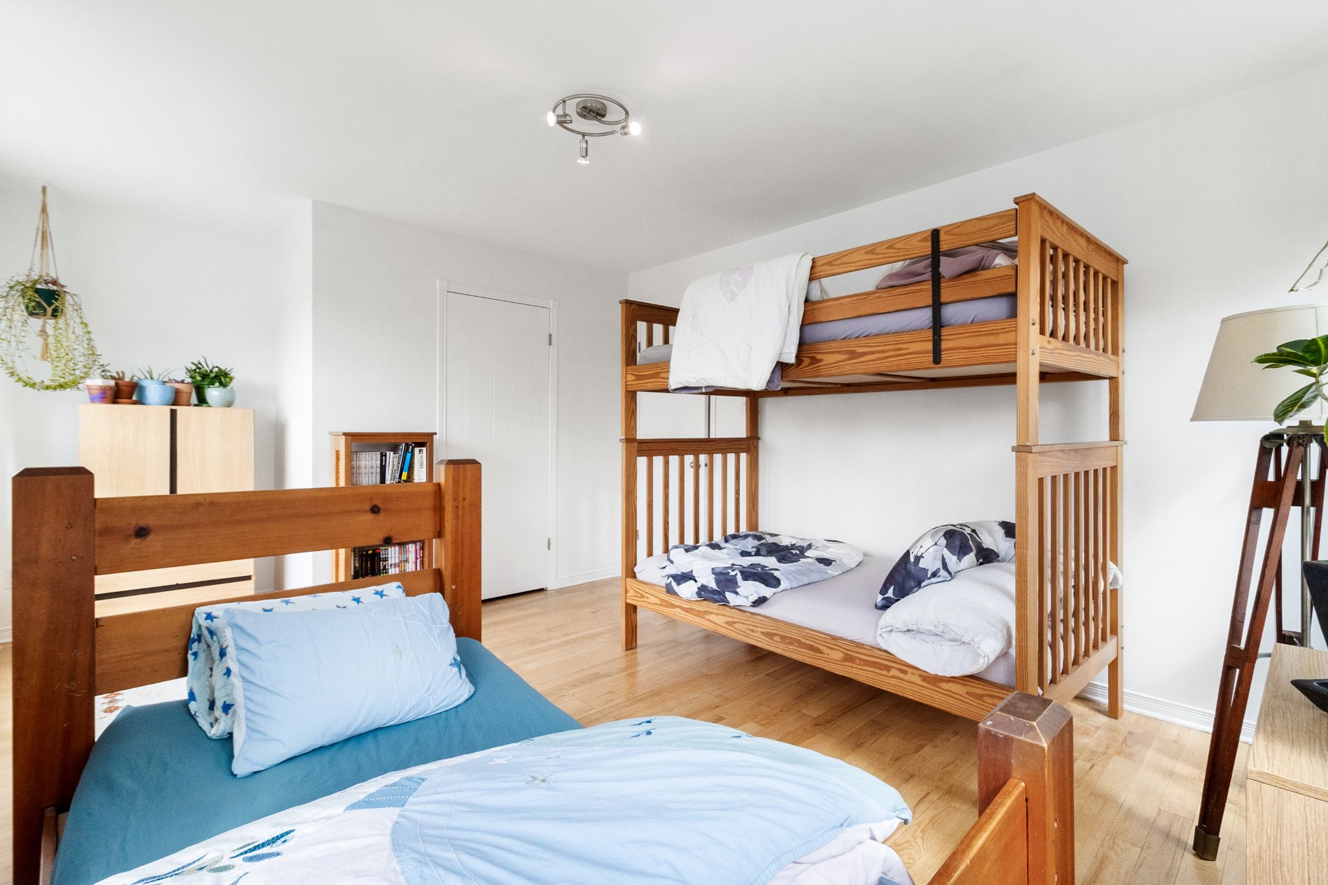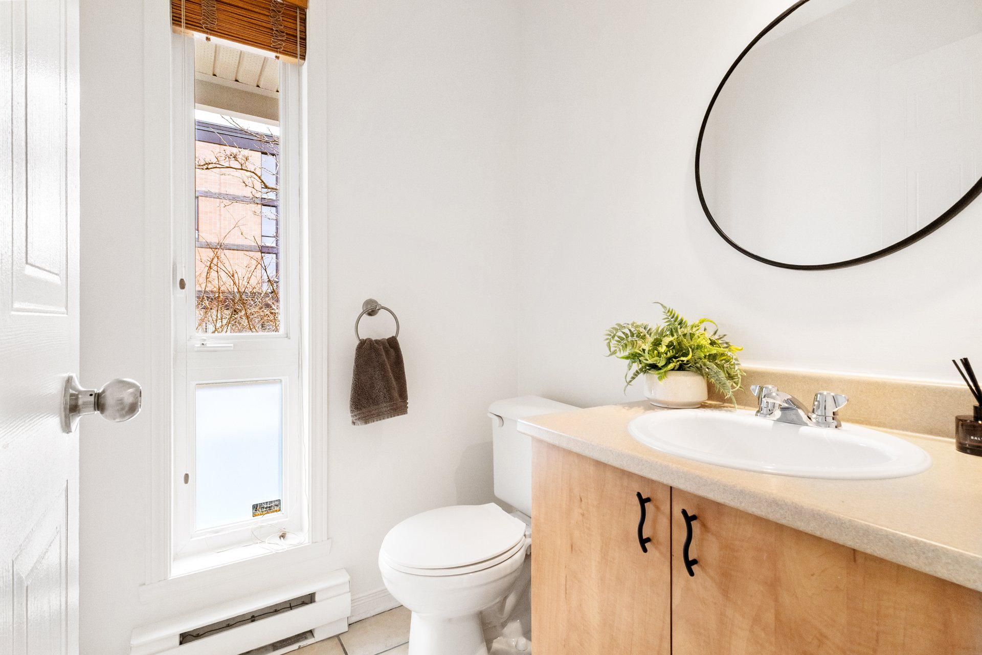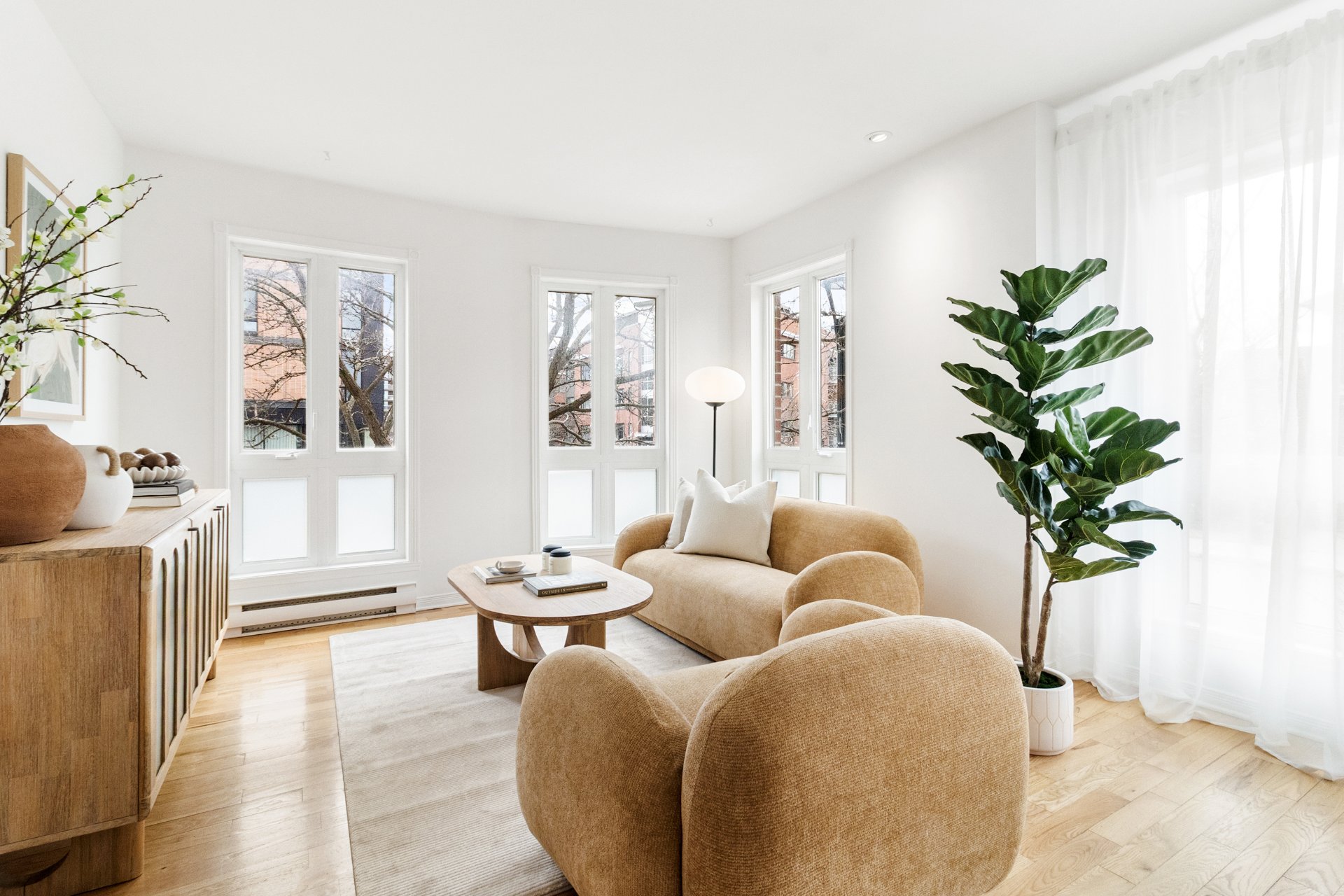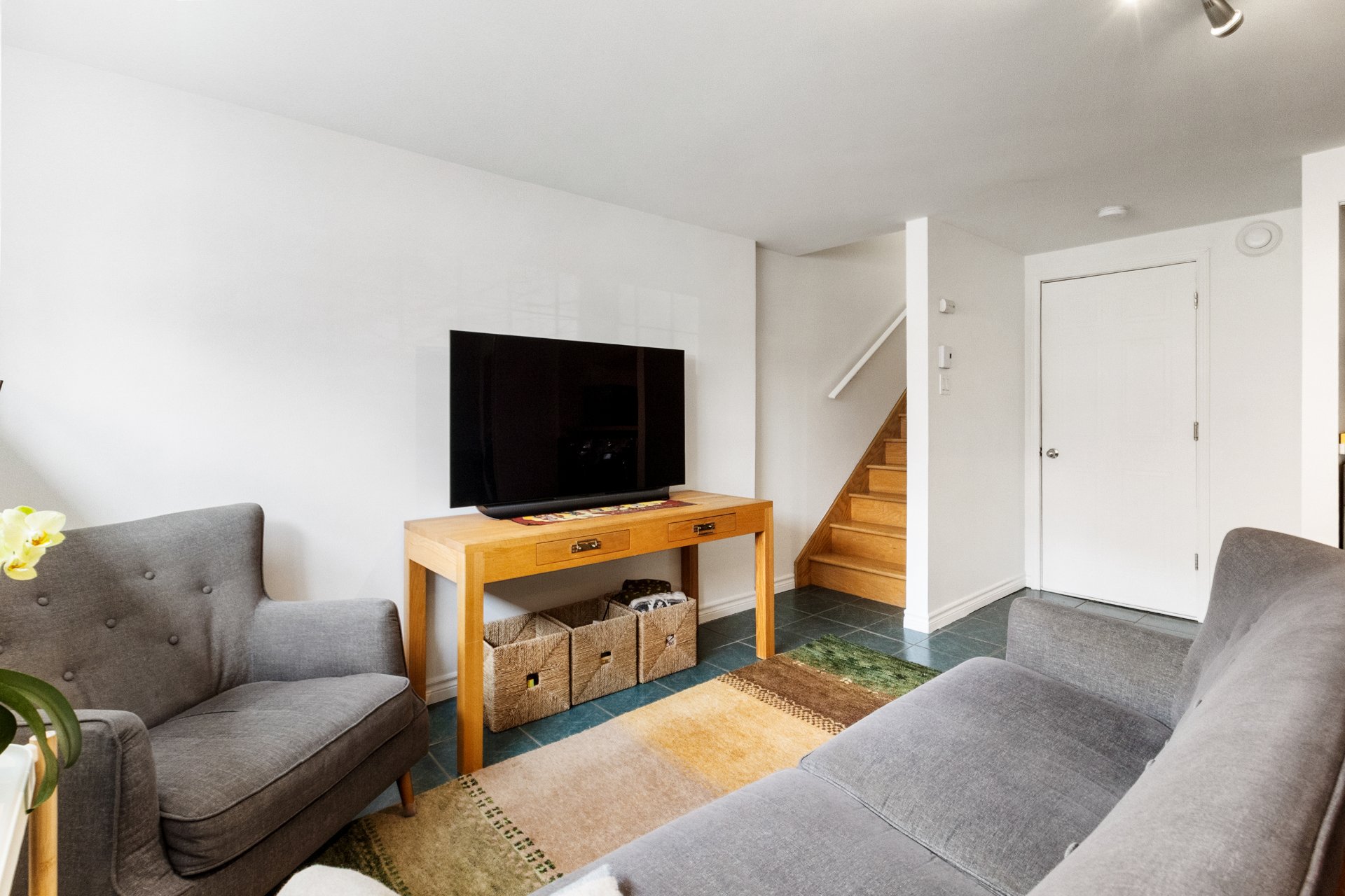 On y retrouve un salon spacieux, une salle à manger ouverte sur la terrasse et la cour privée, deux chambres à coucher, dont la chambre principale avec terrasse adjacente, une salle de bains, une salle d'eau, un sous-sol aménagé polyvalent, un garage intégré ainsi qu'un climatiseur mural.