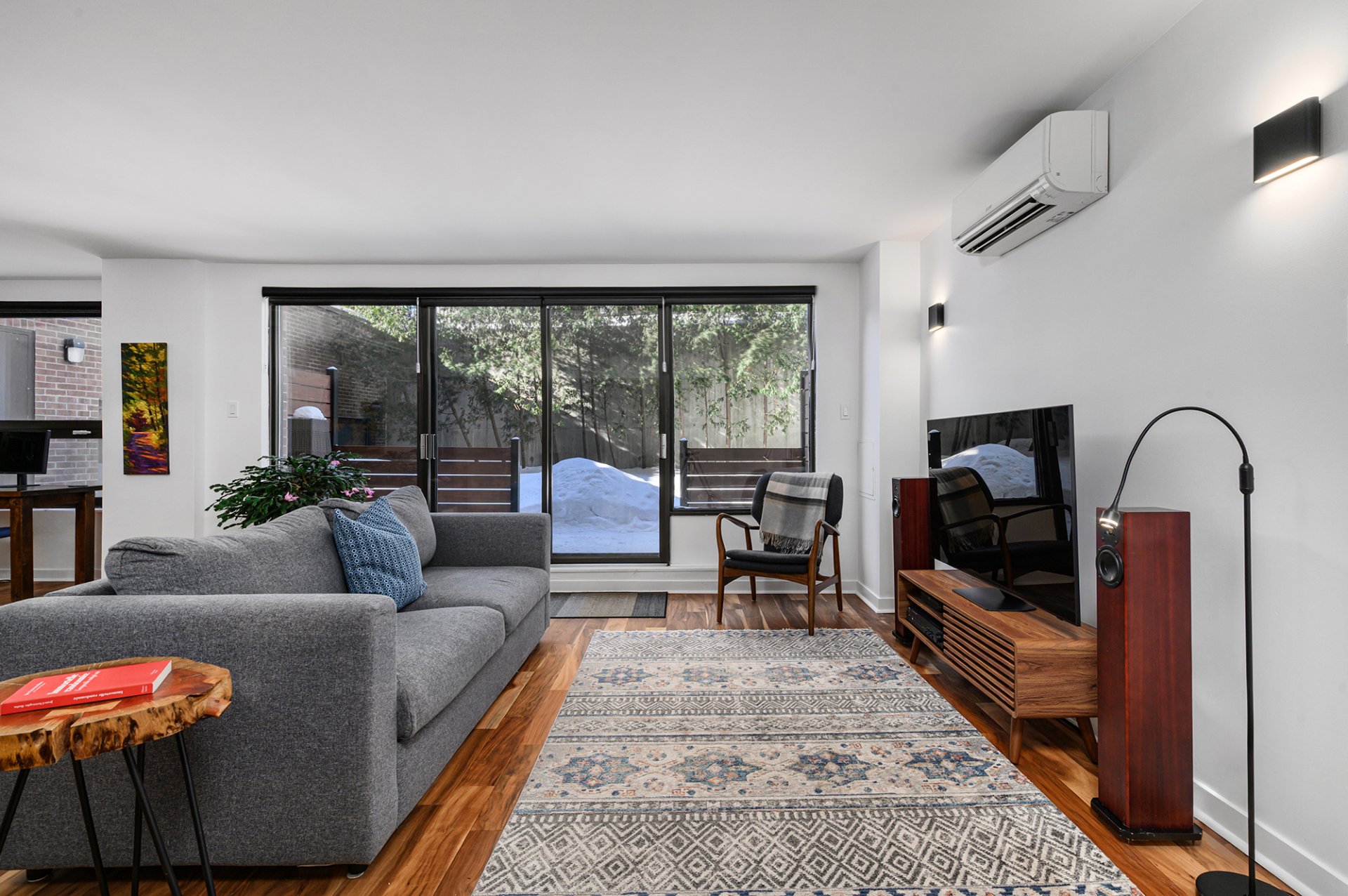 Accès facile au patio extérieur. Cette zone est entretenue par le surintendant puisque elle fait partie des aires commune mais pratiquement privée, ignorée par les autres résidents.