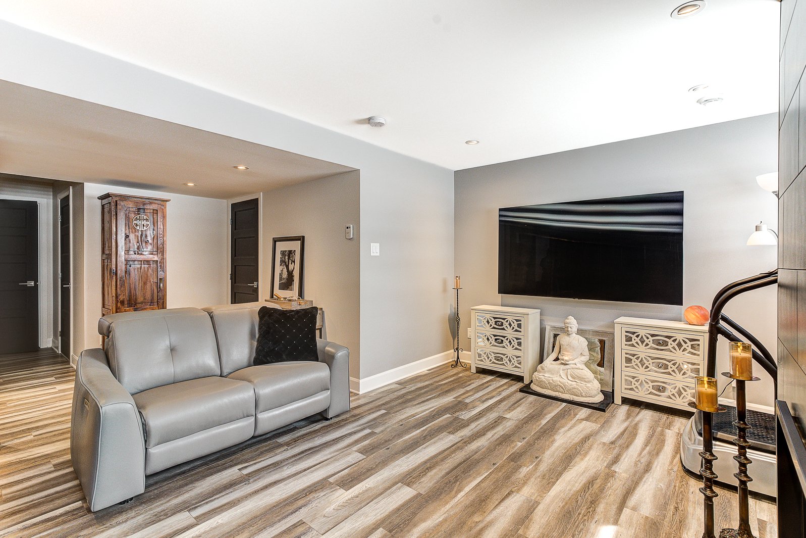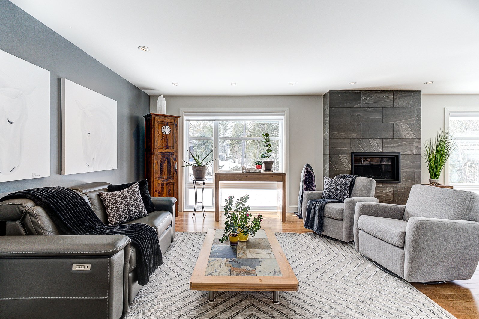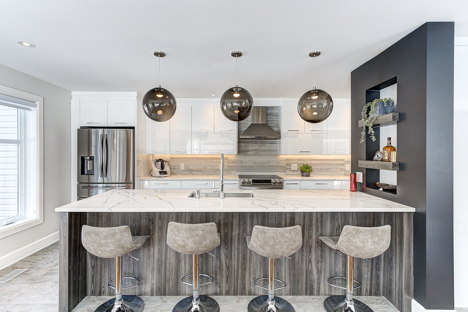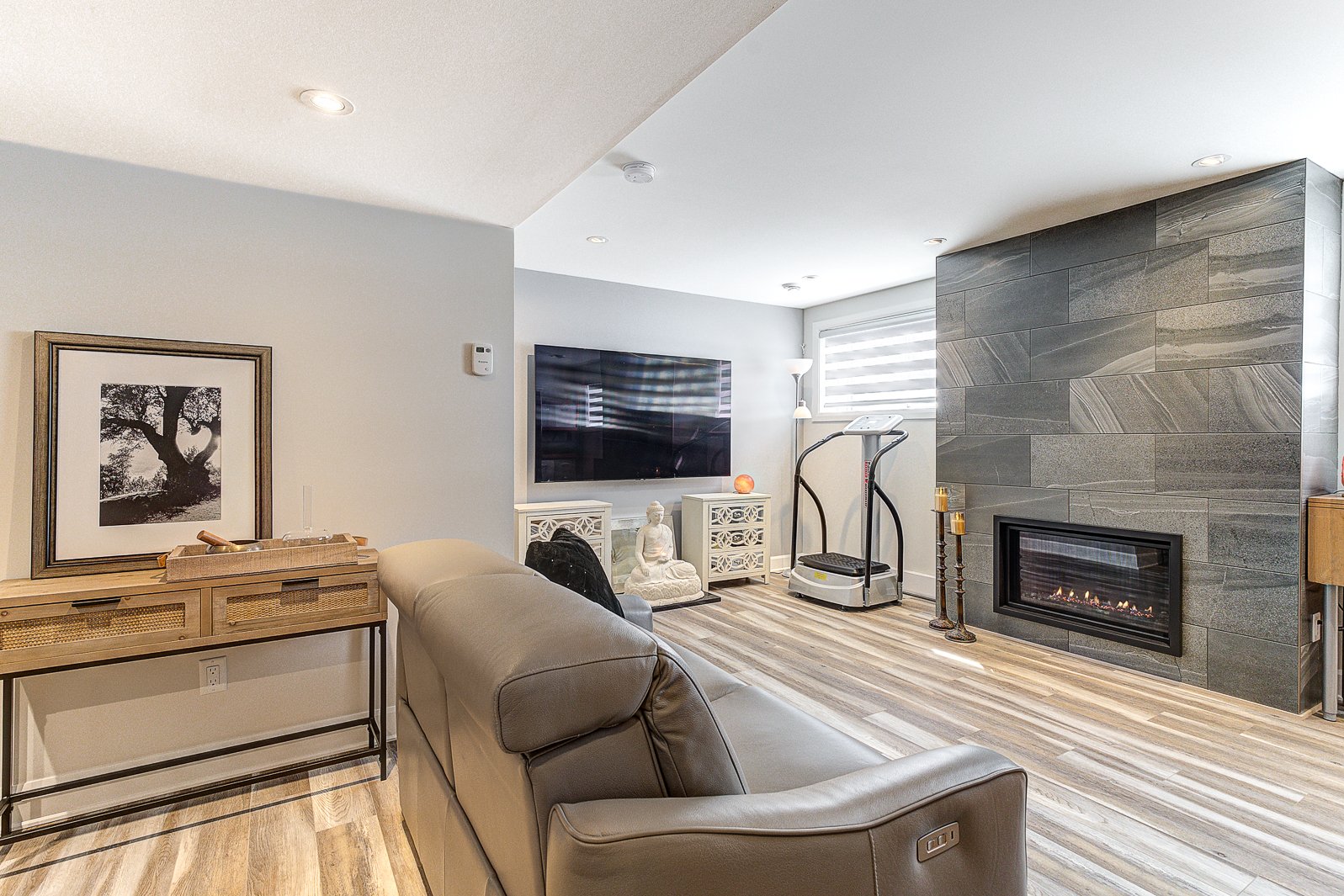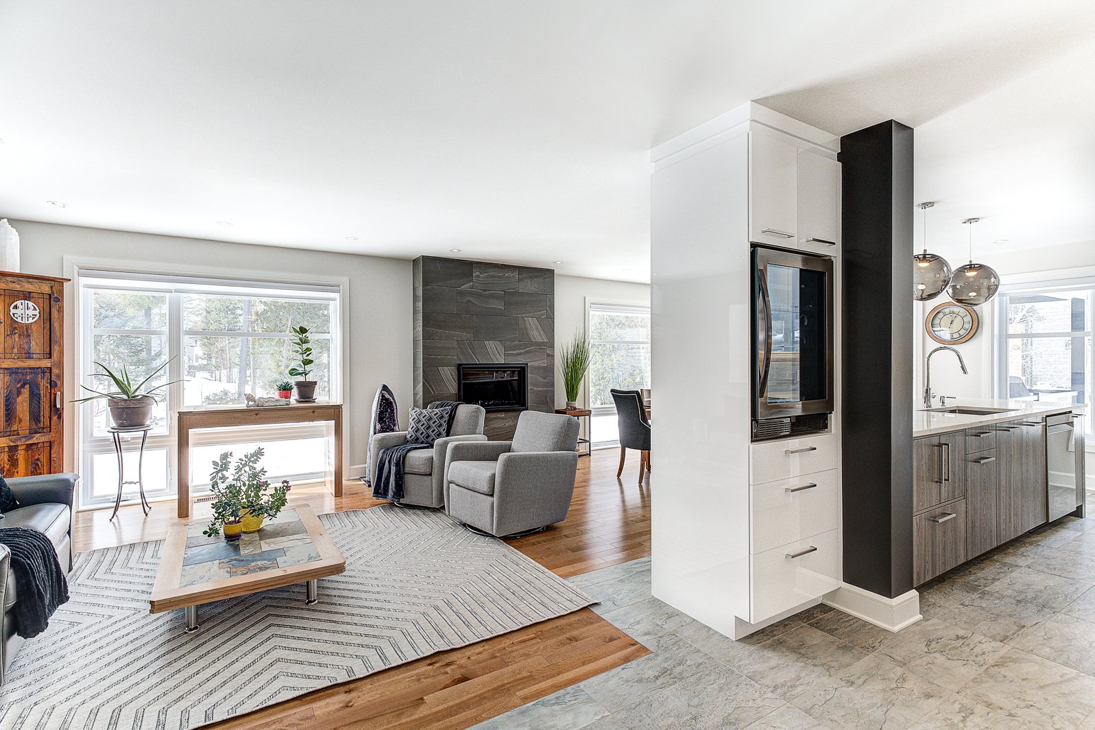 La cuisine spacieuse, équipée de comptoirs en quartz et d'armoires atteignant le plafond, est un véritable chef-d'oeuvre. Un grand îlot central et un garde-manger Walk-In bien aménagé ajoutent une touche de luxe et de praticité. La salle à manger et le salon à aire ouverte, avec foyer au gaz, l'endroit est parfaits pour recevoir famille et amis dans une ambiance conviviale.