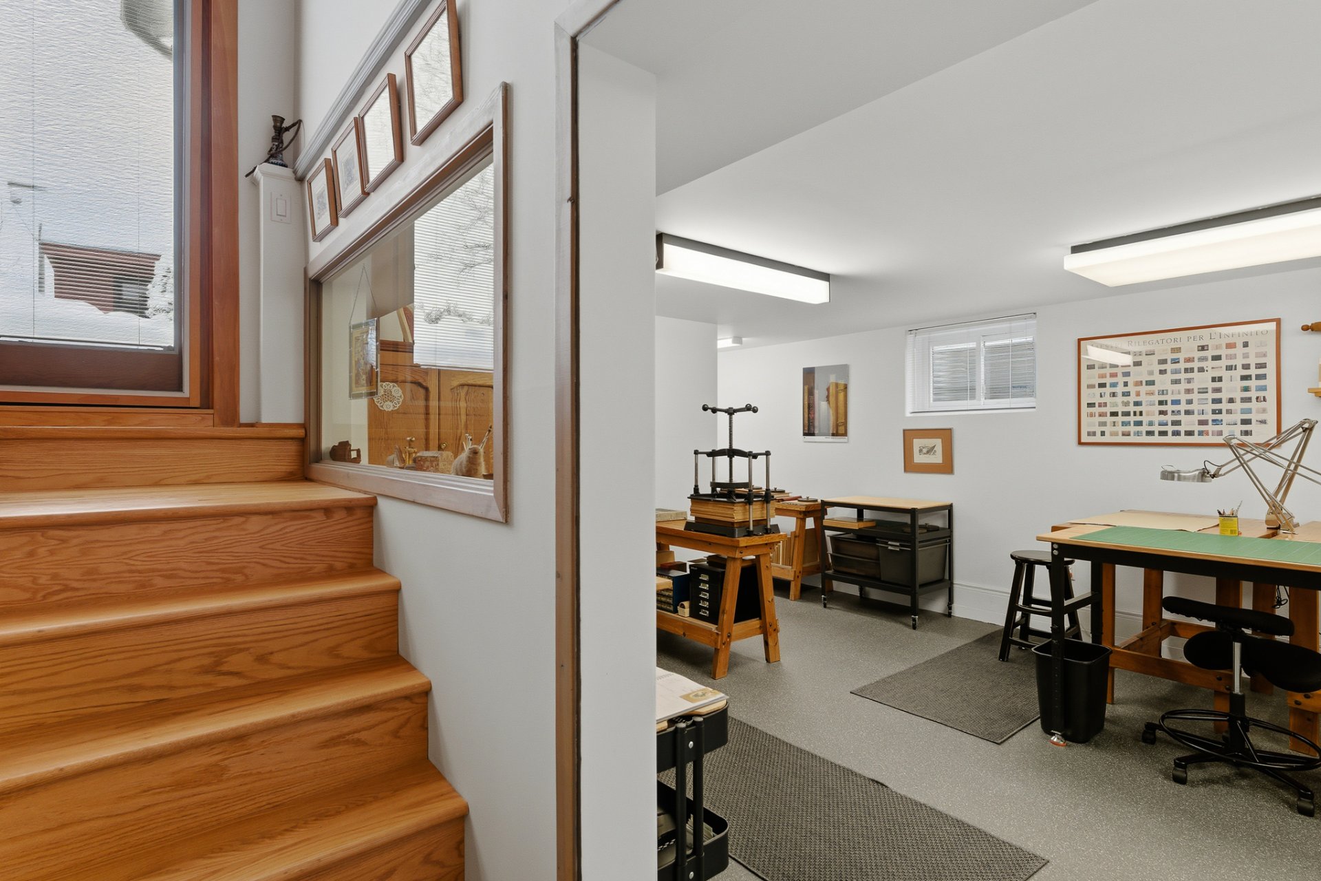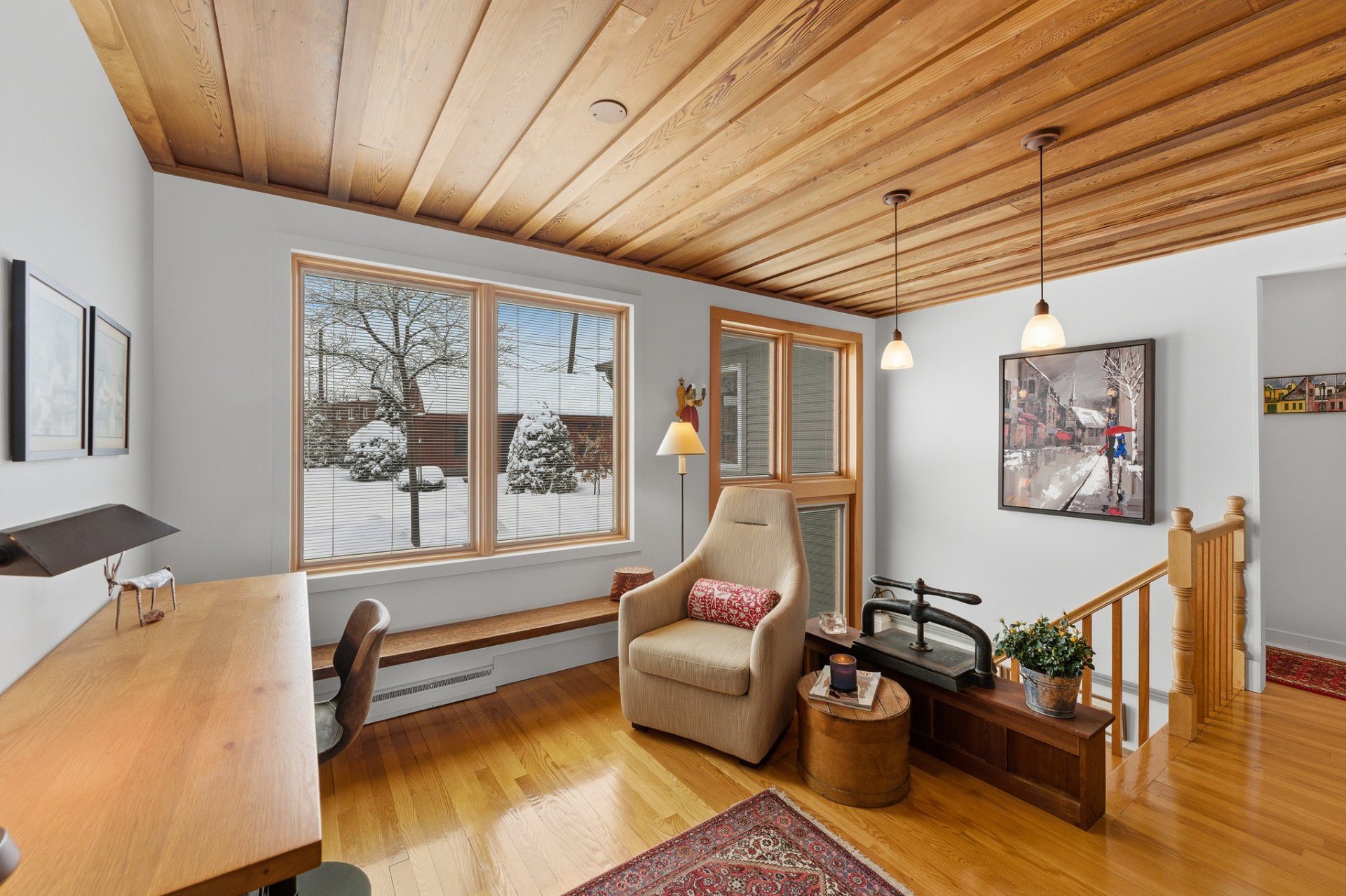 . une salle familiale ou espace bureau bénéficiant d'une fenestration généreuse,