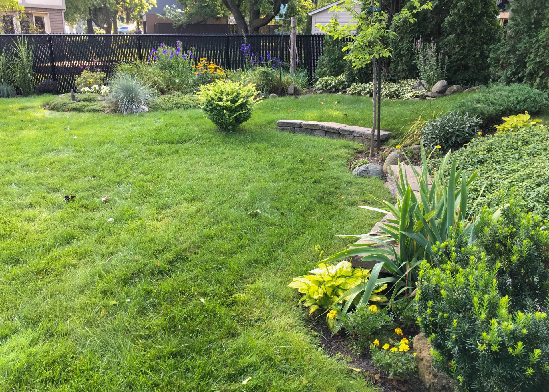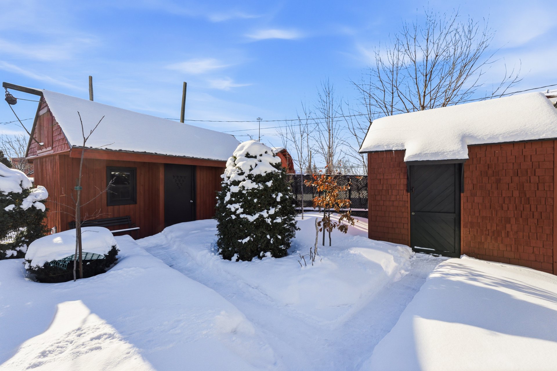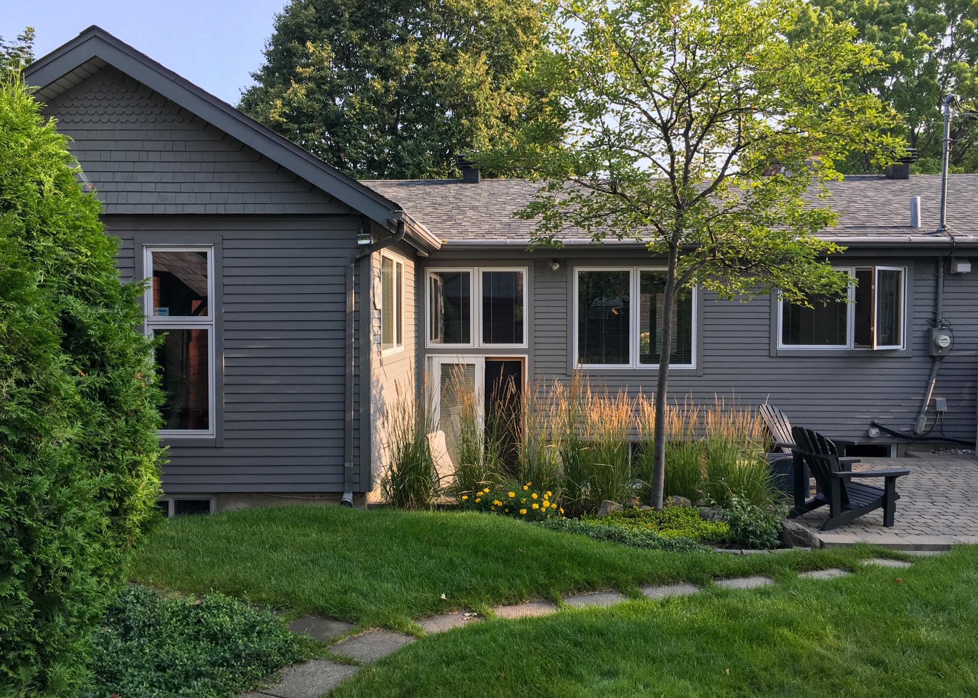 - Une cour de presque 7 000 pc à l'orientation idéale (plein sud), intime, joliment paysagée et équipée de deux grands et coquets abris de jardin, où journées et soirées d'été ne seront que pur bonheur...