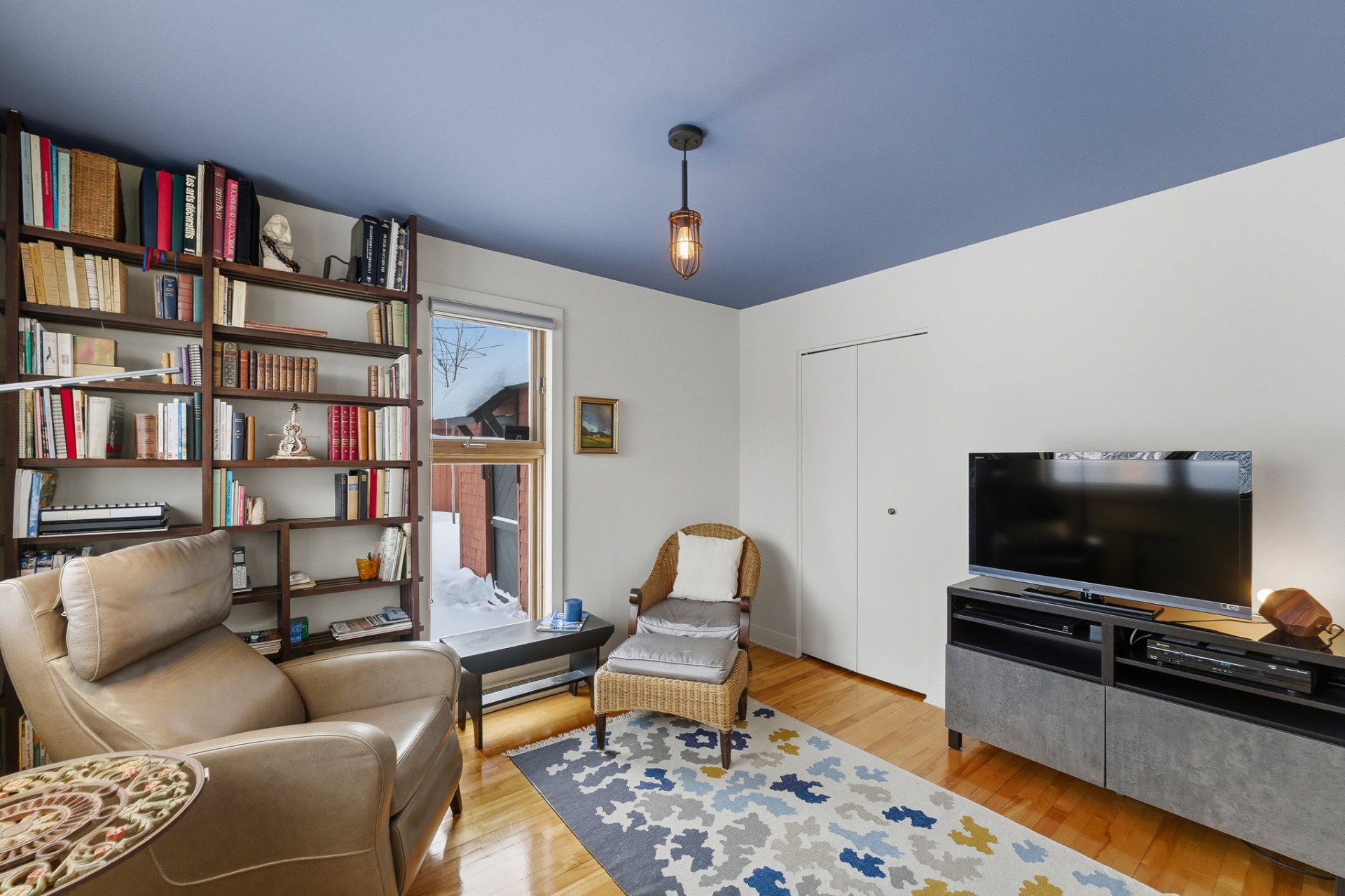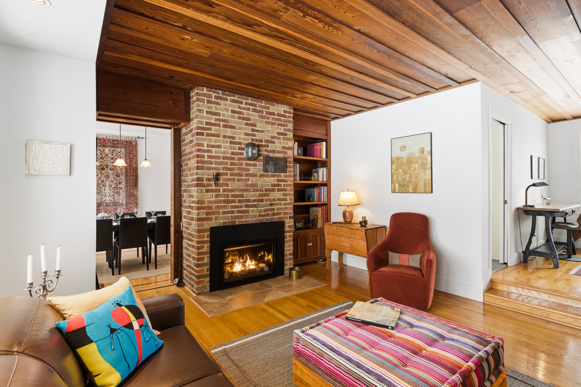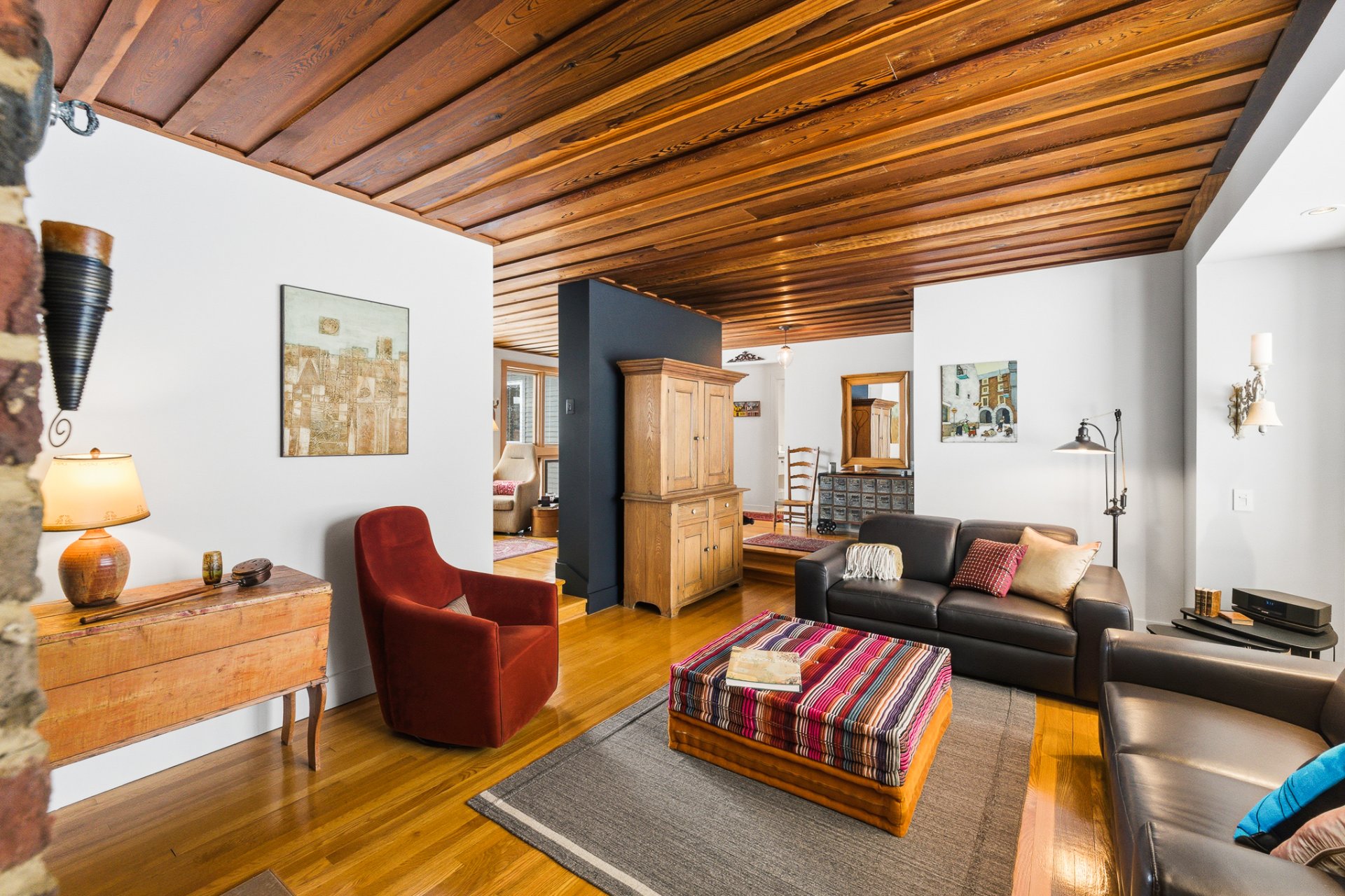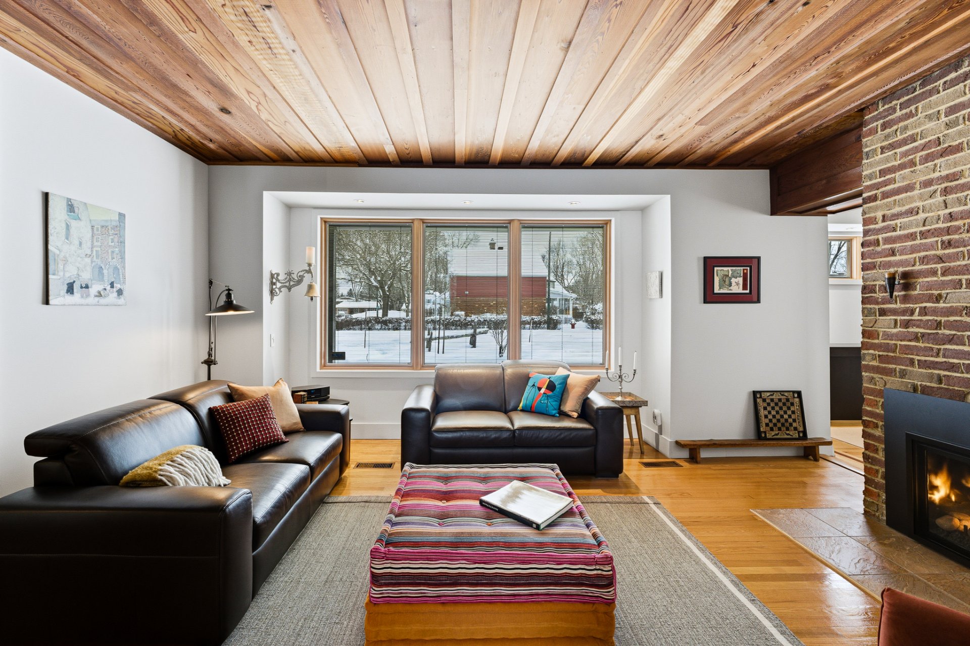 . et un salon à l'ambiance chaleureuse avec ses plafonds en bois de 8'8 de haut et son foyer au gaz, qui abritera de nombreux souvenirs de joies et partages...