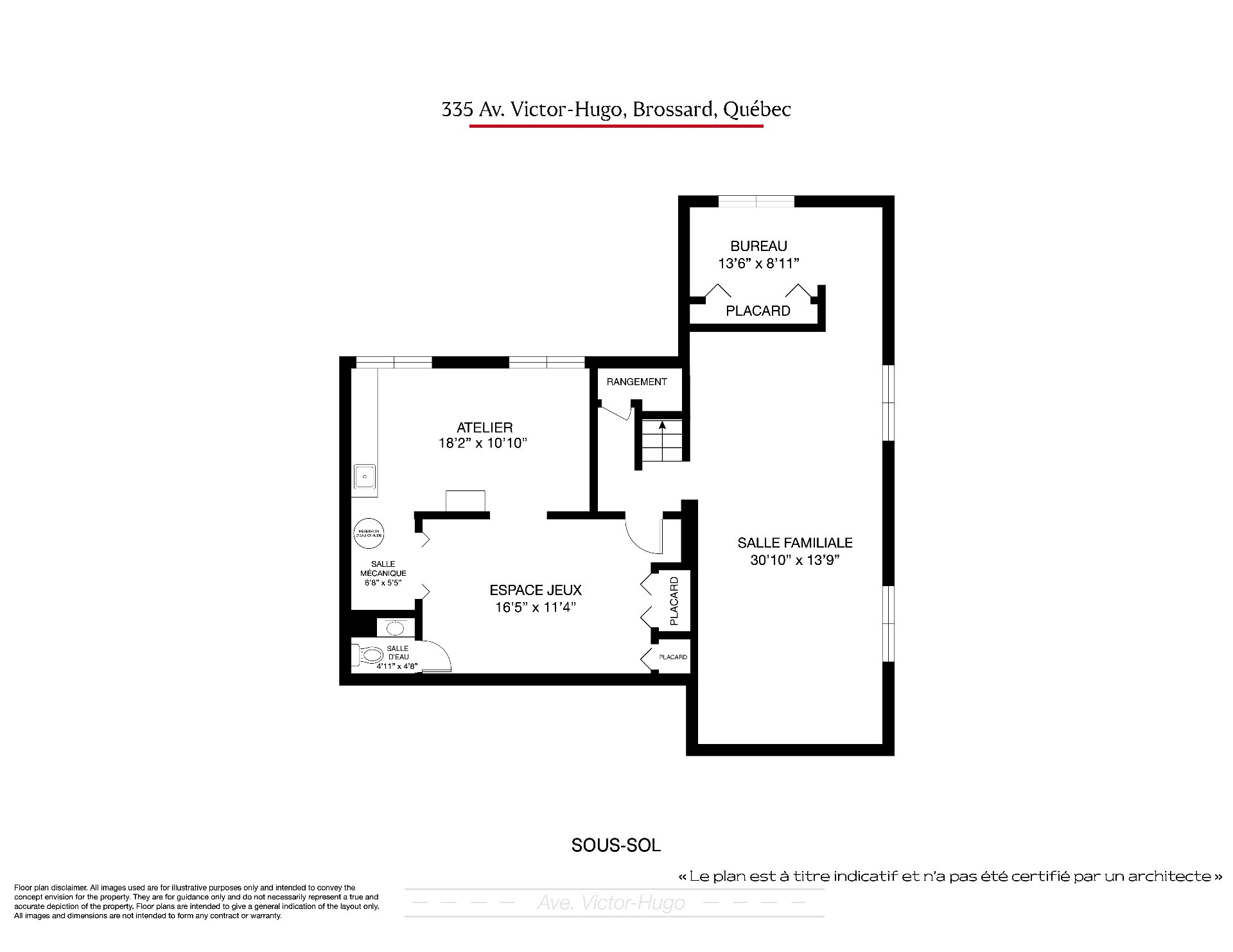 - Un immense sous-sol de 1 678 pc au plafond de 7'8 de haut, prêt à être aménagé selon vos besoins : 2 autres chambres, salle de bain, salle familiale, salle de gym, etc.