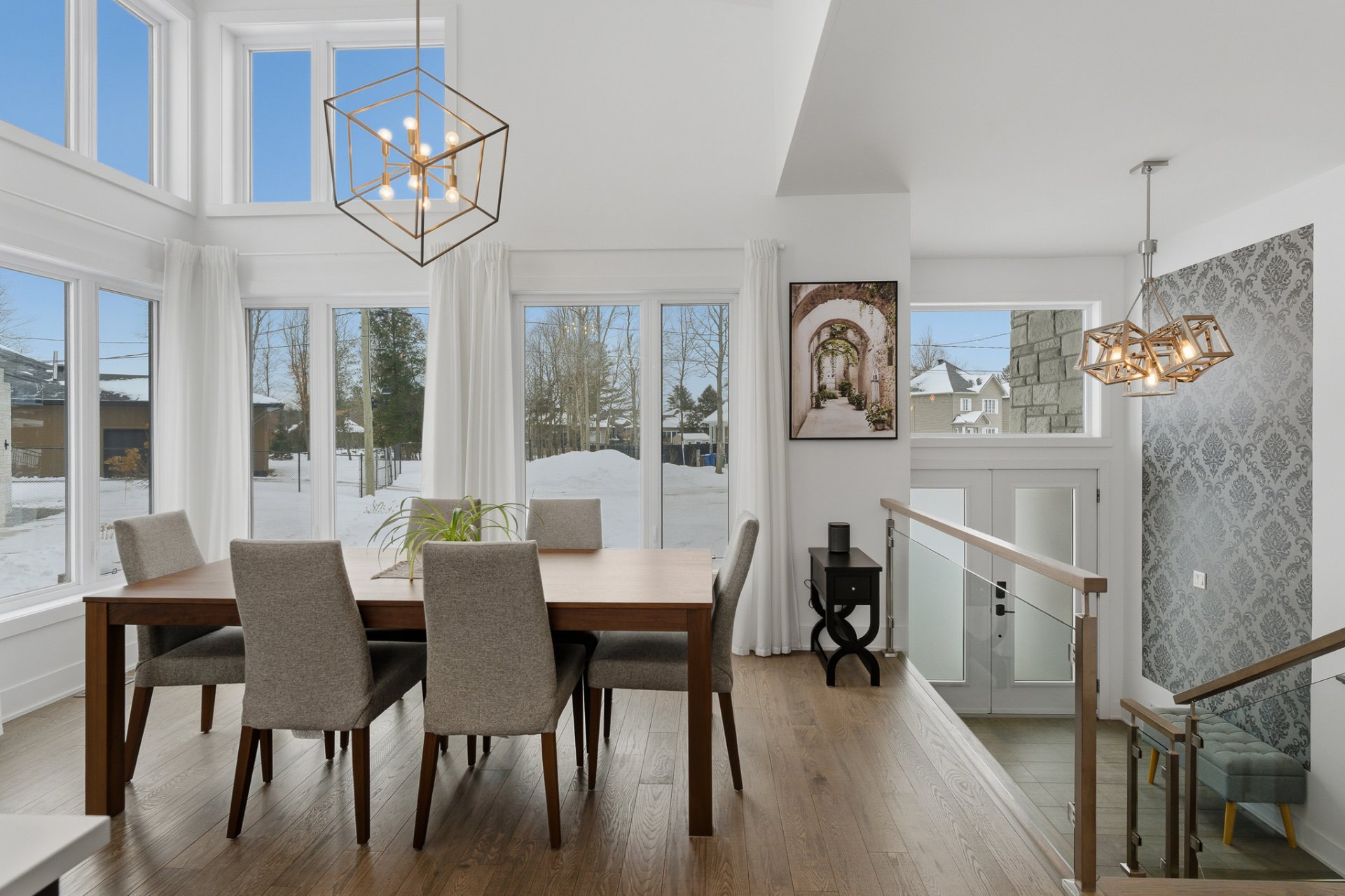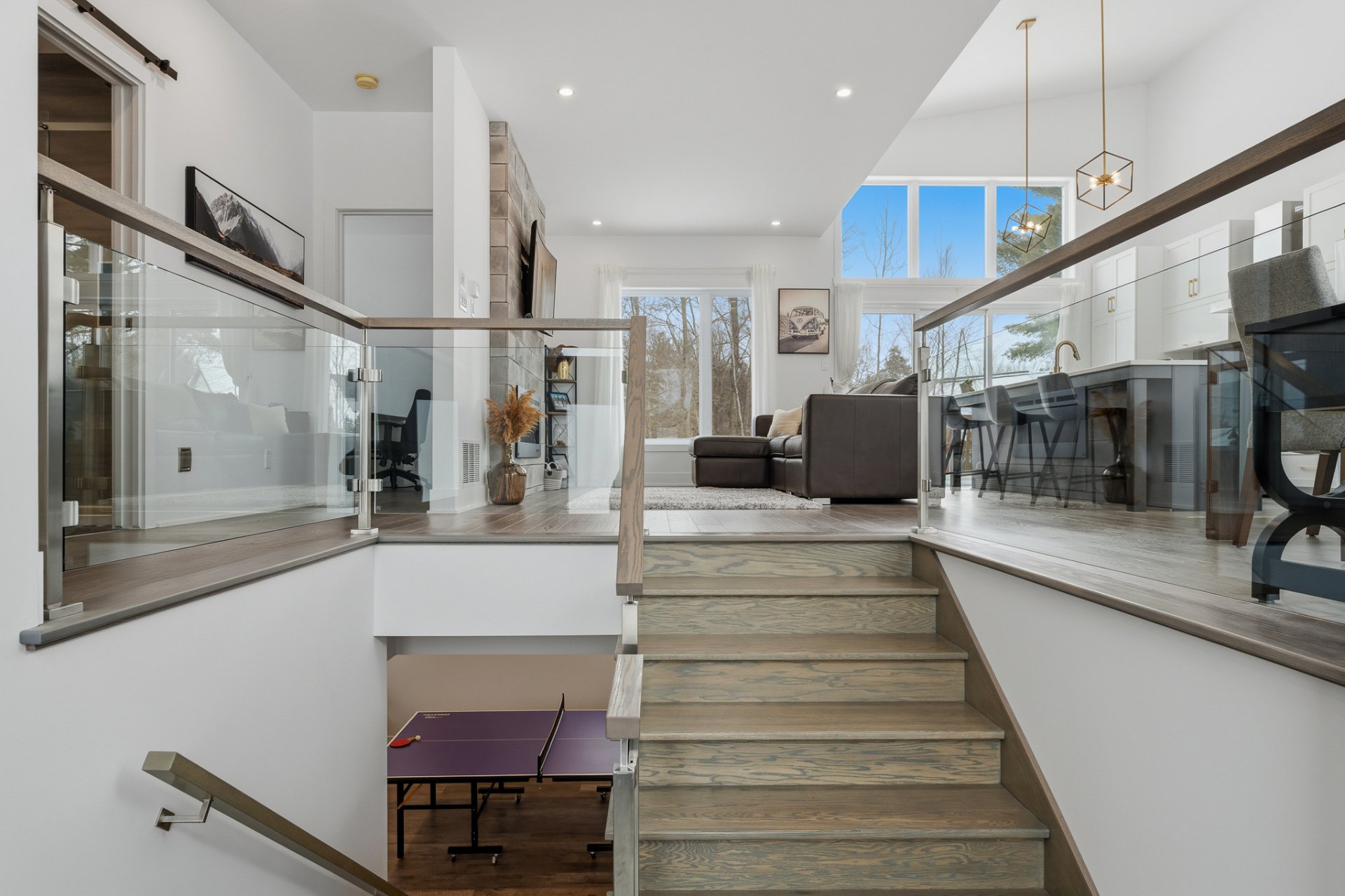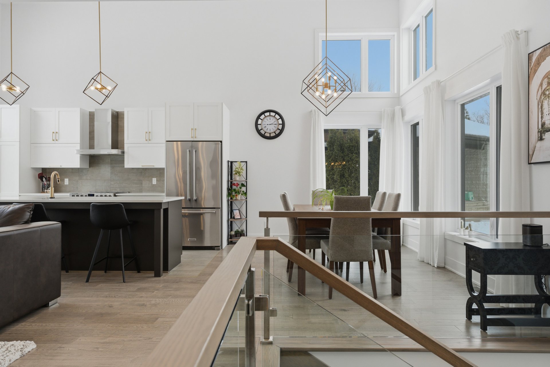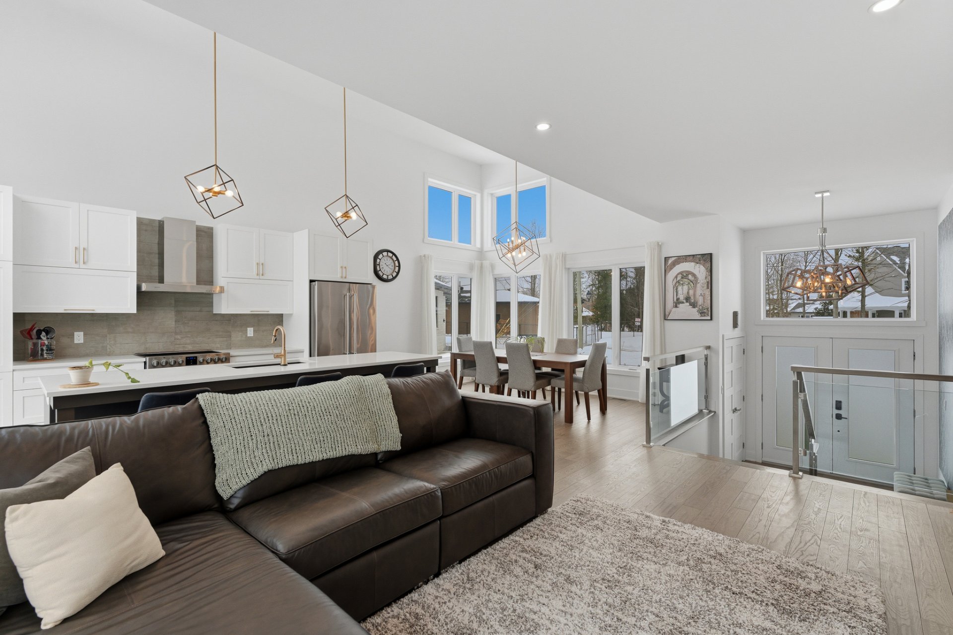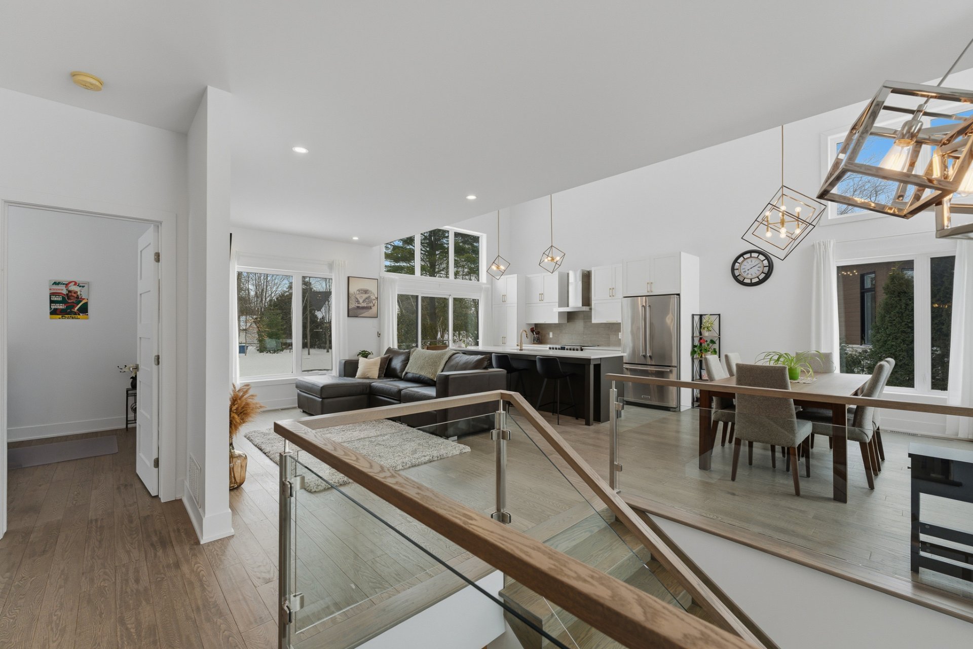 Le 2 rue des Colibris vous accueille dans un vaste hall d'entrée agrémenté de superbes rampes en verre. Dès l'entrée, vous serez charmé par la luminosité exceptionnelle que procure la propriété grâce à ses généreuses fenêtres et sa porte patio triple. Le plafond cathédrale accentue la sensation d'espace et crée une atmosphère à la fois élégante et invitante.