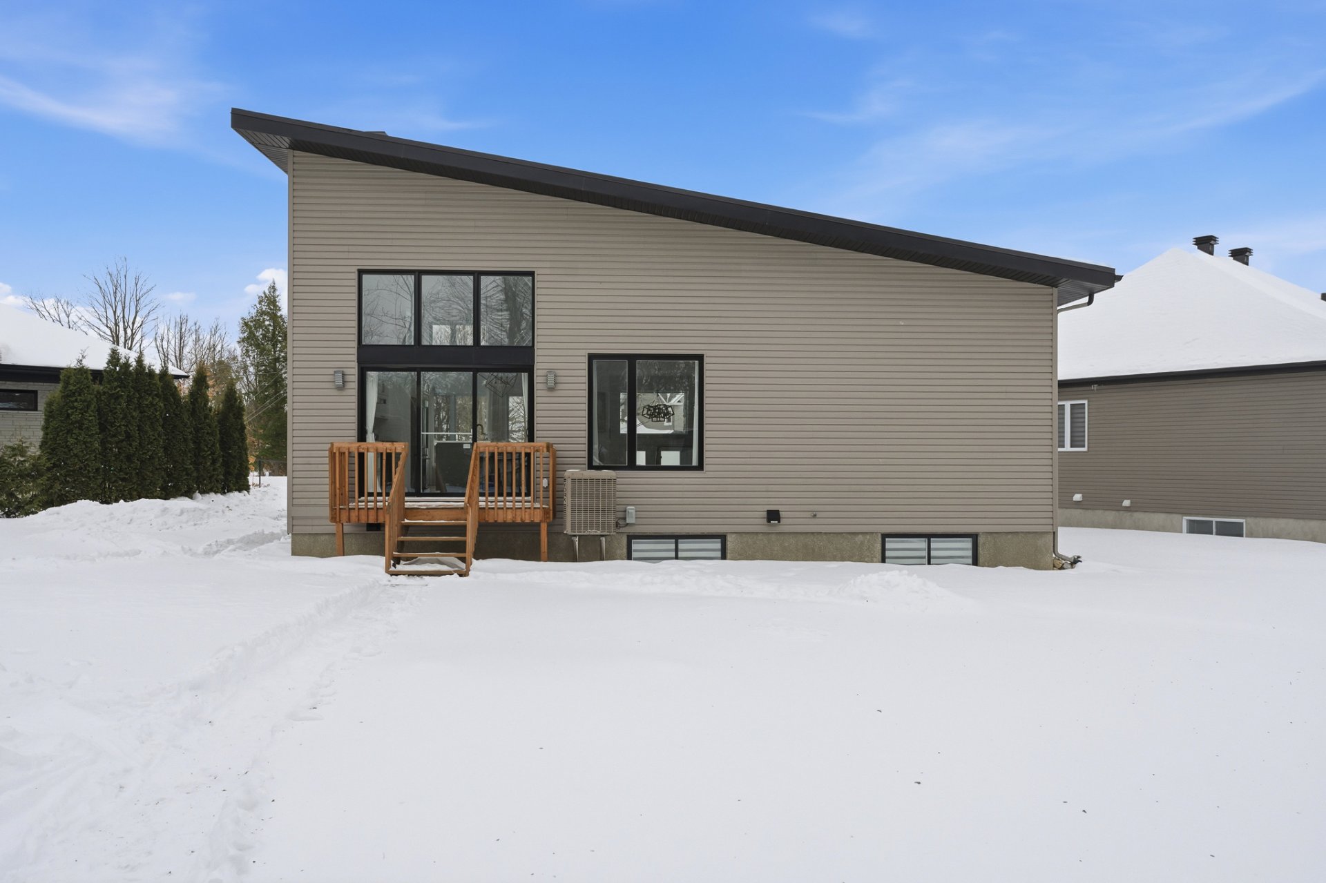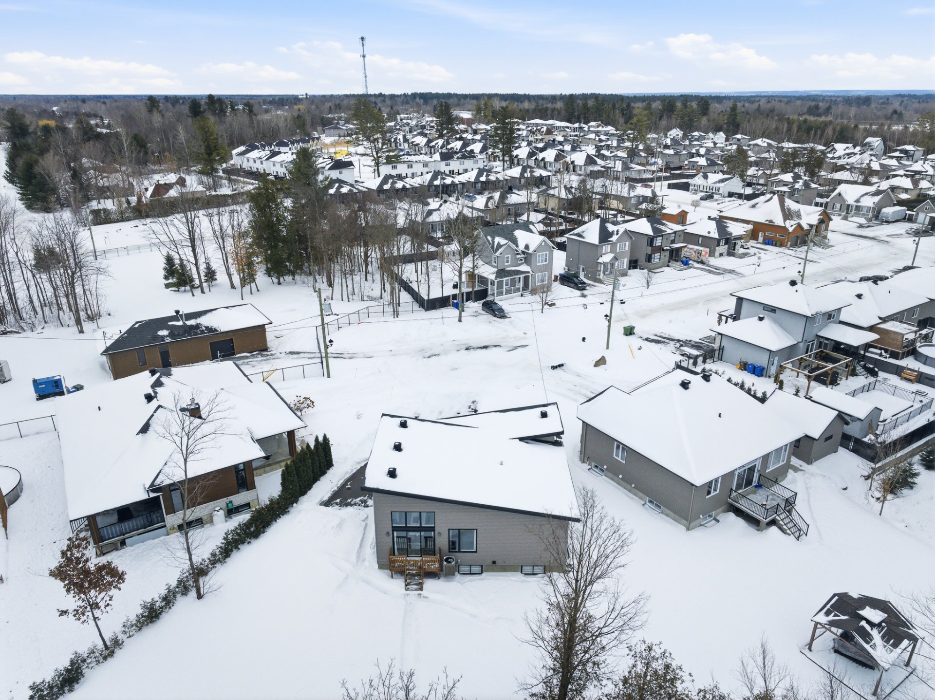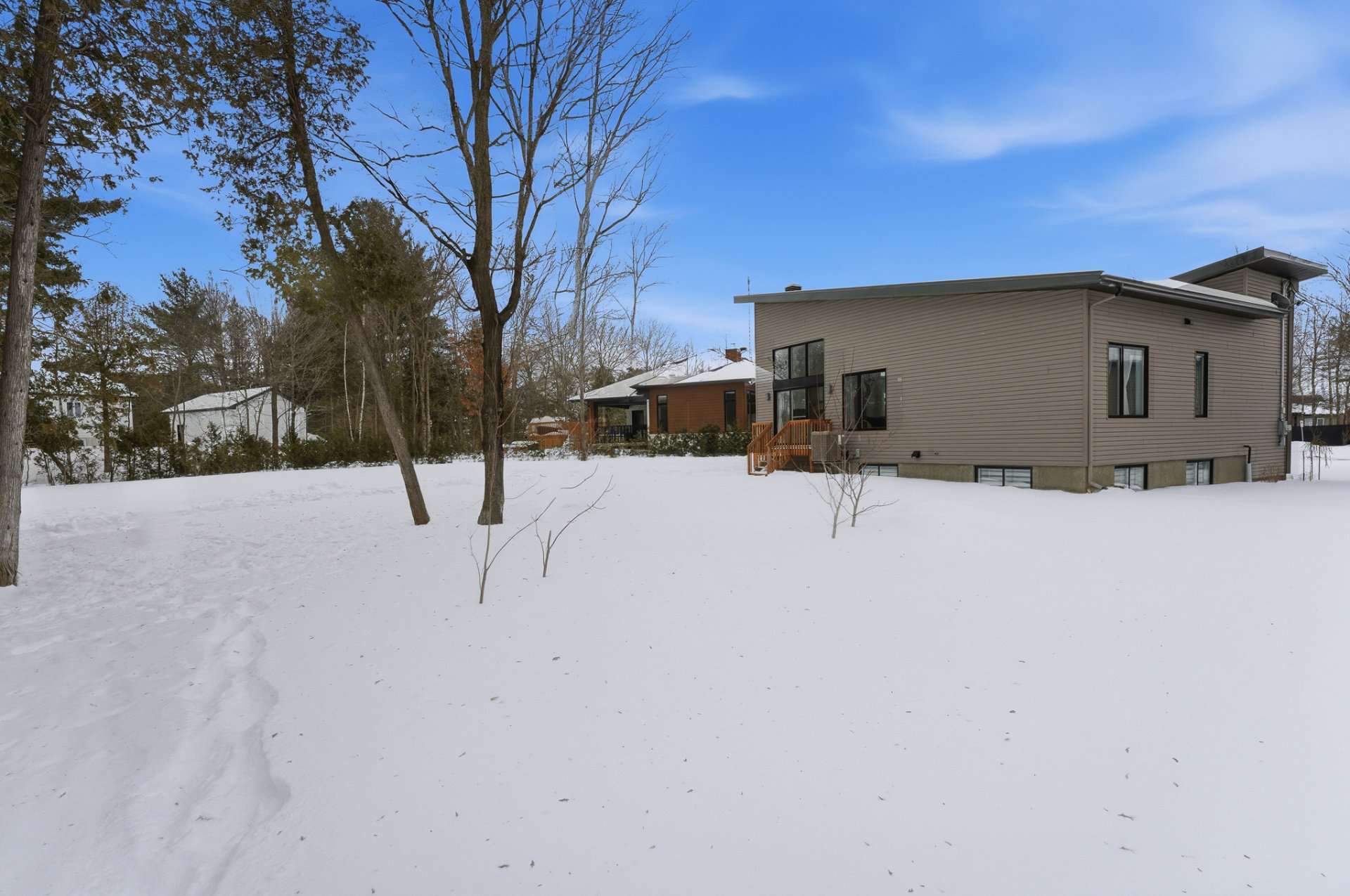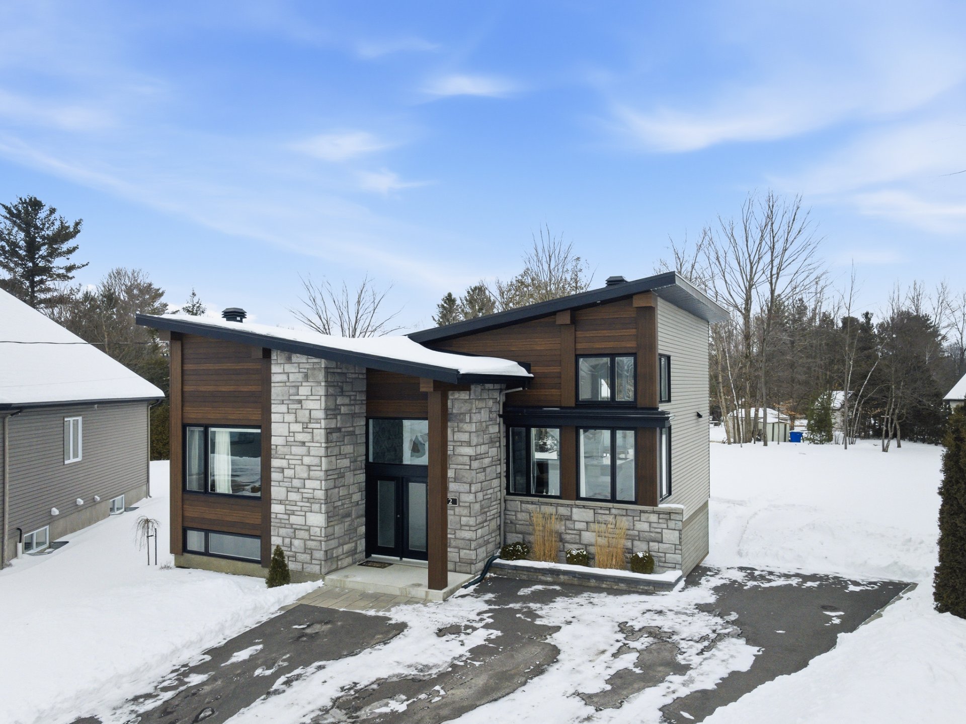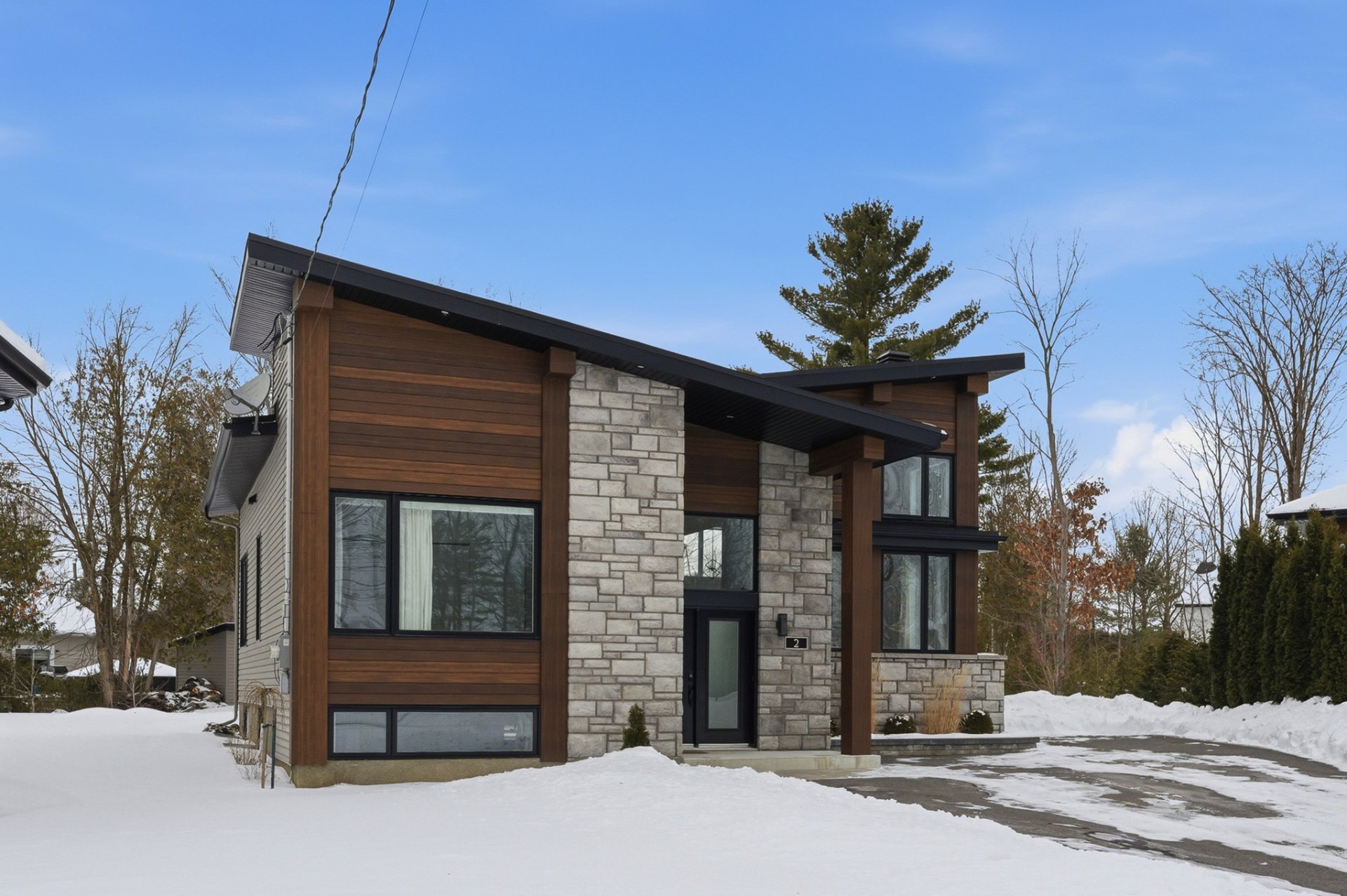 Lumineuse propriété au design distinctif, située dans un environnement naturel, calme et paisible. Ce véritable clé en main se trouve dans un croissant, sur un remarquable terrain de 13 850 pc. Construction 2018 aux tendances actuelles, offrant un impressionnant plafond cathédrale dans l'aire de vie principale ainsi qu'une fenestration en hauteur créant une superbe sensation de grandeur. La propriété propose 3 chambres à coucher de bonnes dimensions, 2 salles de bains et une vaste salle familiale. Le grand terrain offre un cadre idéal pour imaginer et concrétiser vos projets de vie. Un lieu où il fait bon vivre.