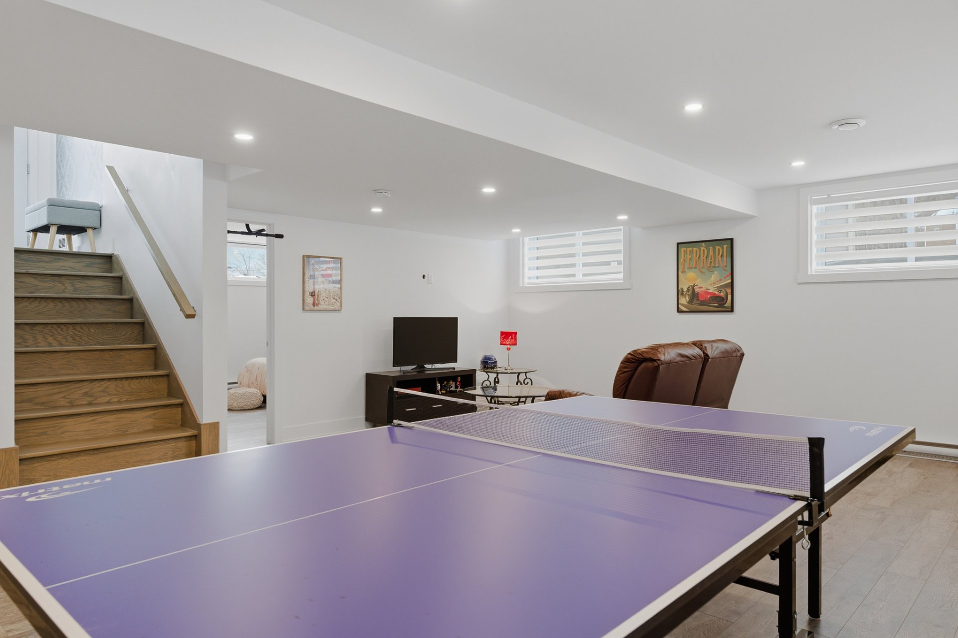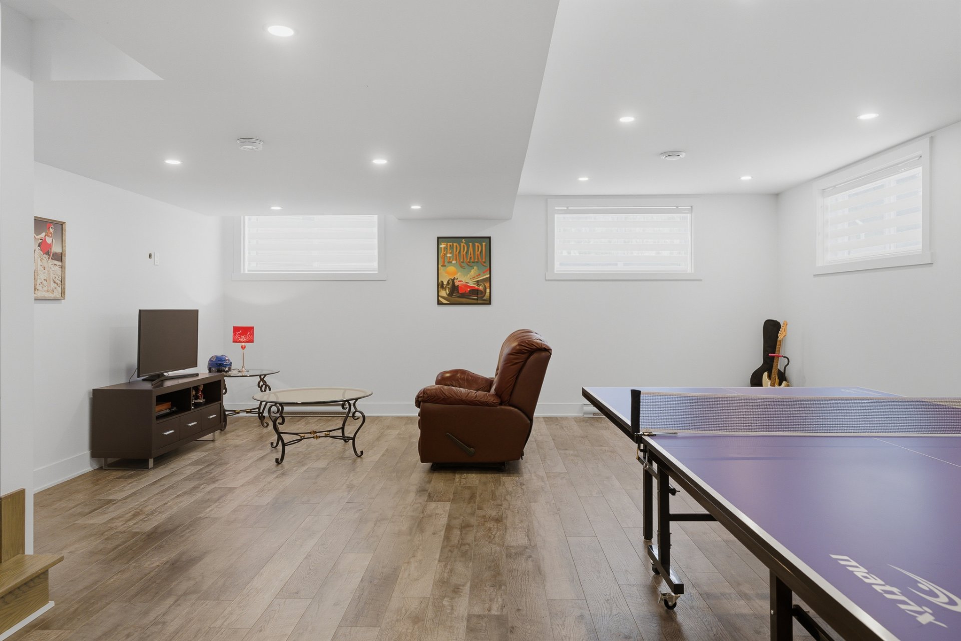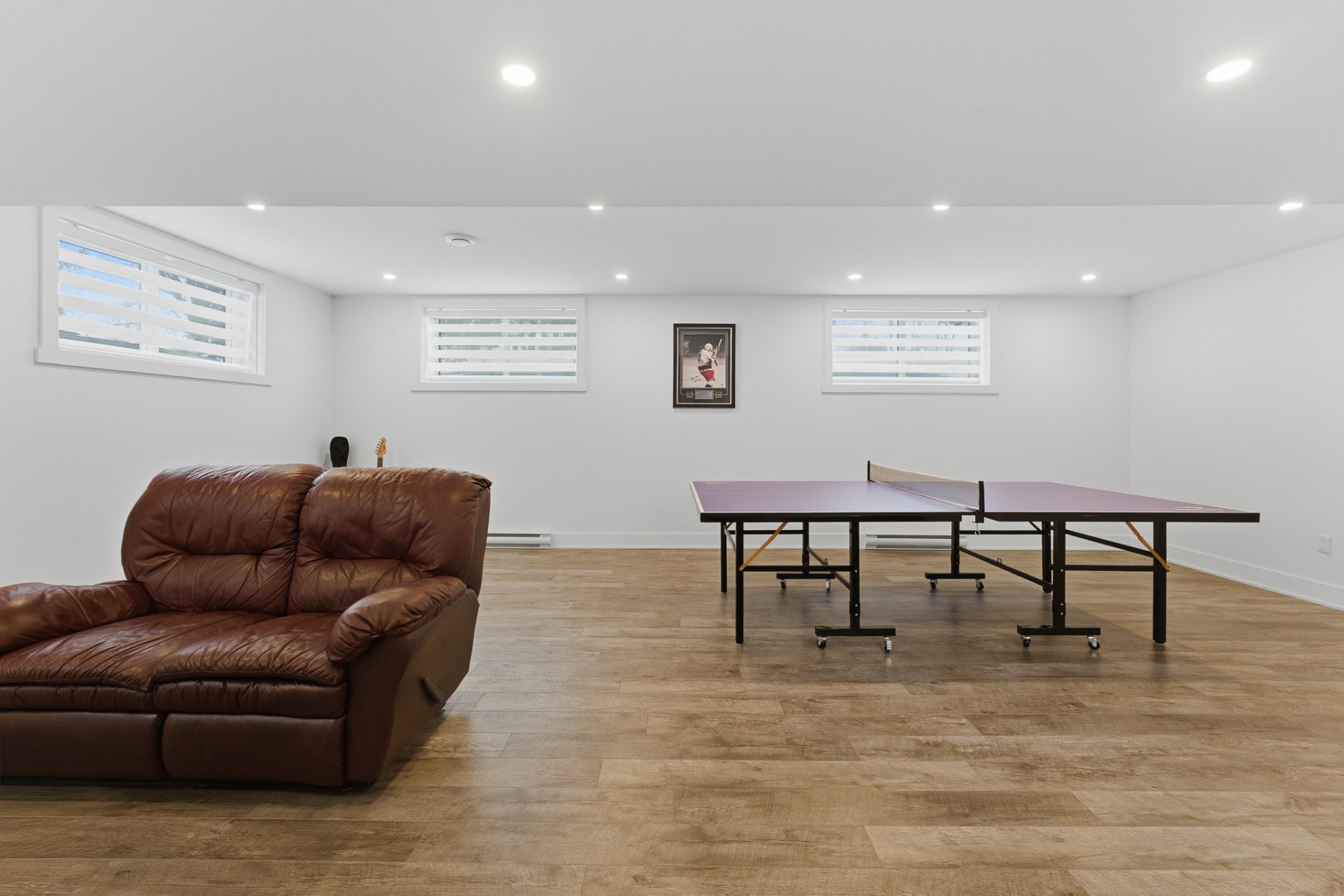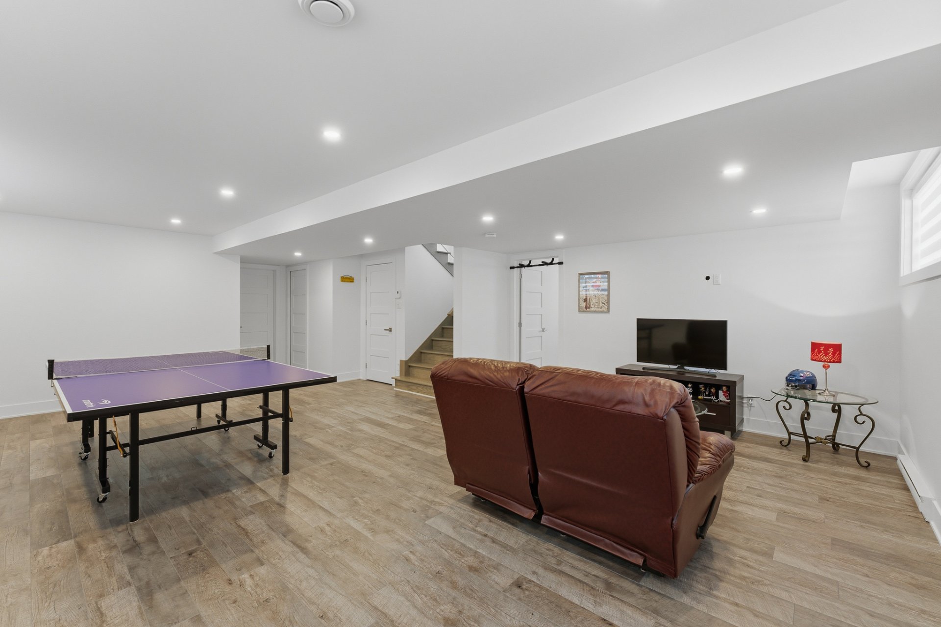 Poursuivons vers le sous-sol, où la grandeur des fenêtres saura encore vous surprendre. La salle familiale, spacieuse et polyvalente, constitue un espace idéal pour les loisirs, qu'il s'agisse d'un coin détente, d'une salle de jeux ou d'un espace parfait pour aménager un coin billard ou ping-pong.
