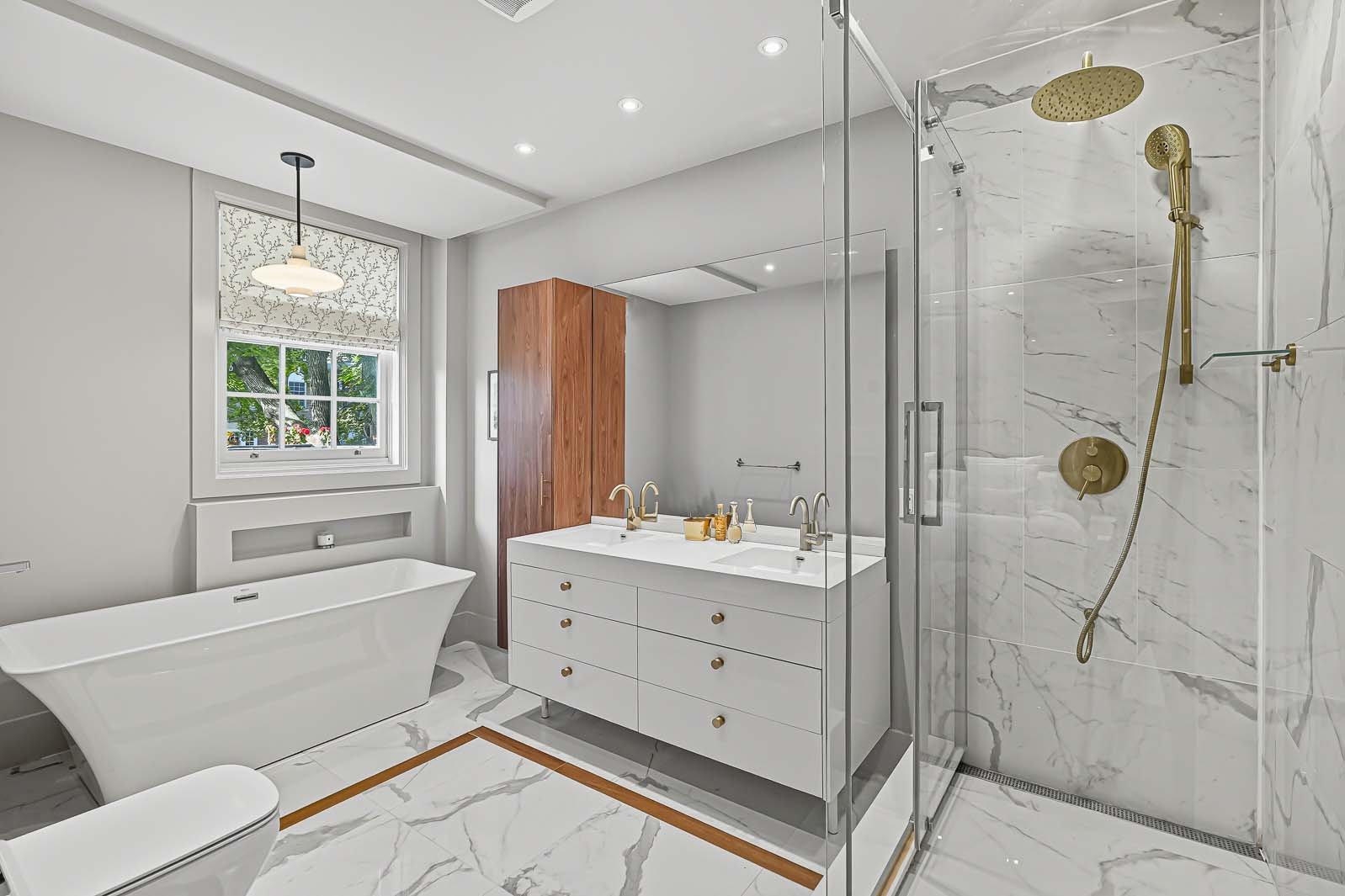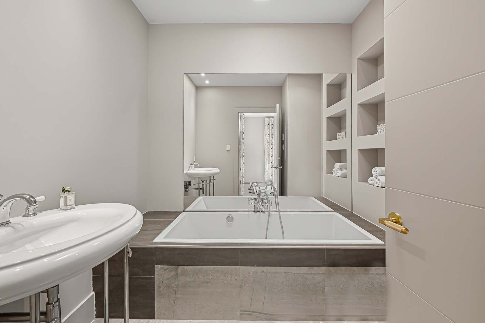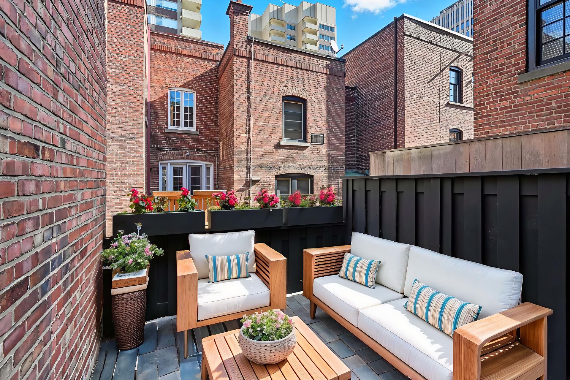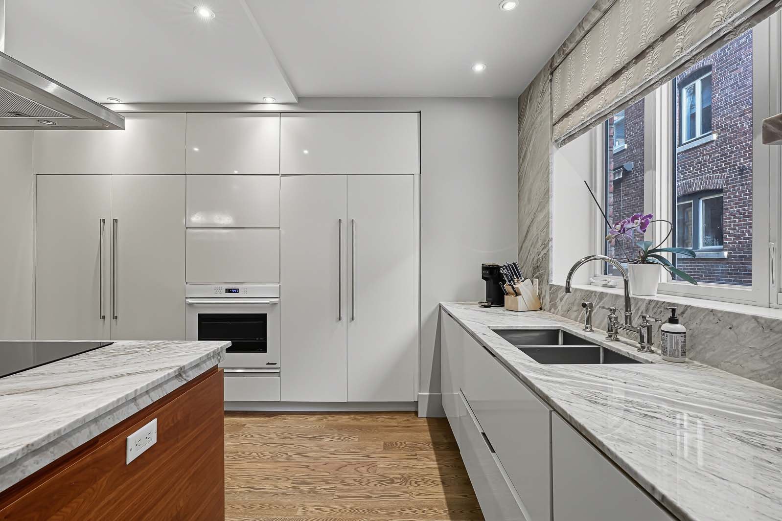 Maison de ville clé en main, style anglais, alliant élégance et confort. Au calme de l'enclave, façade plein ouest sur jardins paysagers, sans visàvis. La lumière traverse le plan ouvert; une rare terrasse attenante à la cuisine et aux pièces de réception prolonge le quotidien. Trois chambres, 3+1 s.d.b. Soussol fini : salle familiale, buanderie, accès direct au garage et stationnement. Finitions soignées : plafonds travaillés, éclairage encastré, planchers radiants dans toutes les s.d.b. et le hall. À deux pas du mont Royal, de Sherbrooke, du Ritz et du MBAM : une élégante alternative au condo.